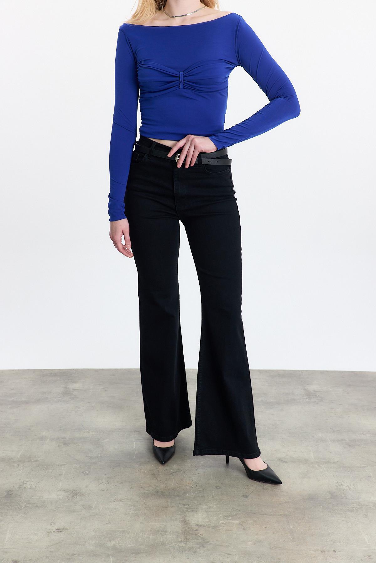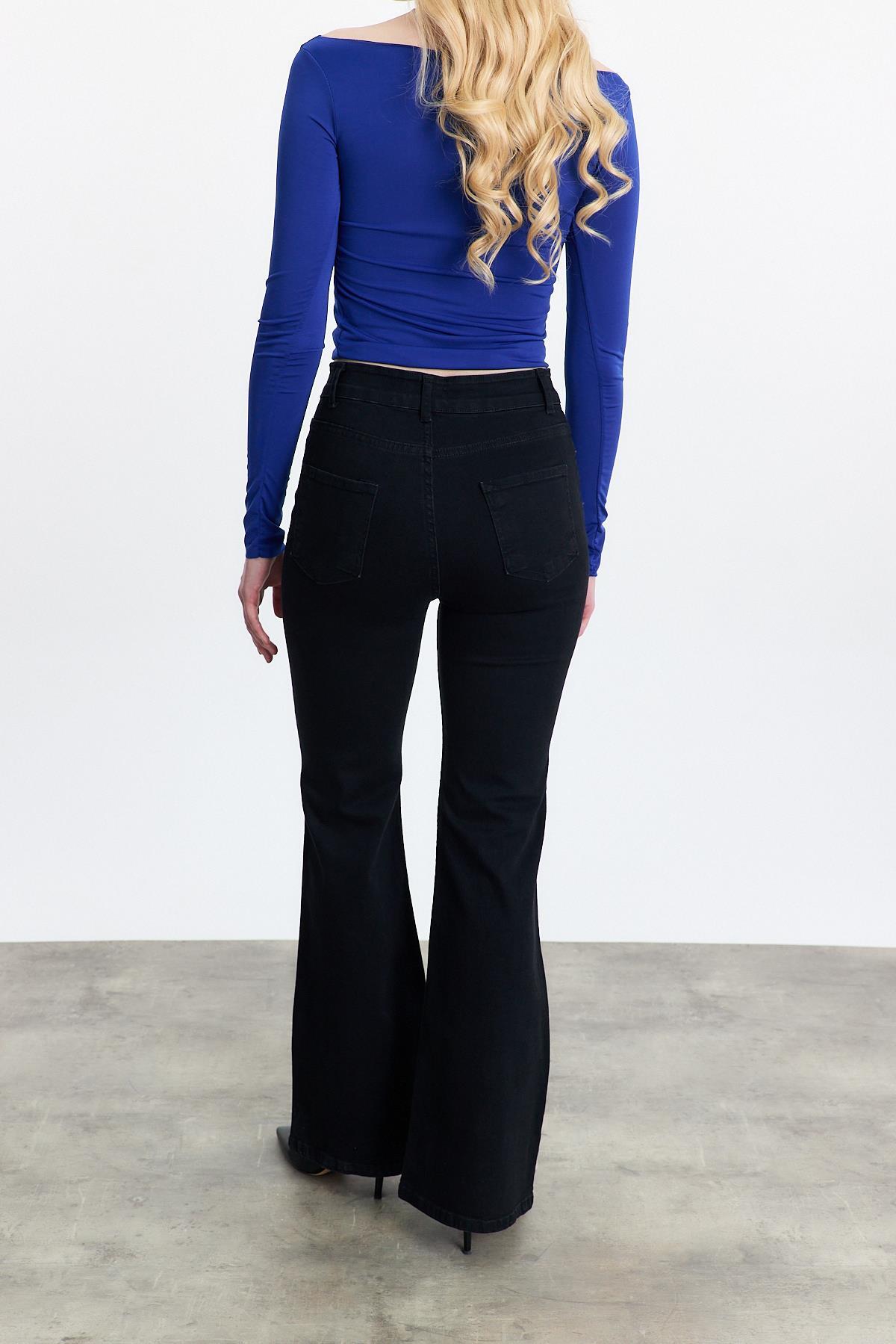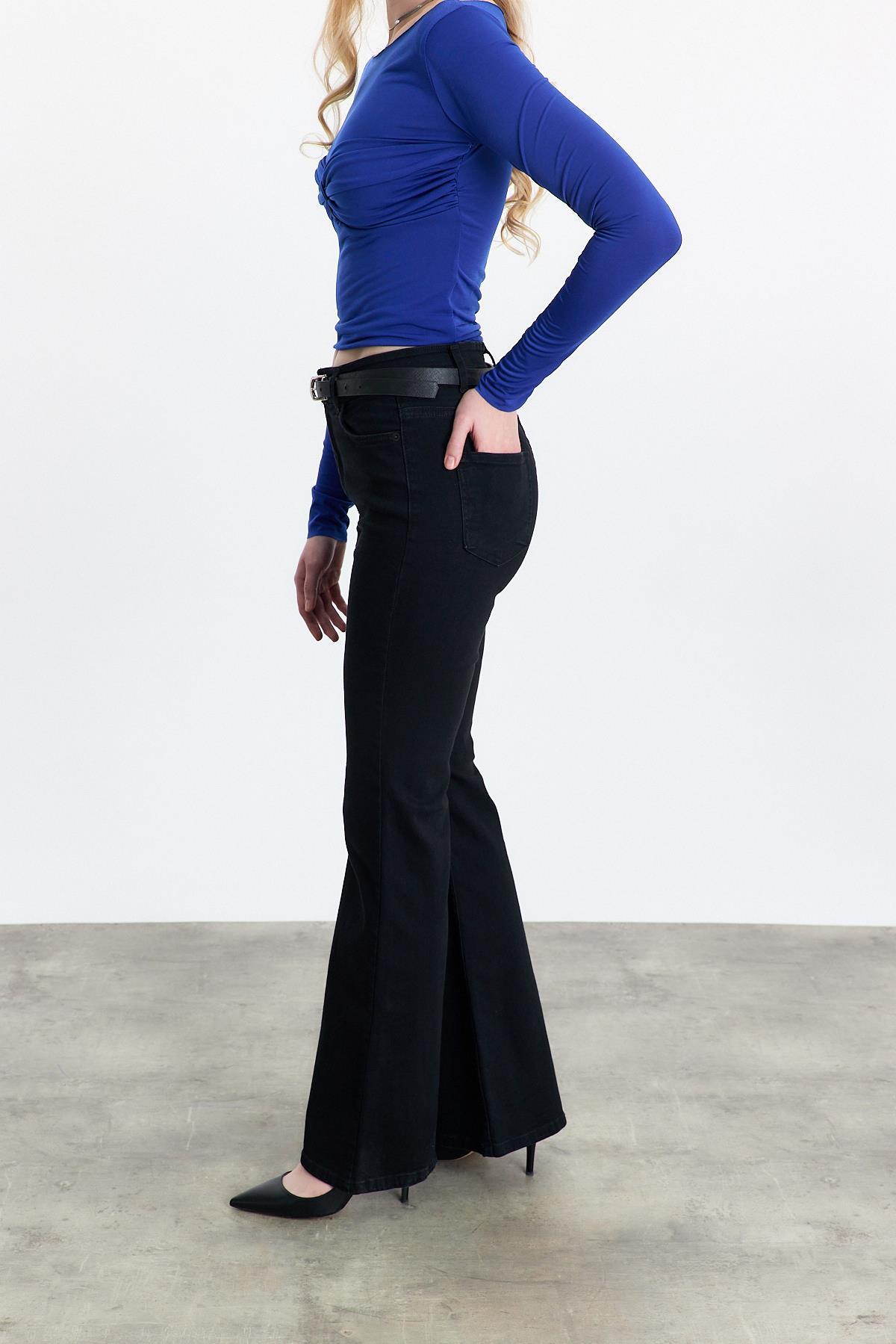Siyah Yüksek Bel Flare Kesim Kadın Jean Pantolon 12036