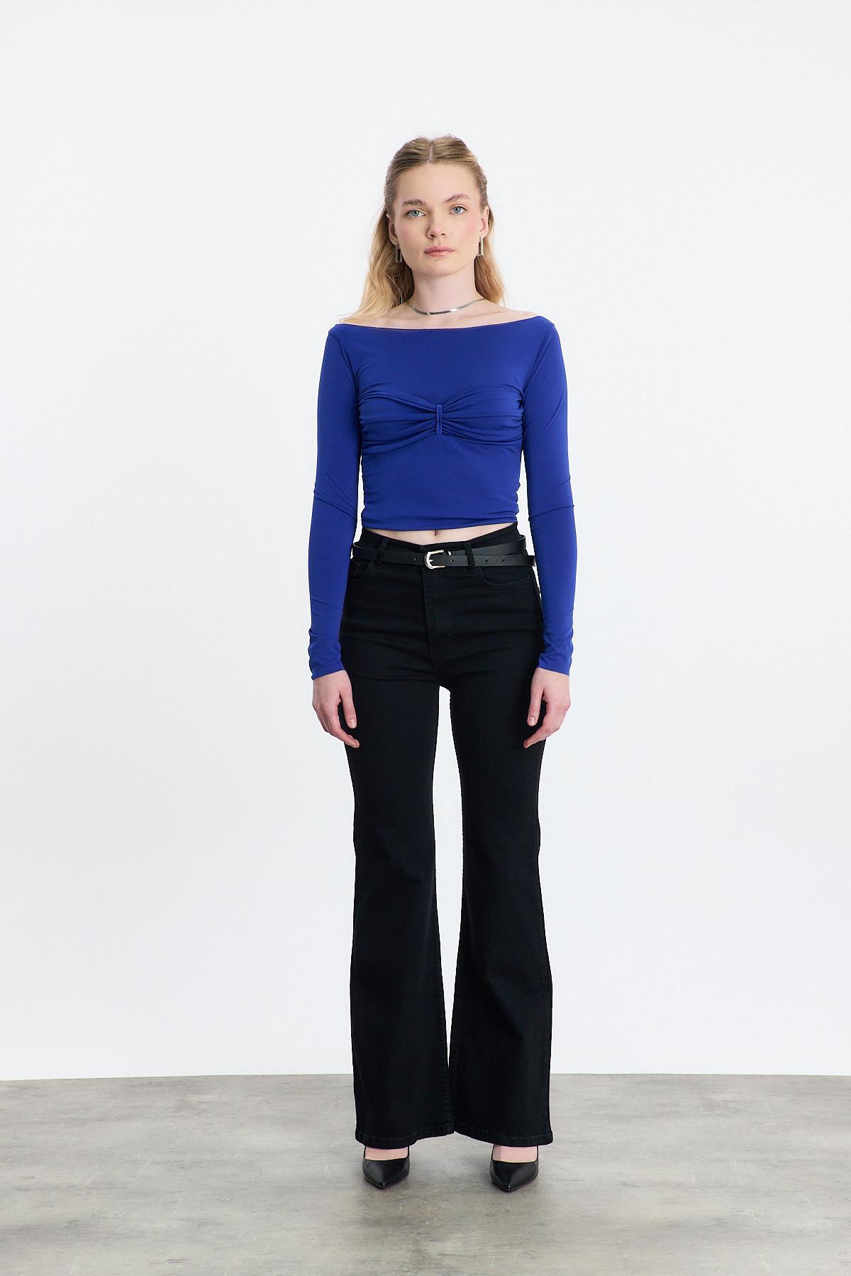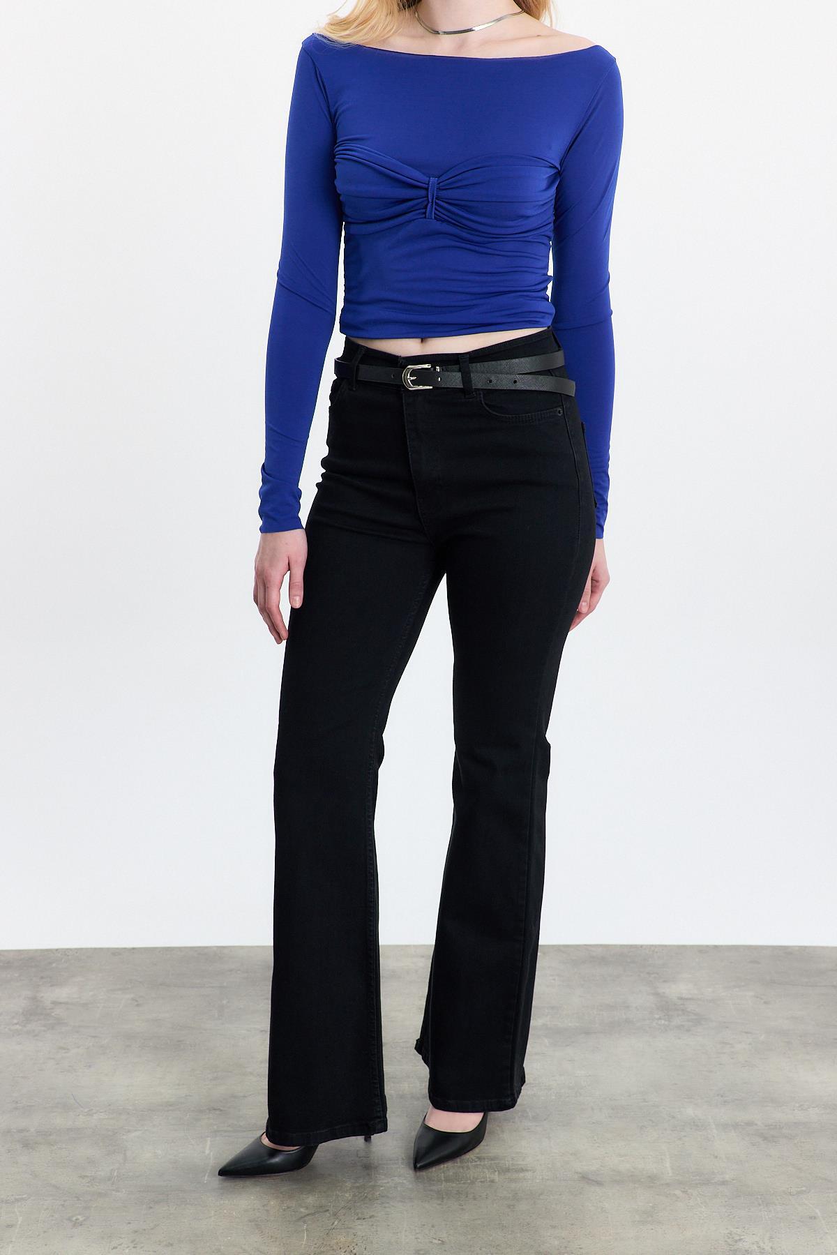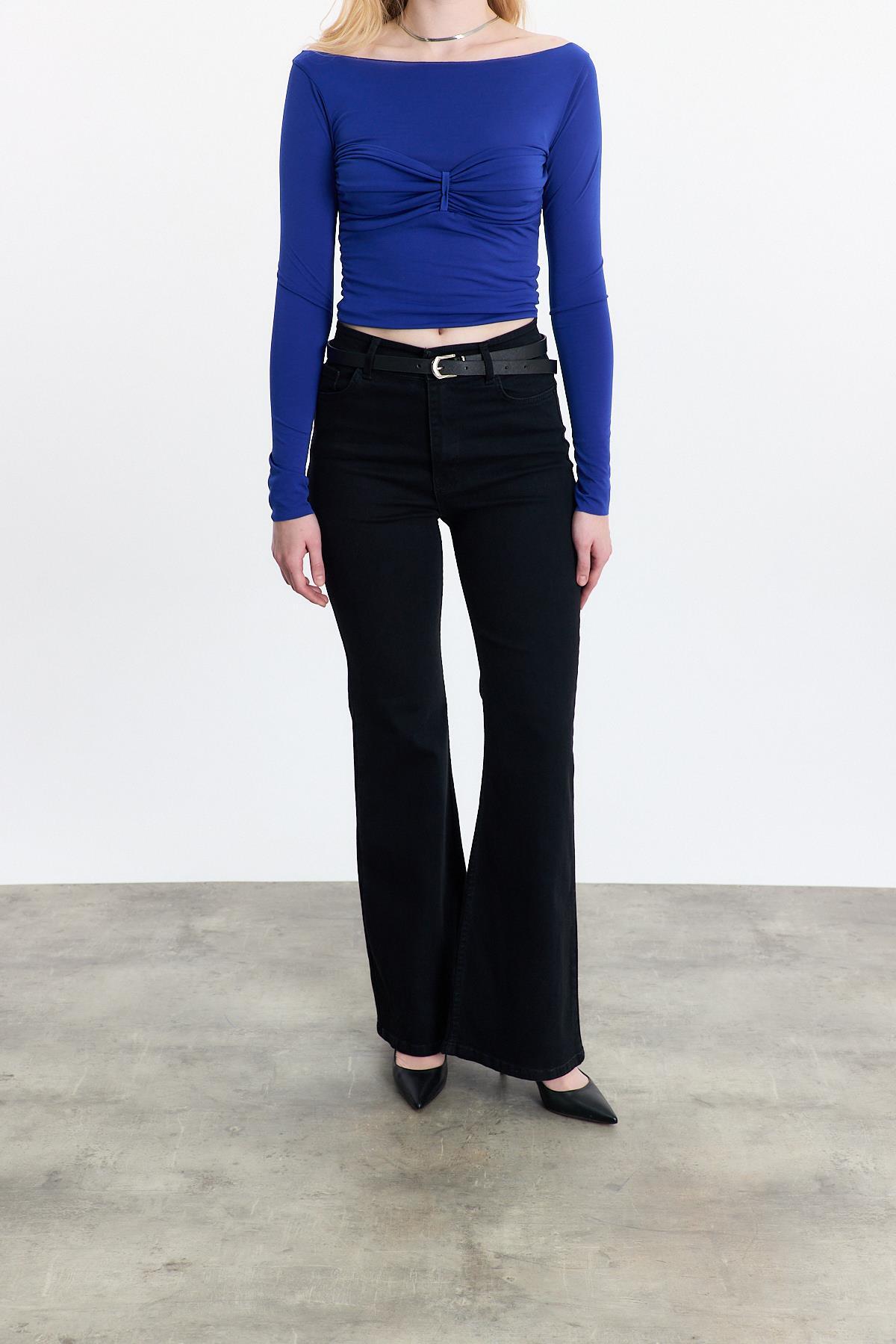 Siyah Yüksek Bel Flare Kesim Kadın Jean Pantolon 12036