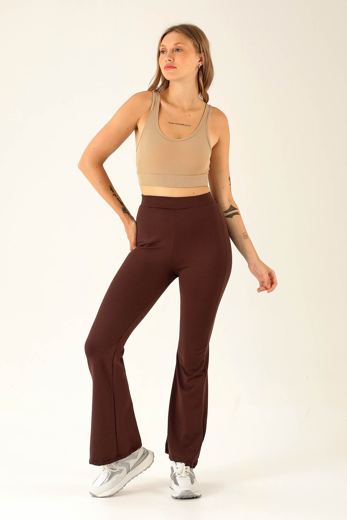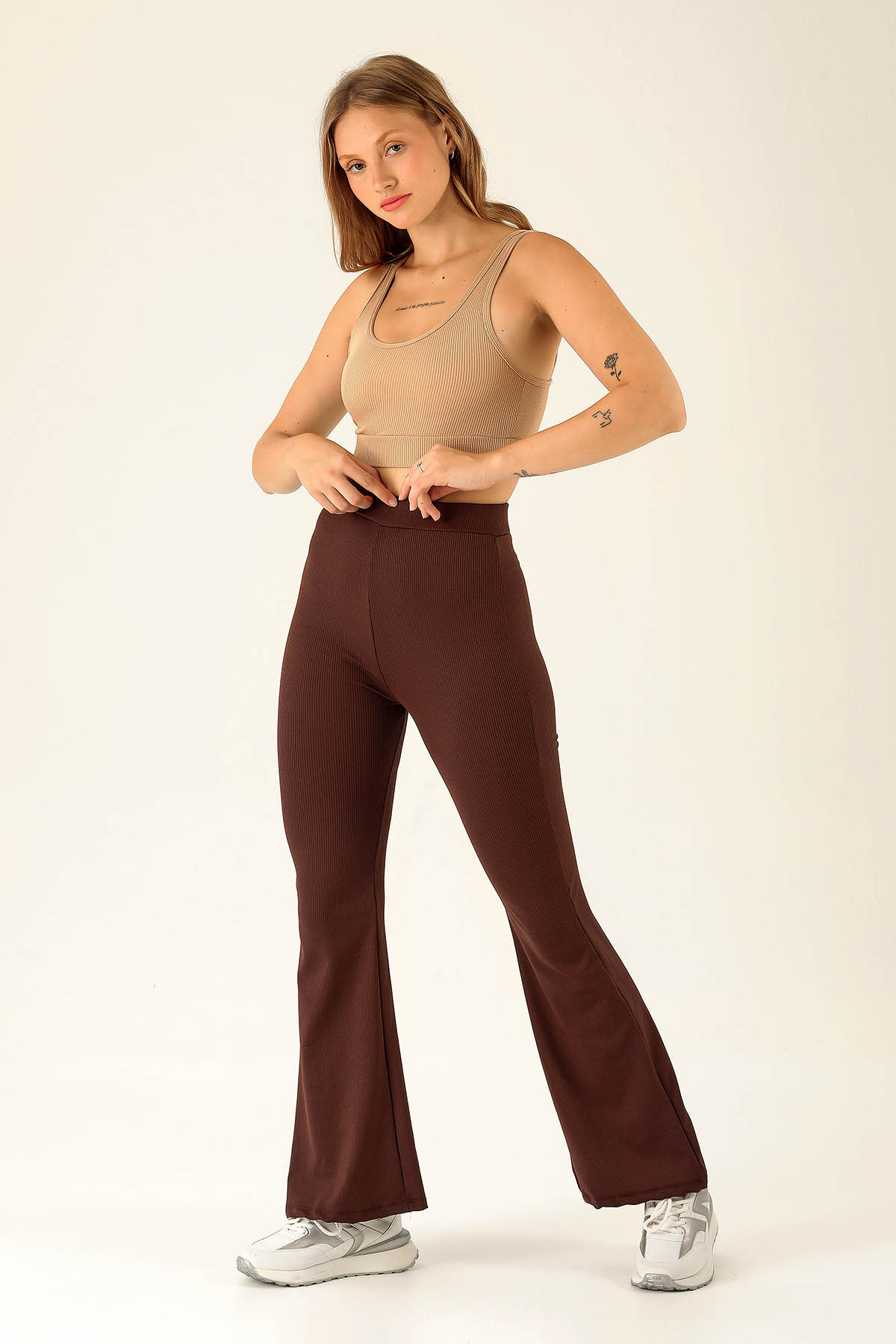 İspanyol Paça Fitilli Tayt - 404 Acı Kahve