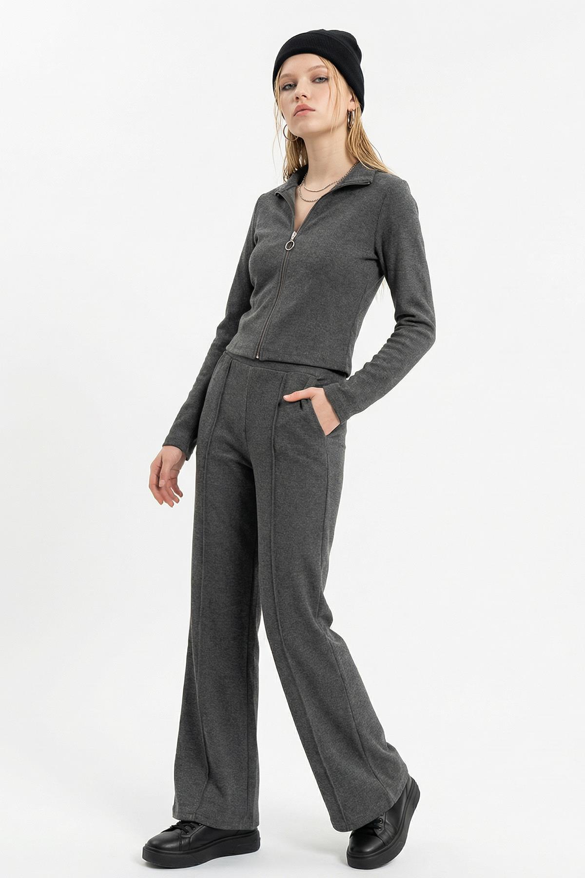 İspanyol Paça Pantolon Hırka Takım Antrasit 3098A