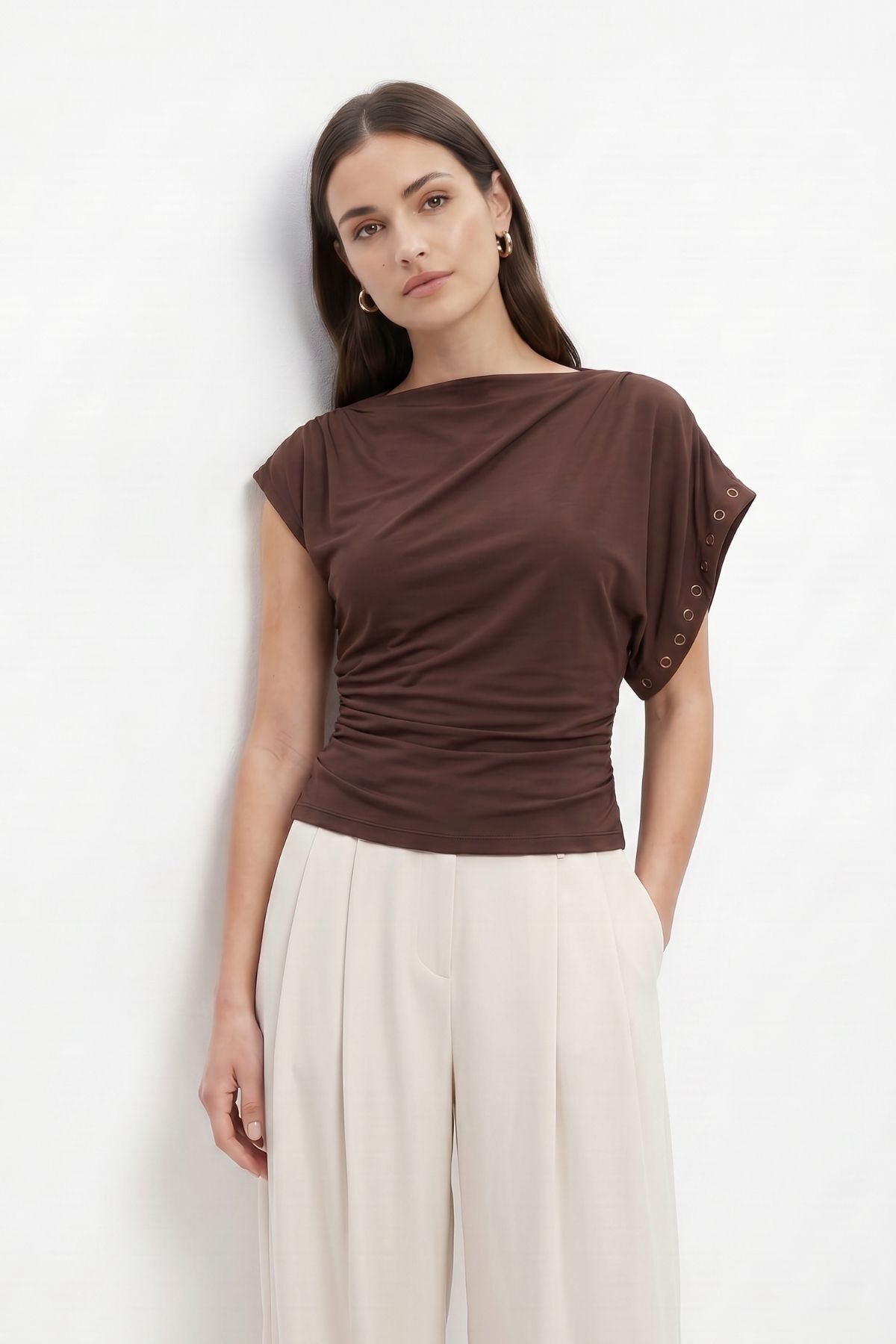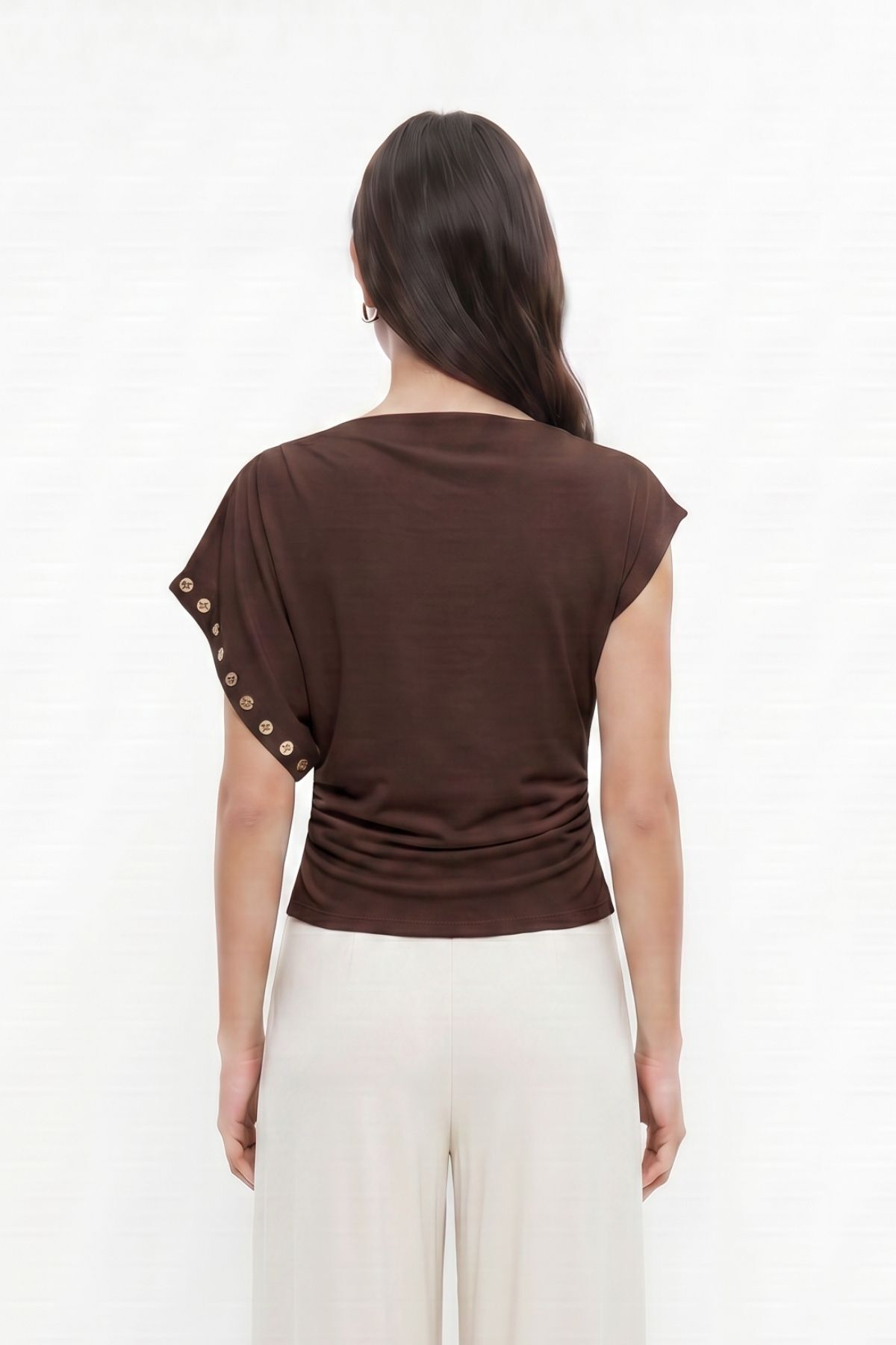 Kahve Asimetrik Kol Zımbalı Bluz 36003