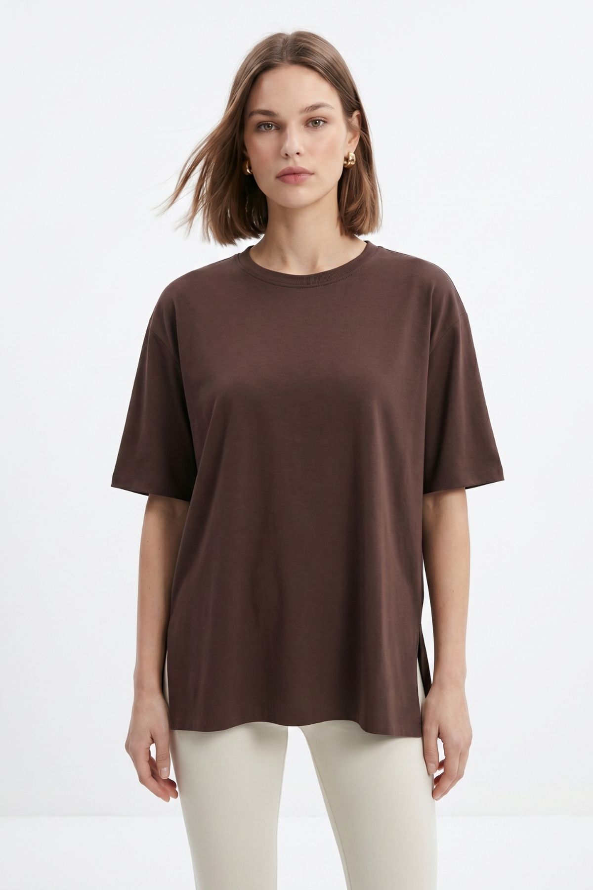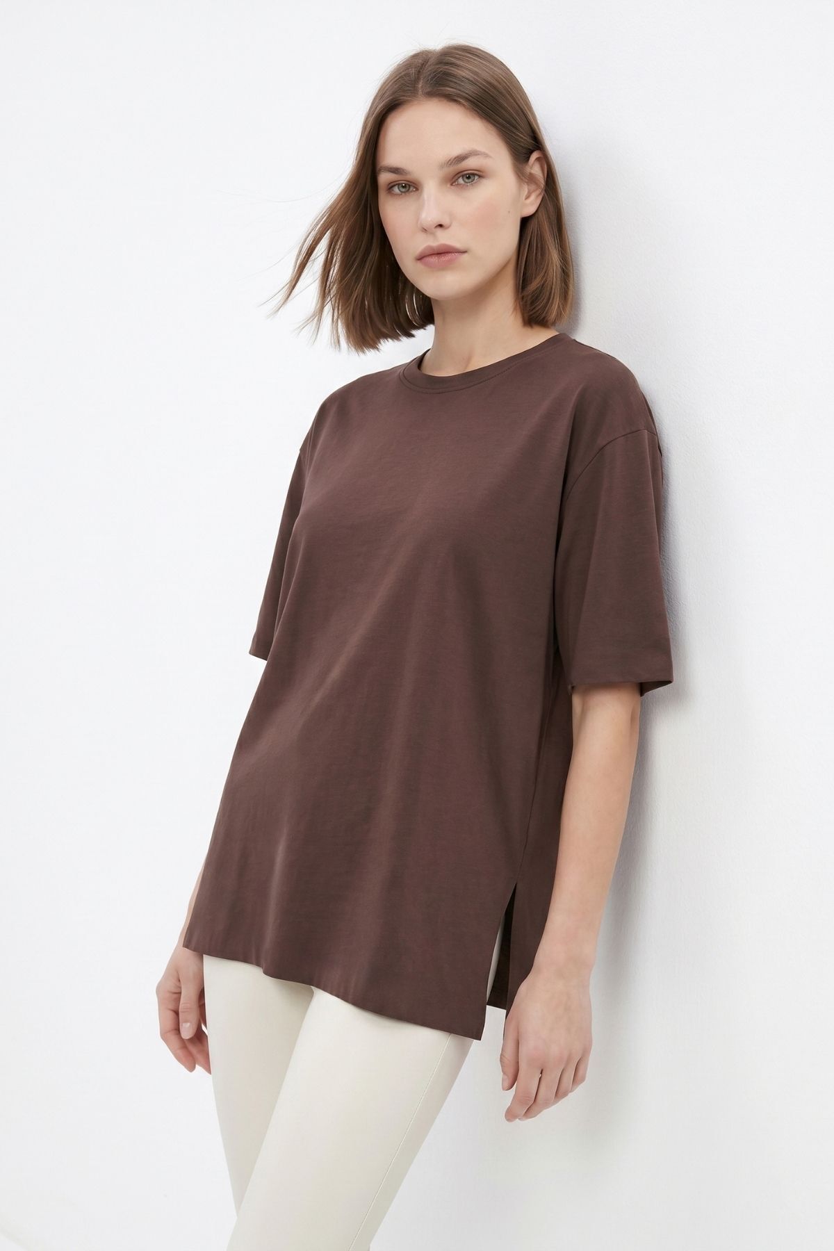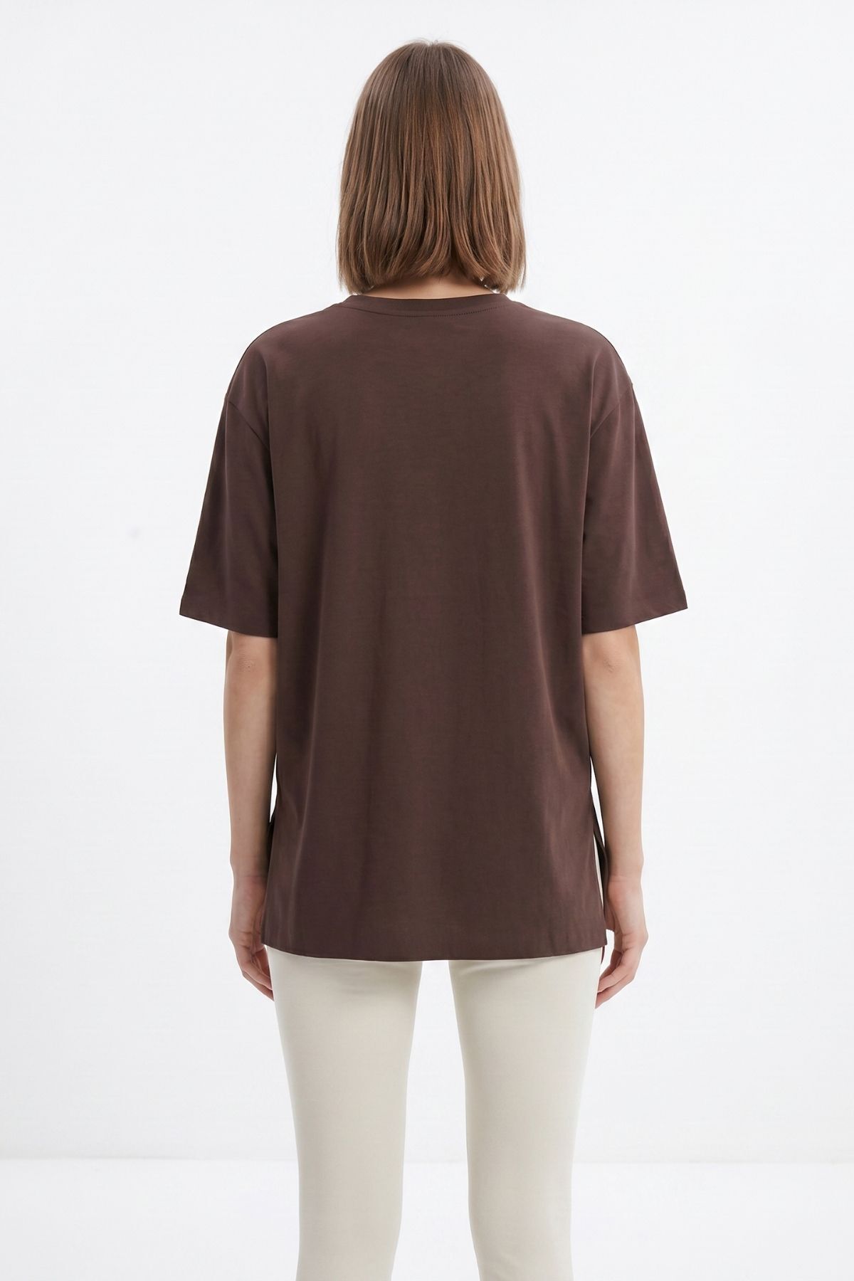 Kahve Bisiklet Yaka Salaş Tişört 0474