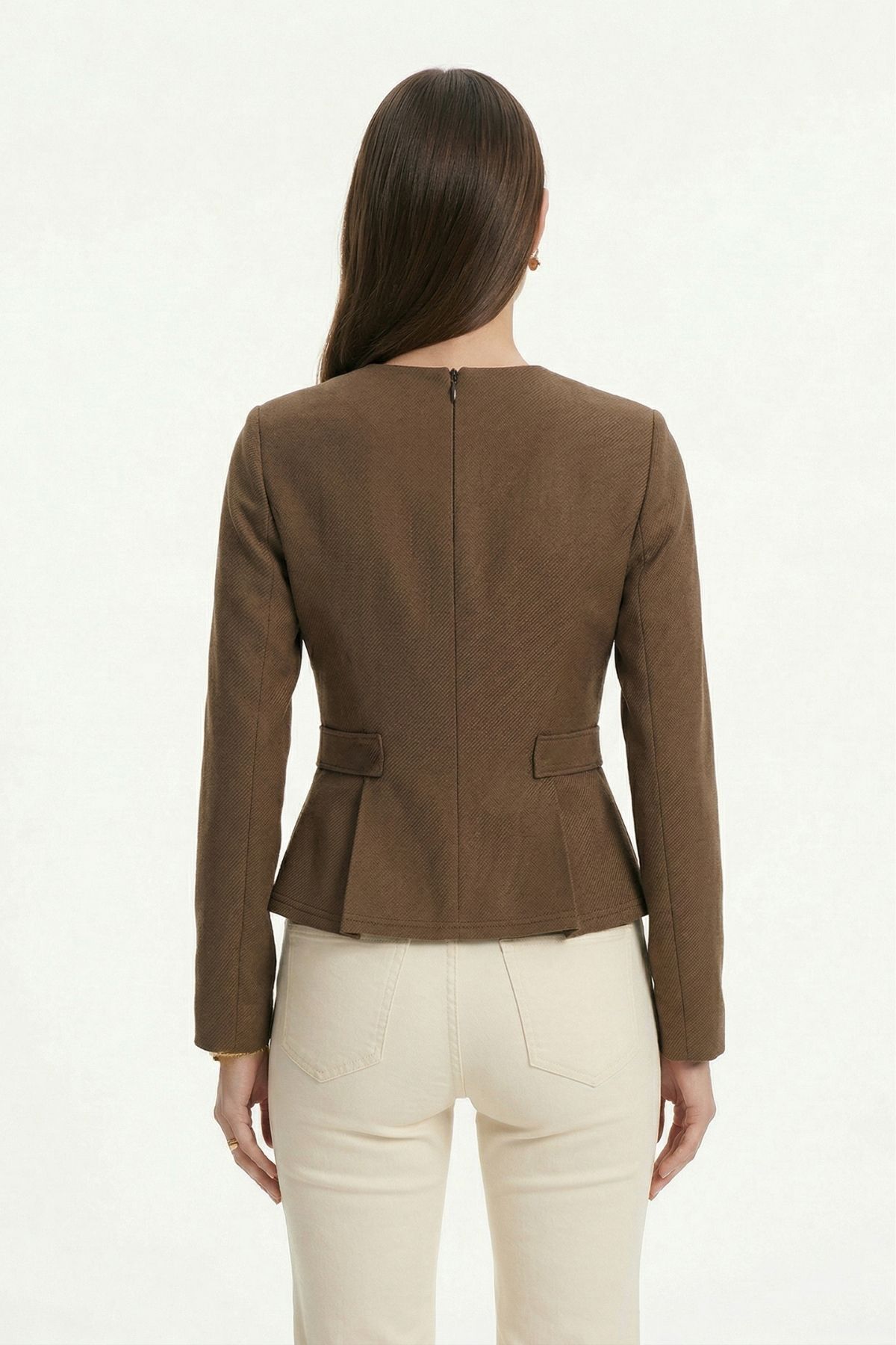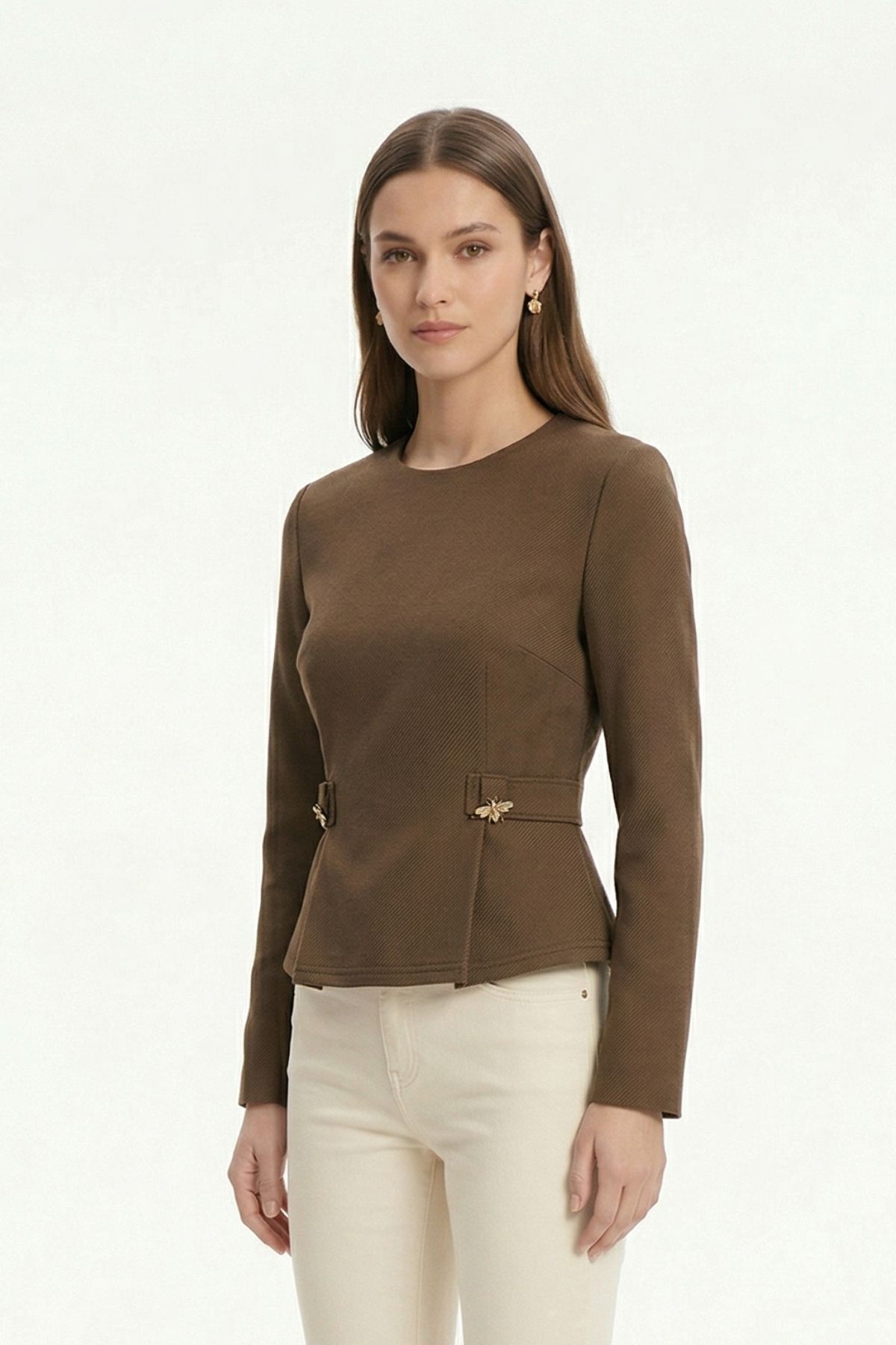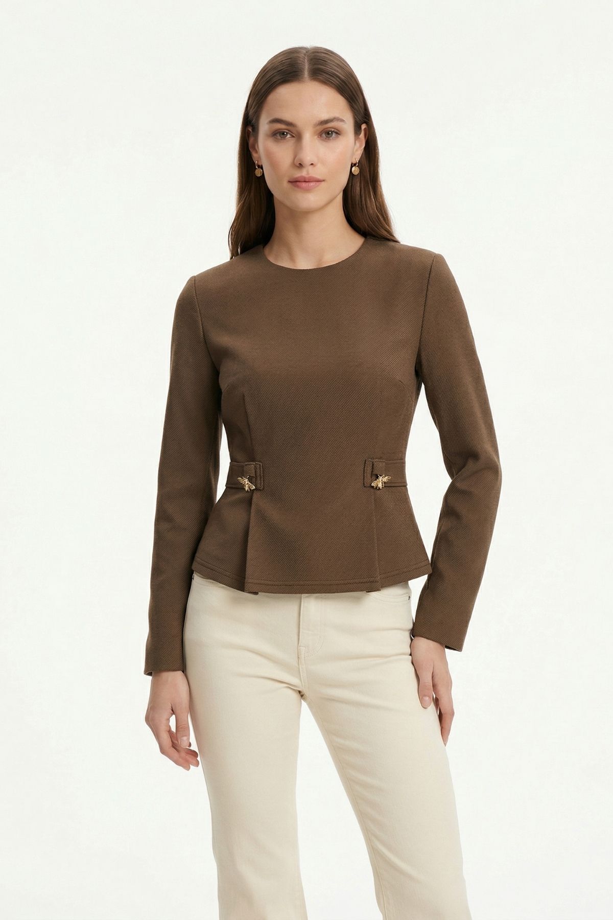 Kahve Bisiklet Yaka Uzun Kol Düğmeli Bluz 8492A