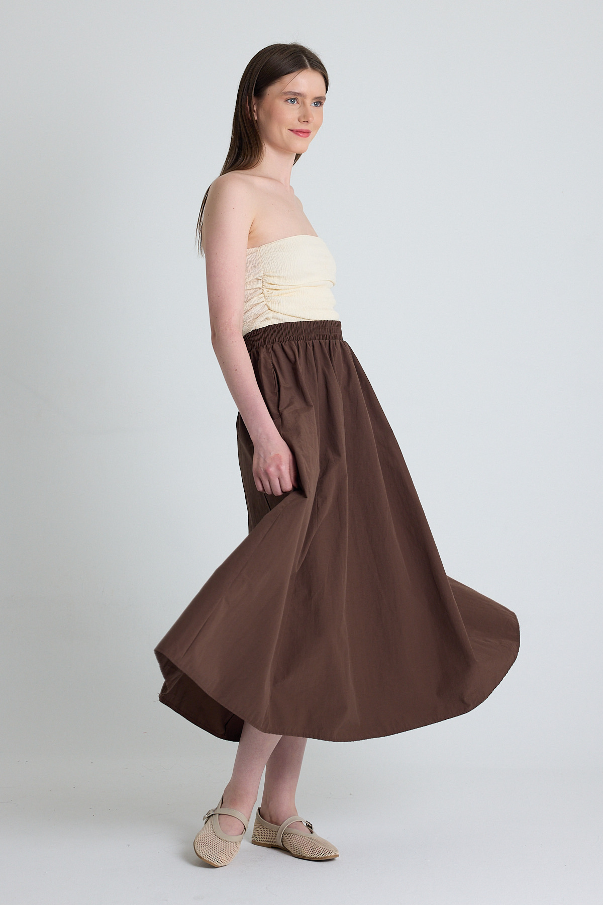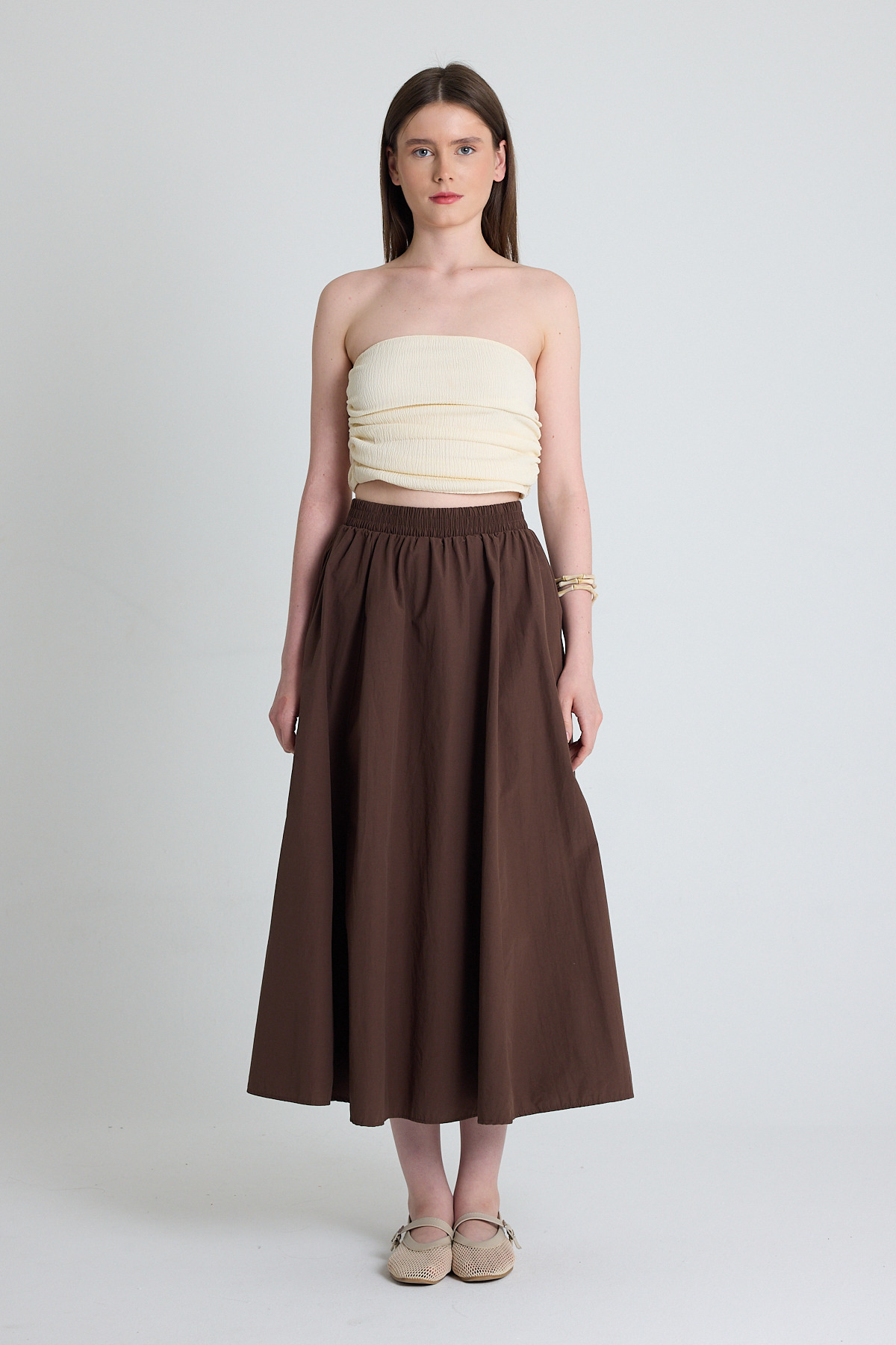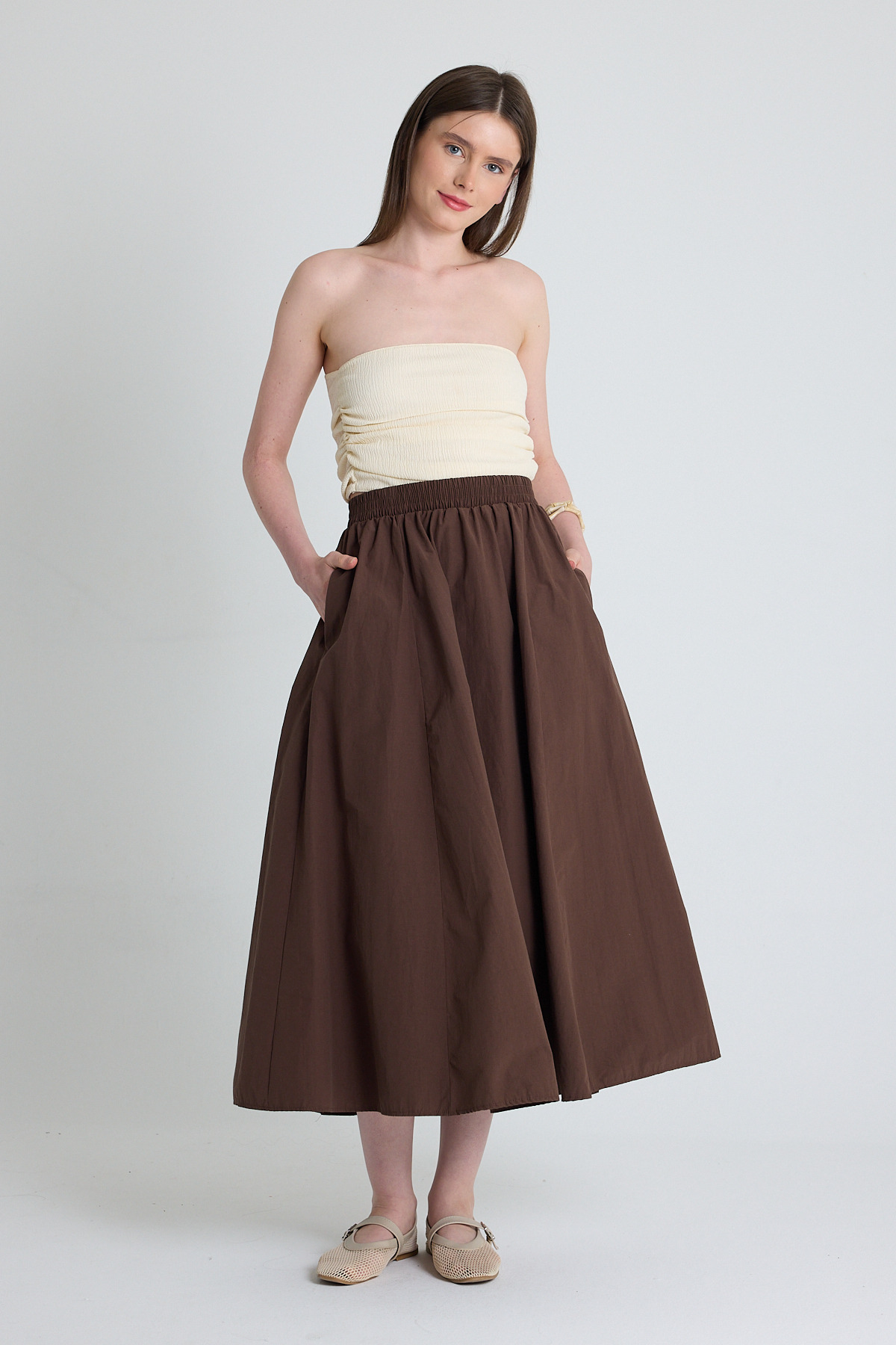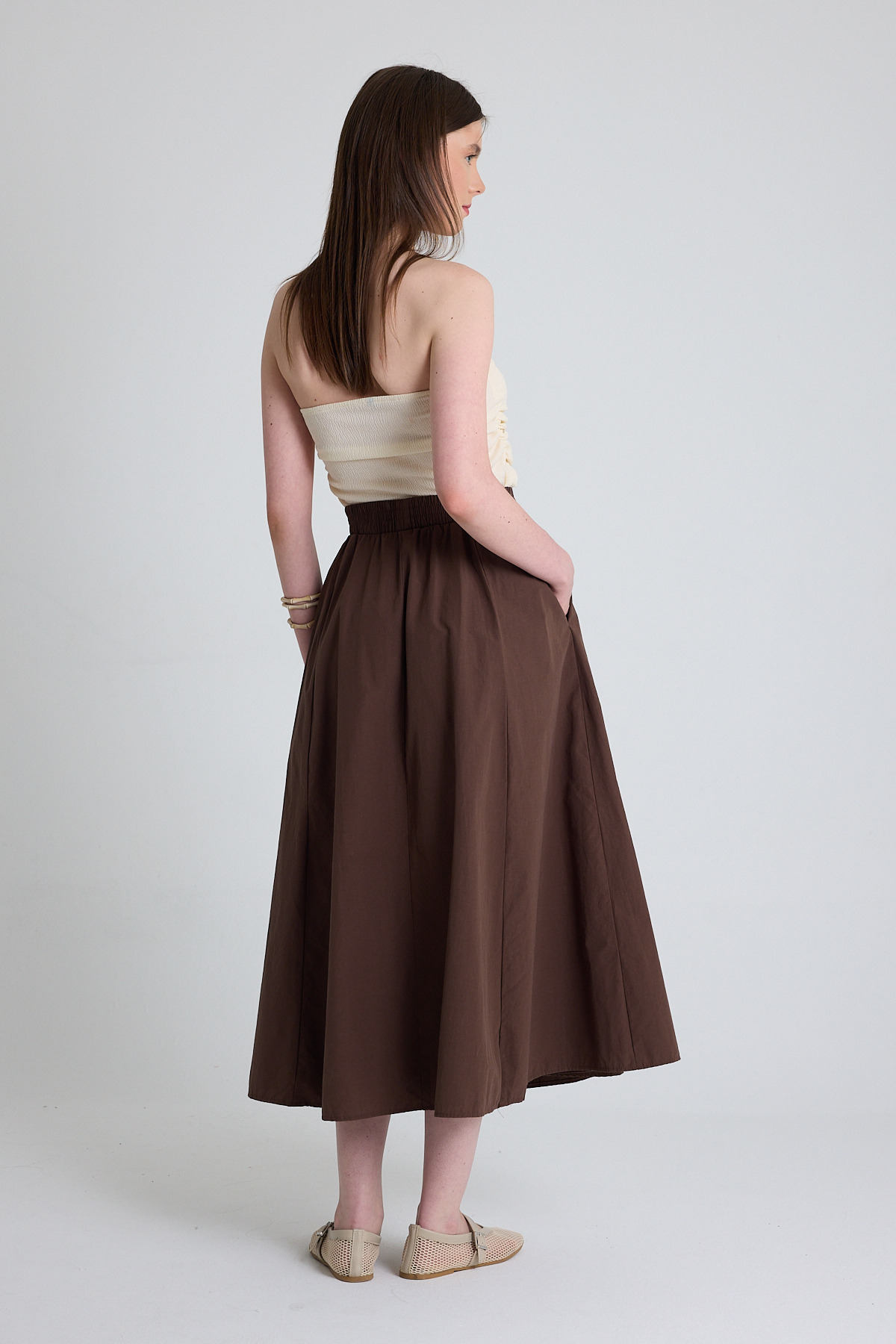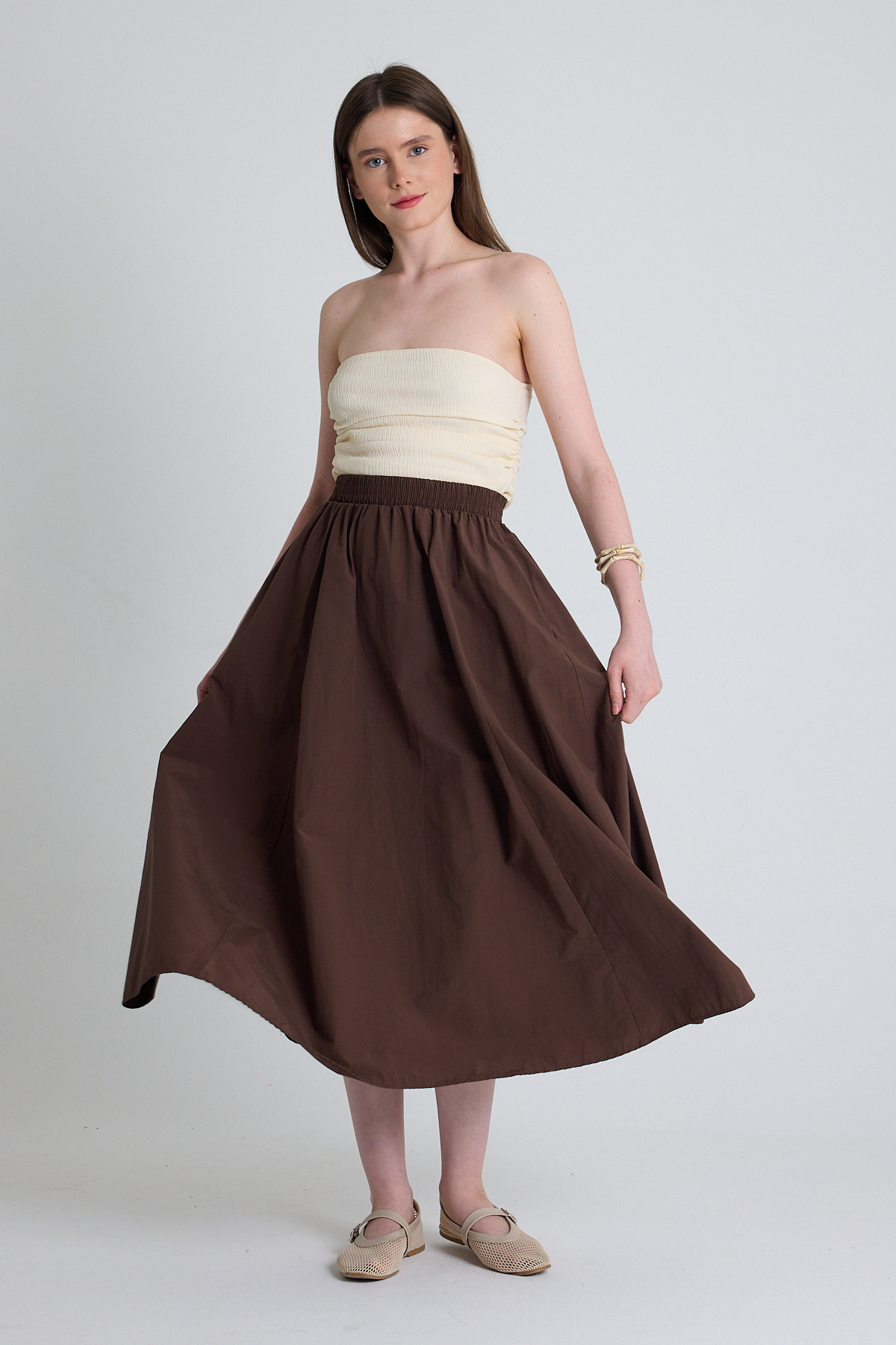 Kahve Cep Detay Mevlana Midi Etek 3950