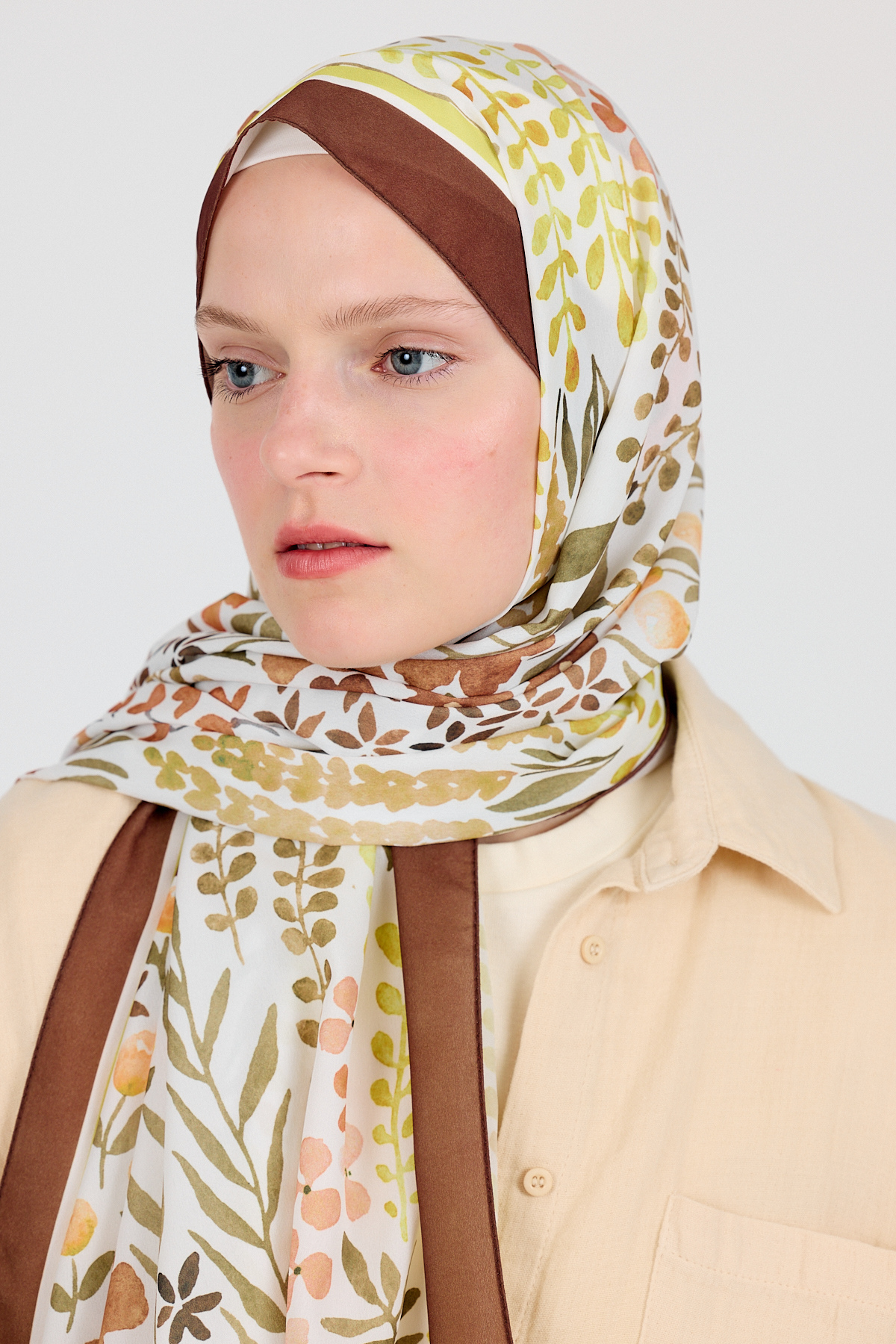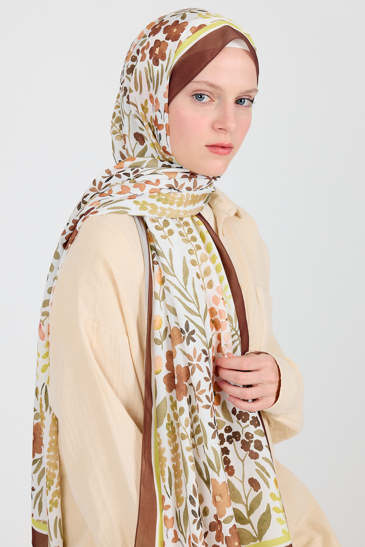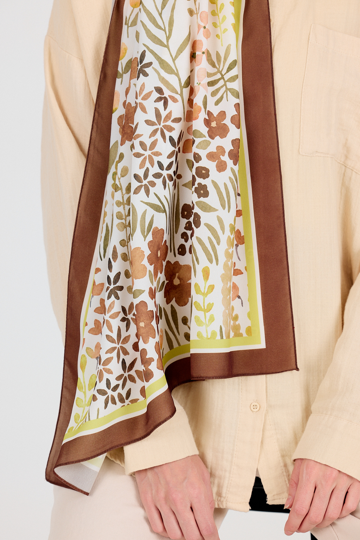 Kahve Çiçek Desenli Şal 5677
