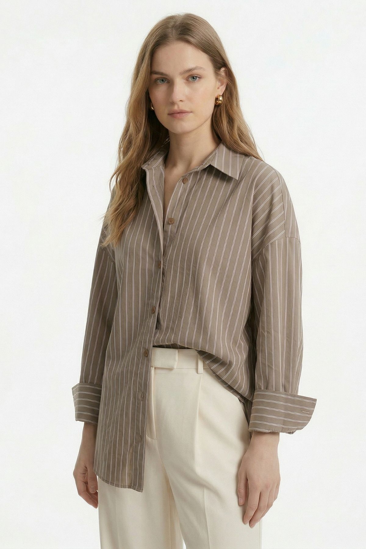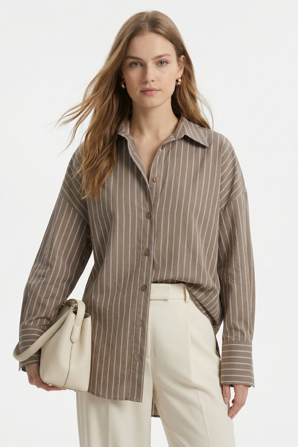 Kahve Çizgili Salaş Gömlek 5475 - RAYS Kahve Çizgili Salaş Gömlek 5475 - RAYS (1)