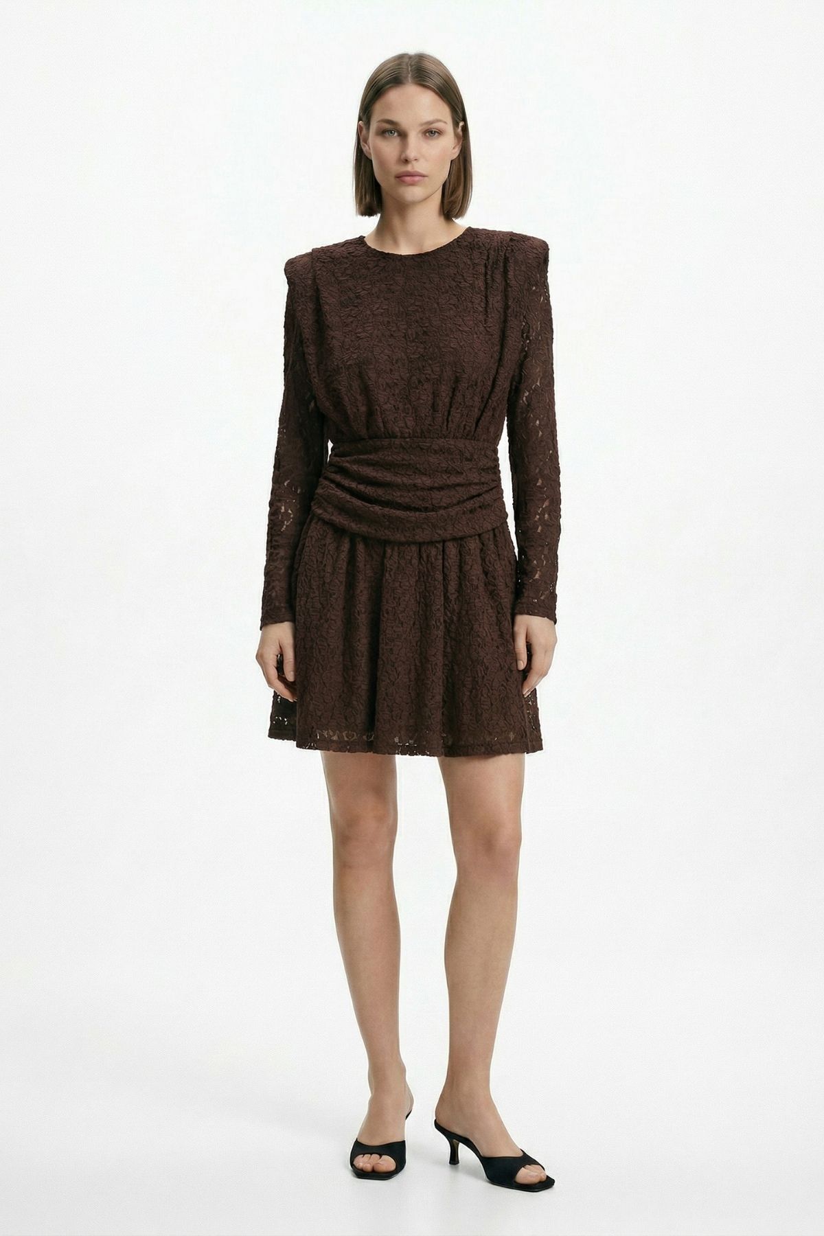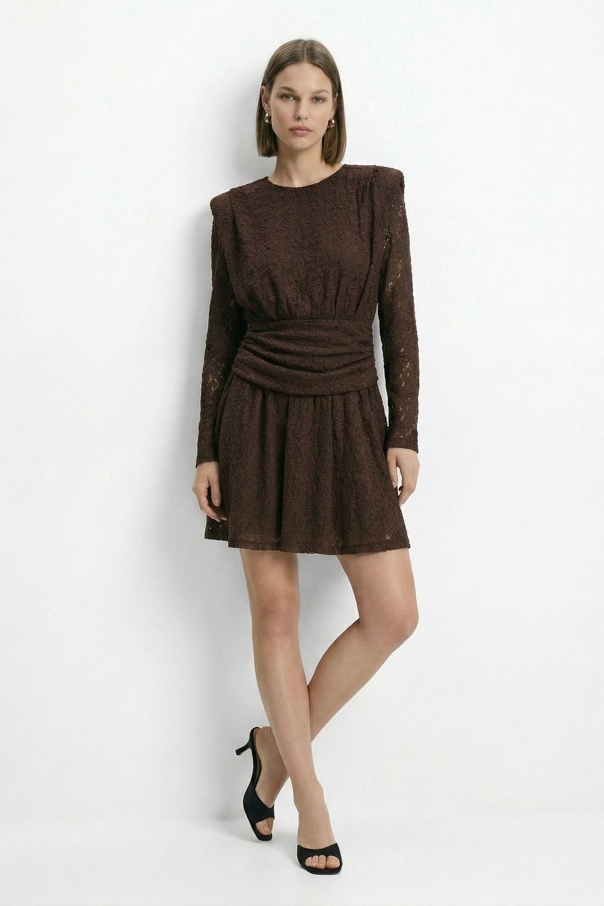 Kahve Düğmeli Kat Kat Elbise 2817 - RAYS Kahve Düğmeli Kat Kat Elbise 2817 - RAYS (1)