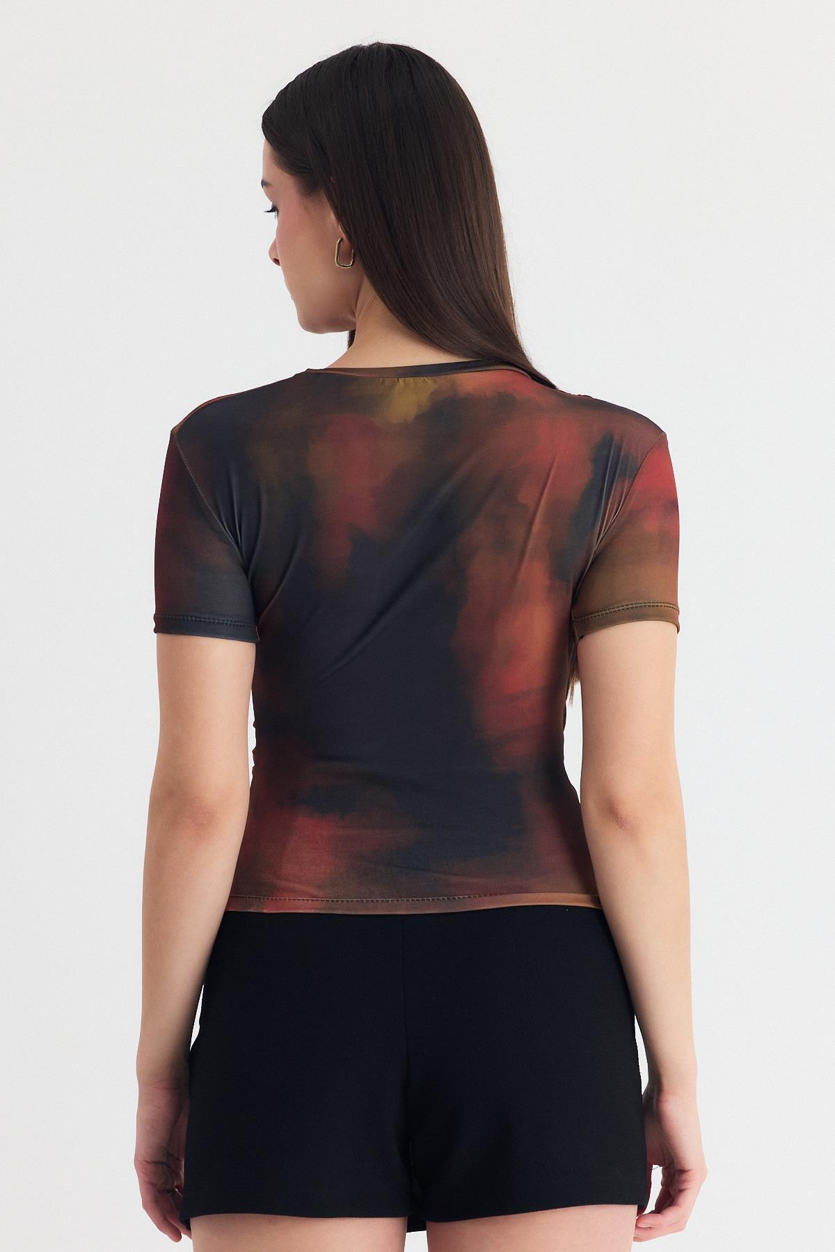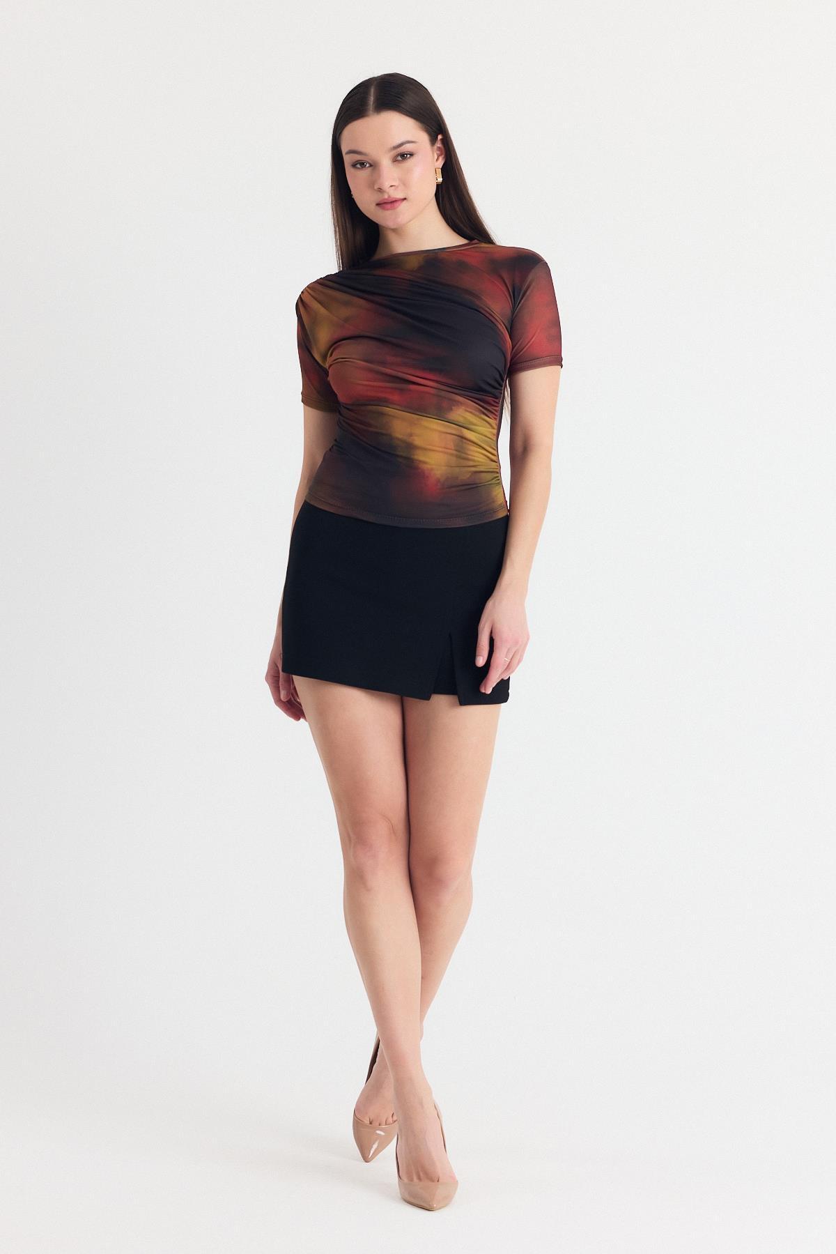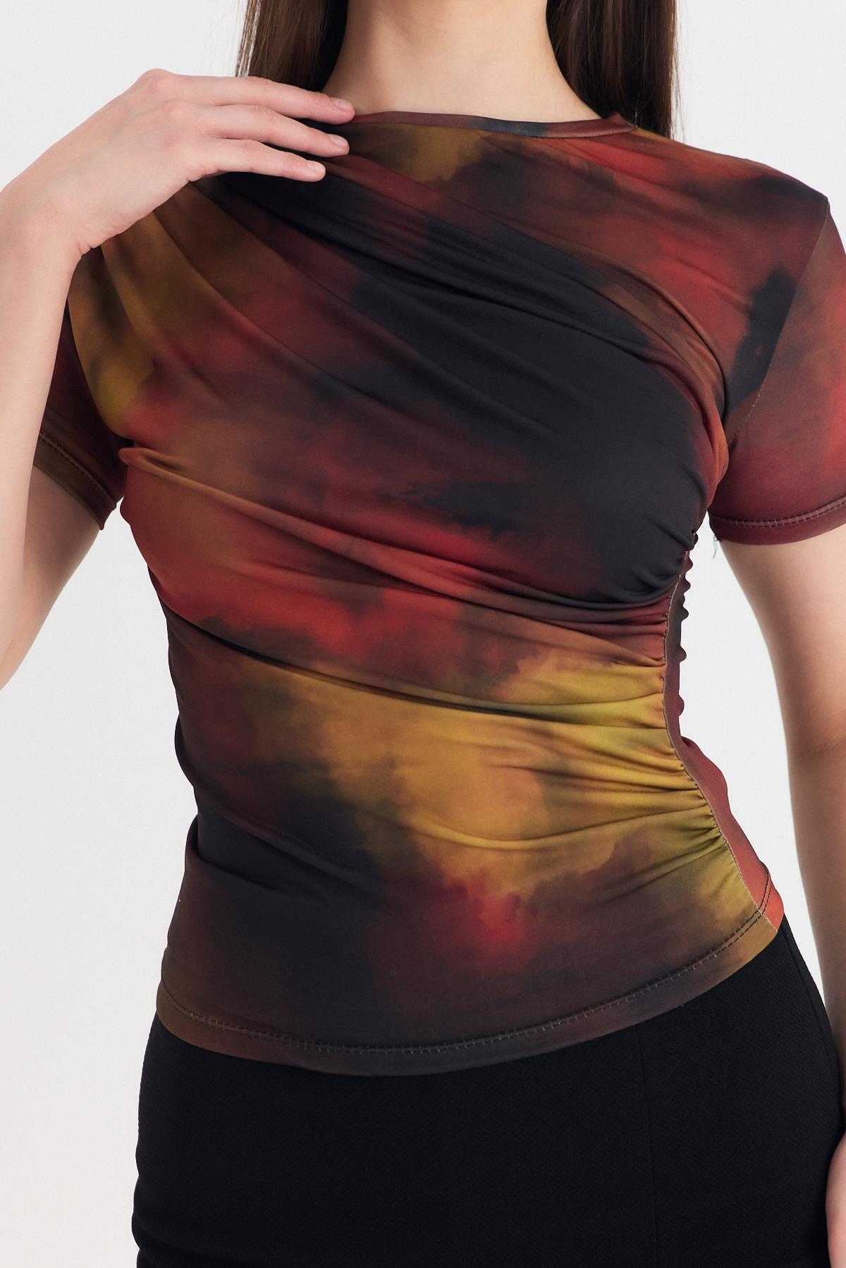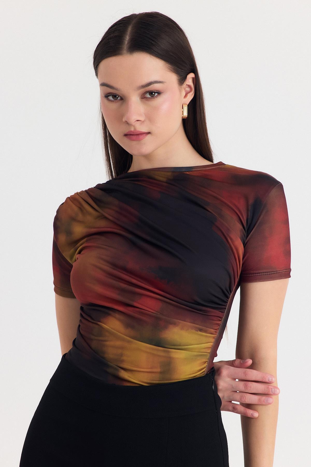 Kahve Desenli Büzgülü Sandy Bluz 12303