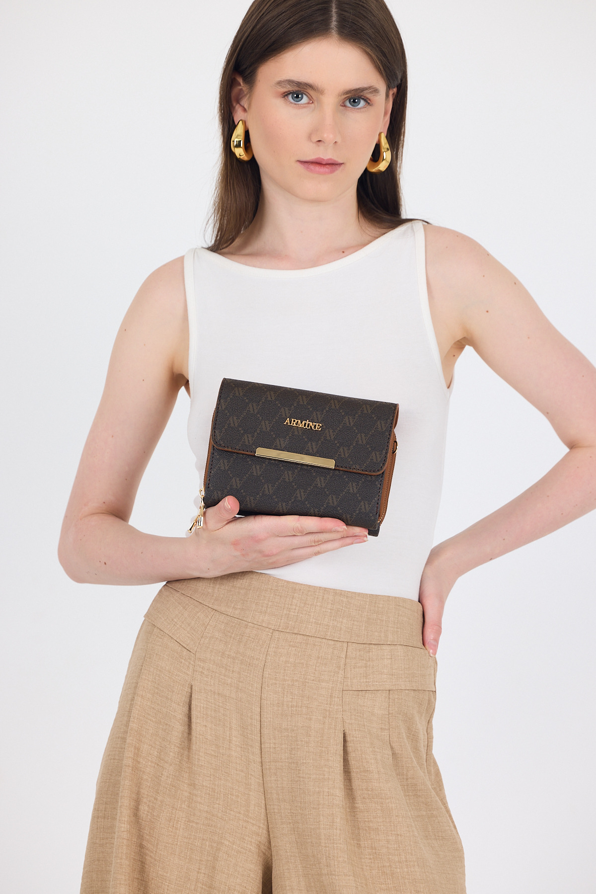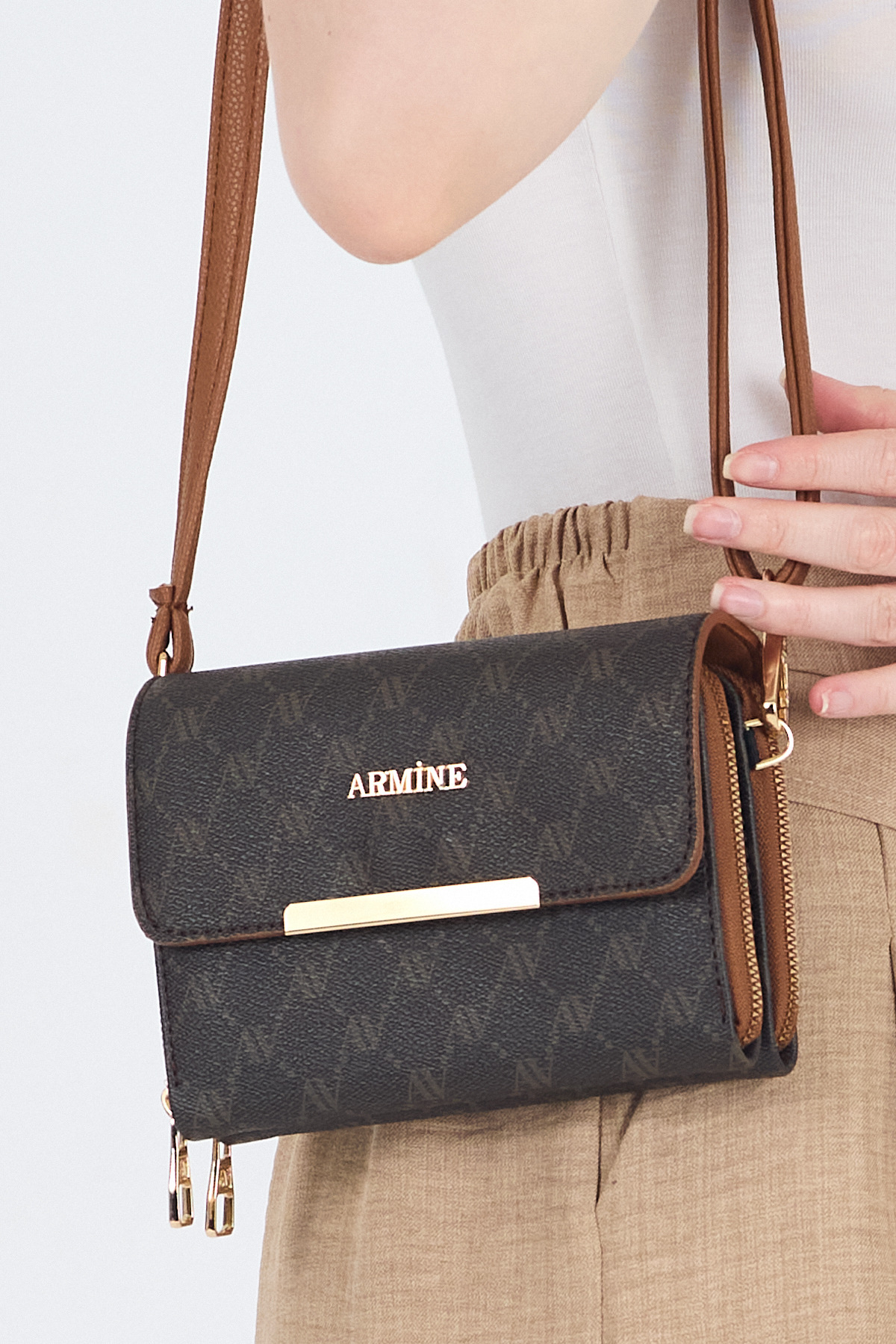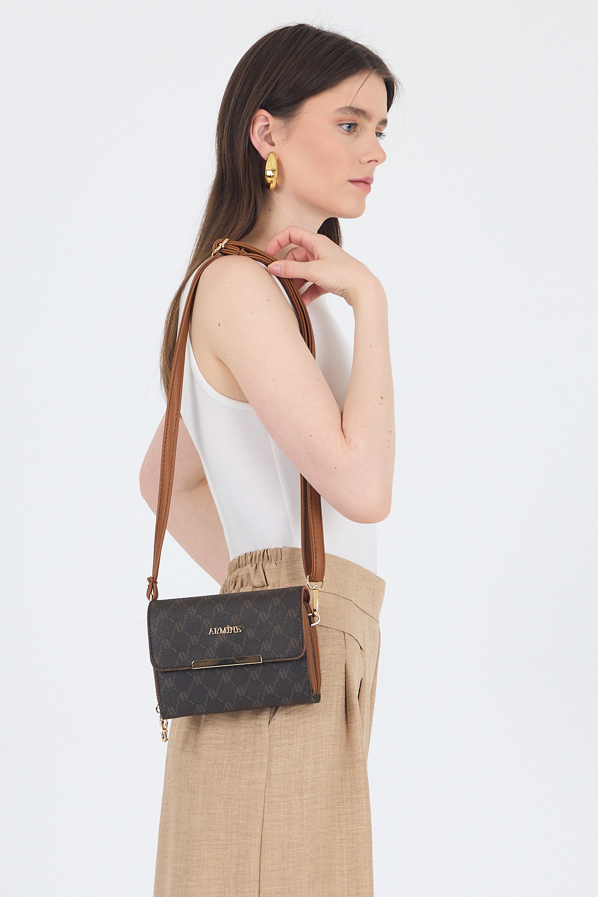 Kahve Desenli Omuz Çantası 381