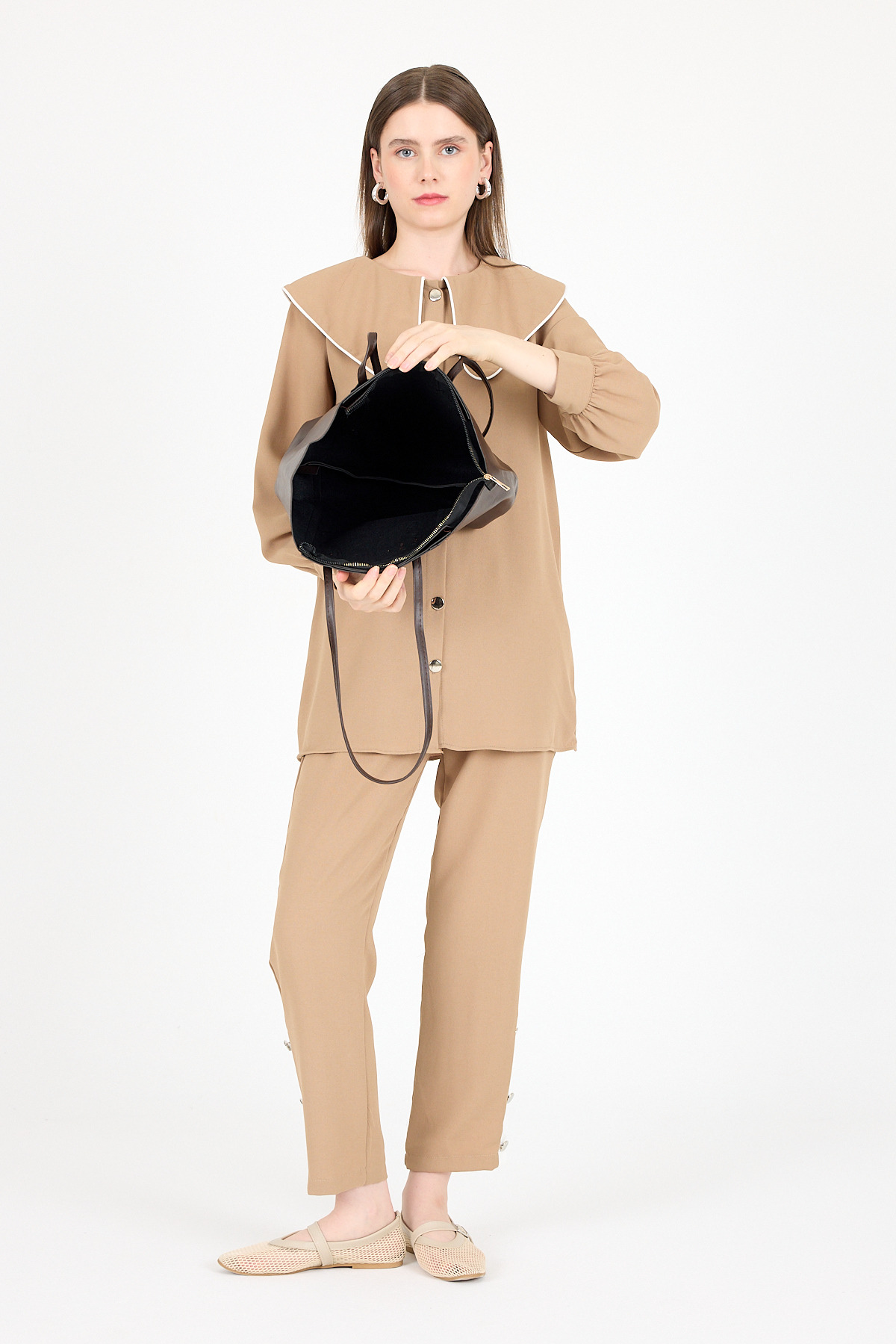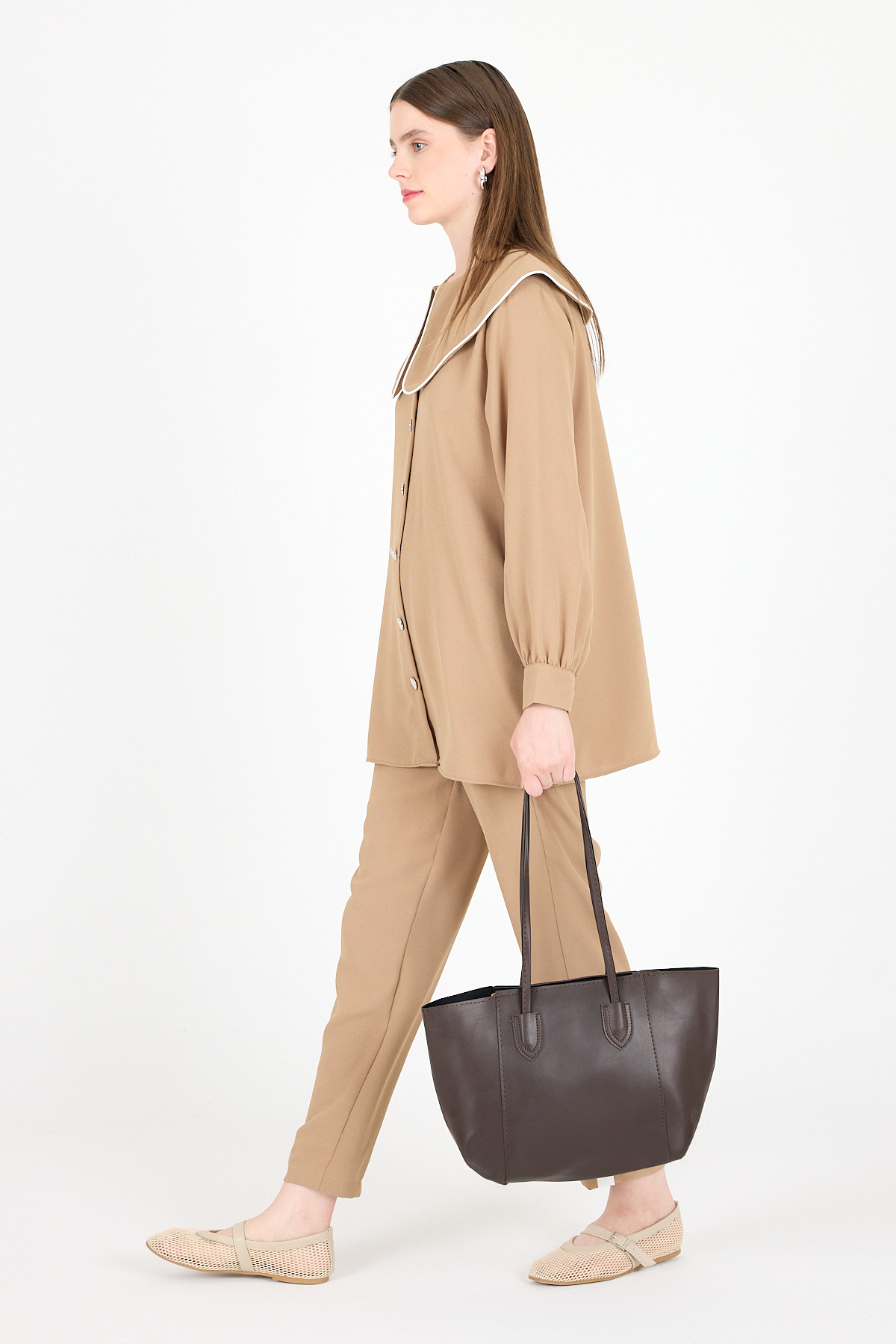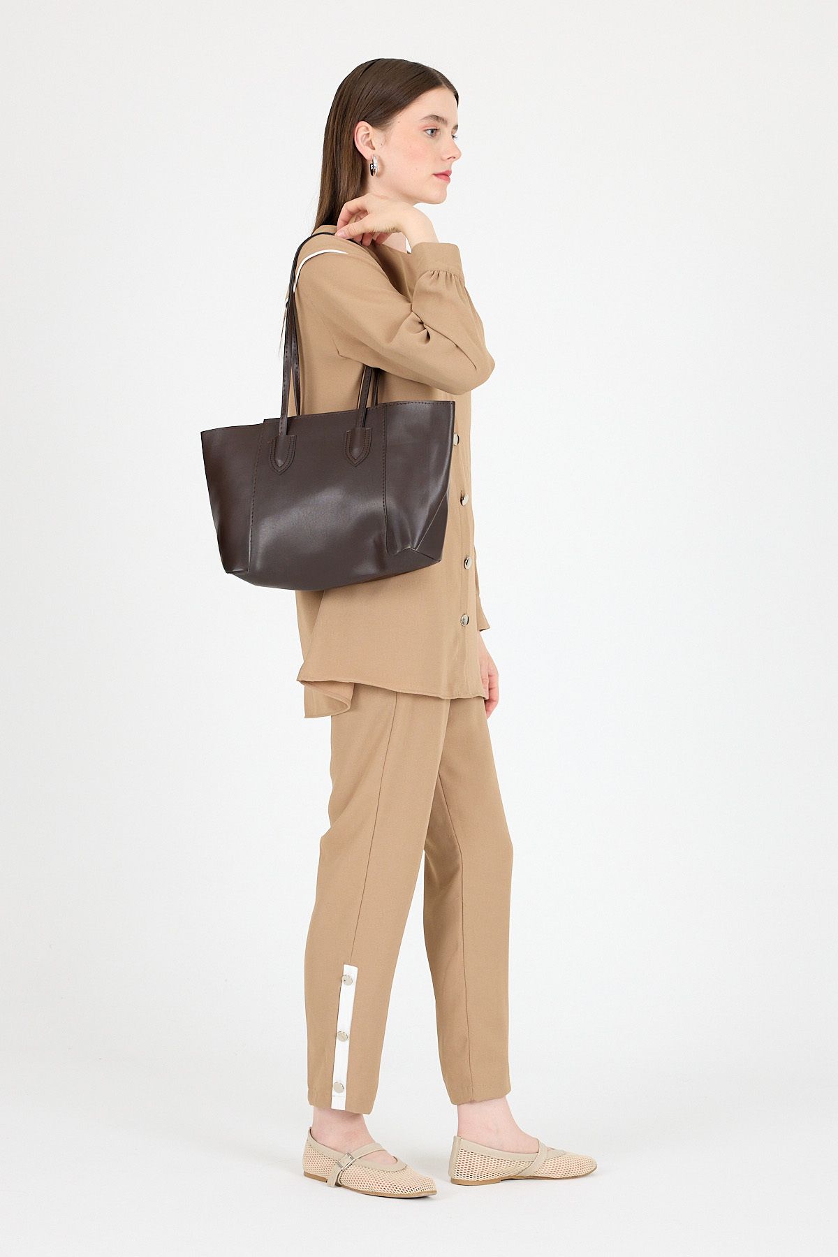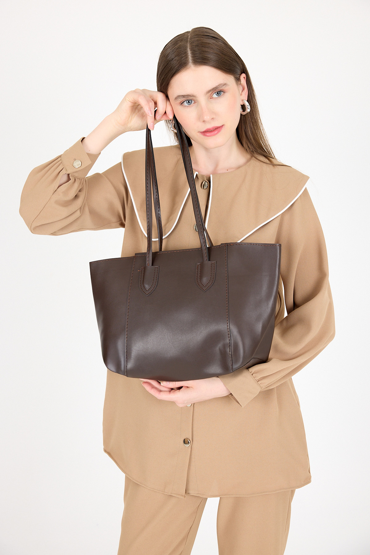 Kahve Dikiş Detaylı Omuz Çantası 9212