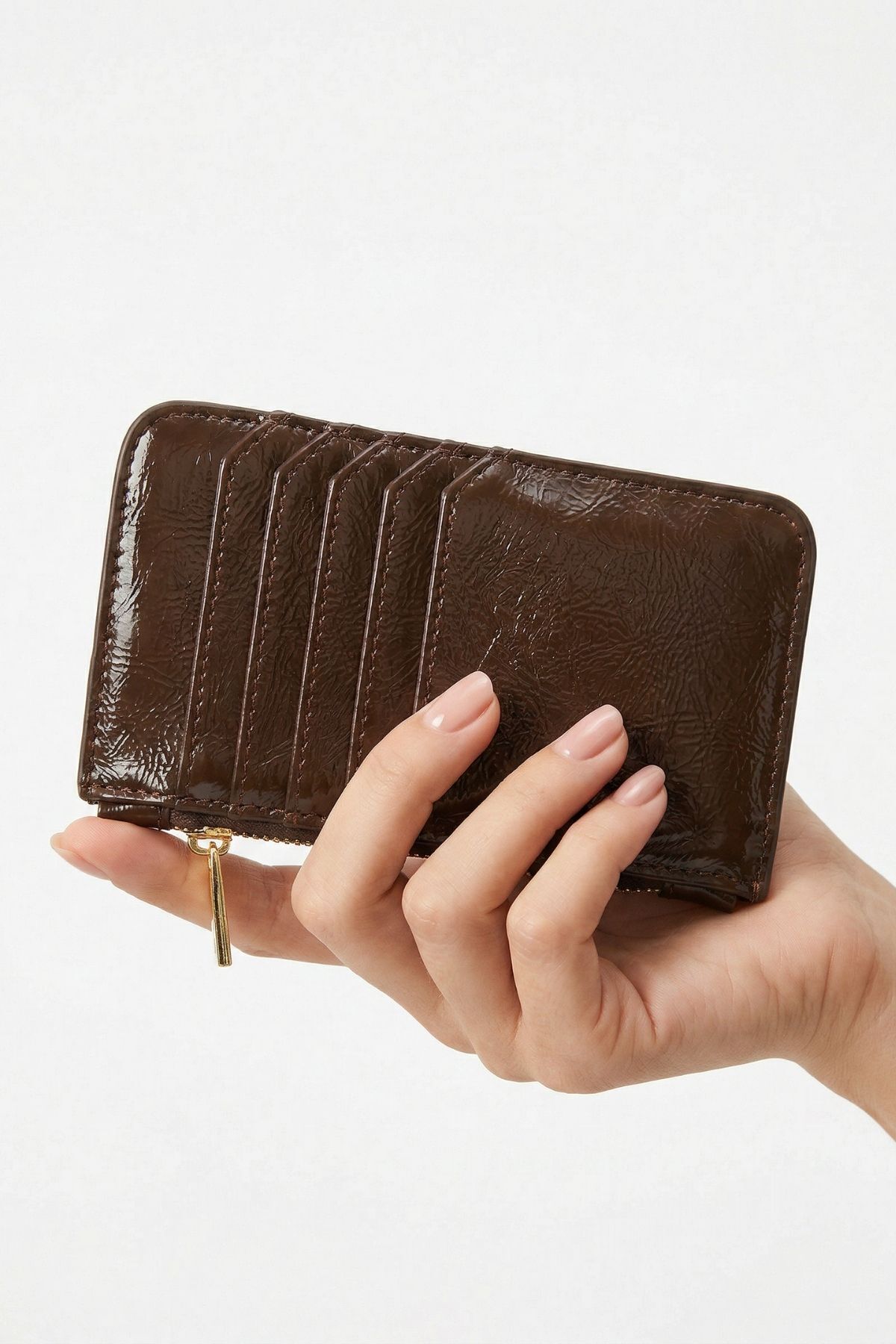 Kahve Fermuar Detaylı Parlak Kartlık 230