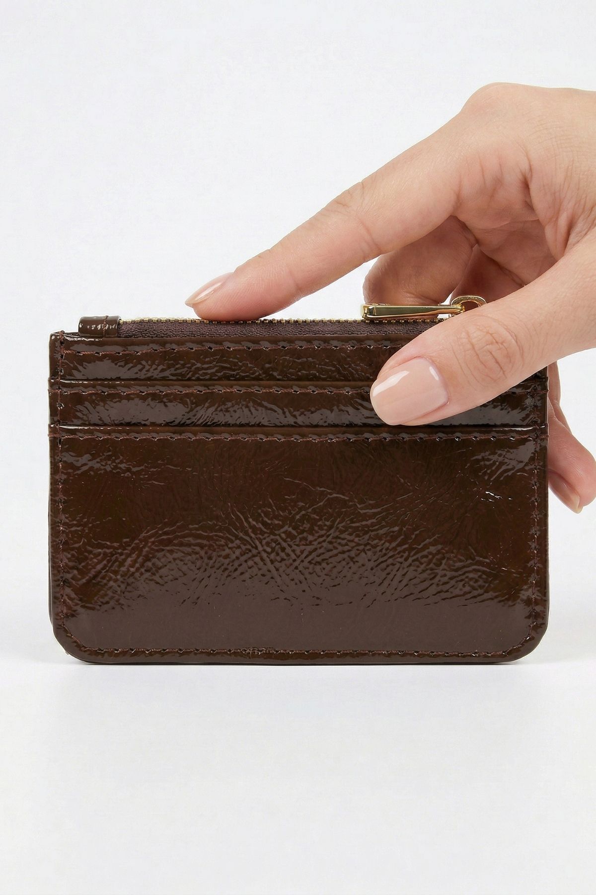 Kahve Fermuar Detaylı Parlak Kartlık 231