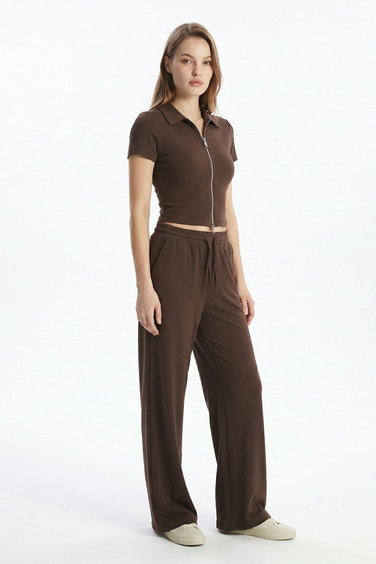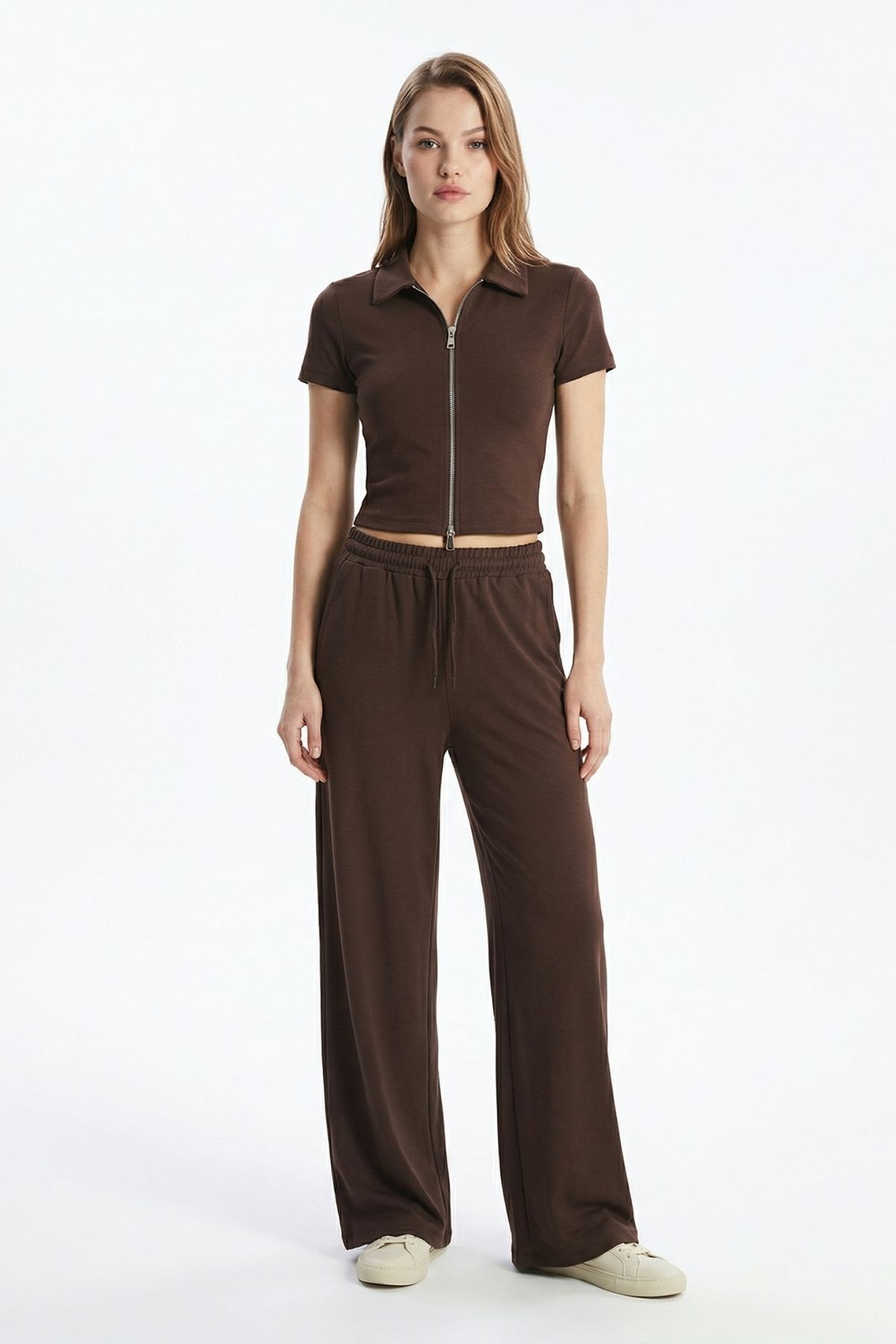 Kahve Fermuarlı Gömlek Yaka Eşofman Takım 0426