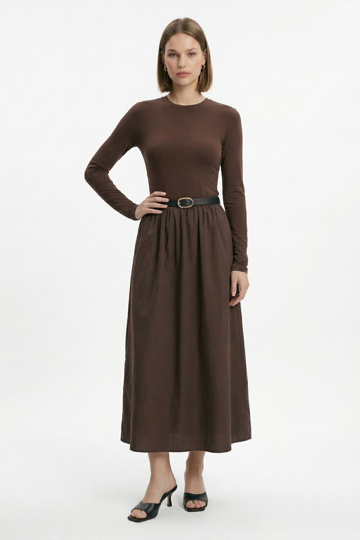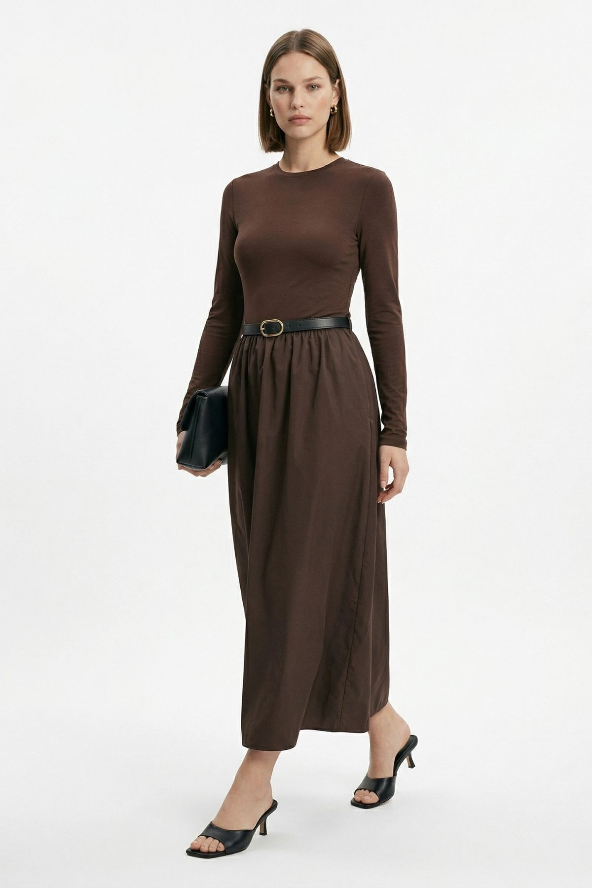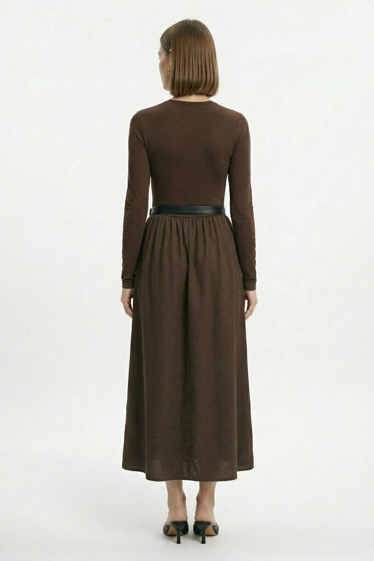 Acı Kahve Desenli Kemerli Etek 1344 - RAYS