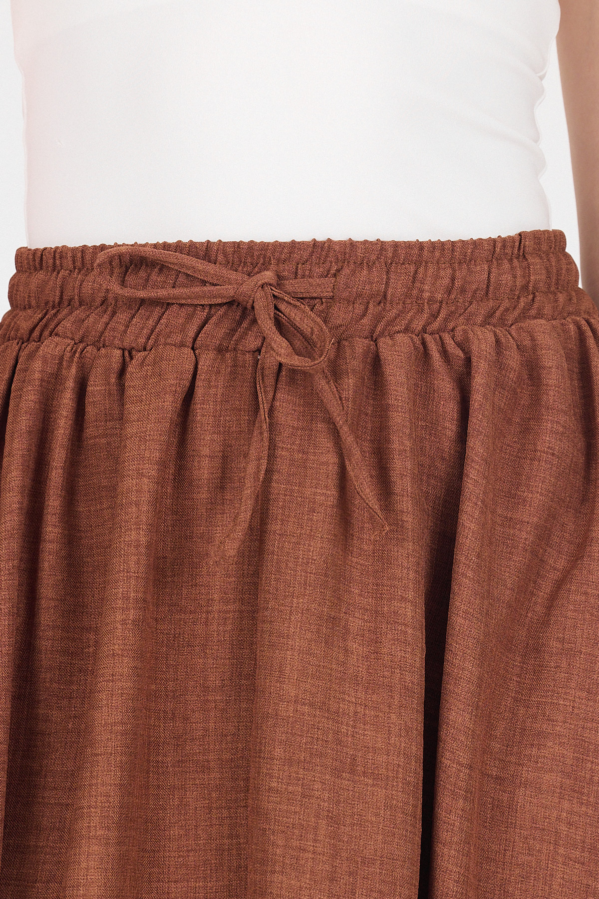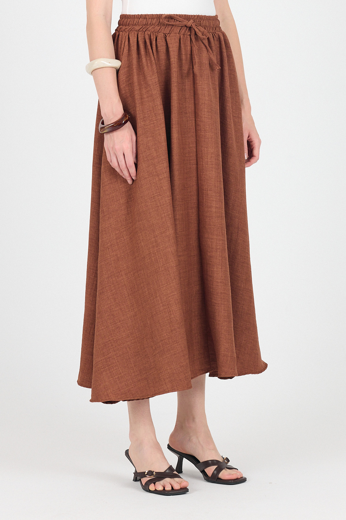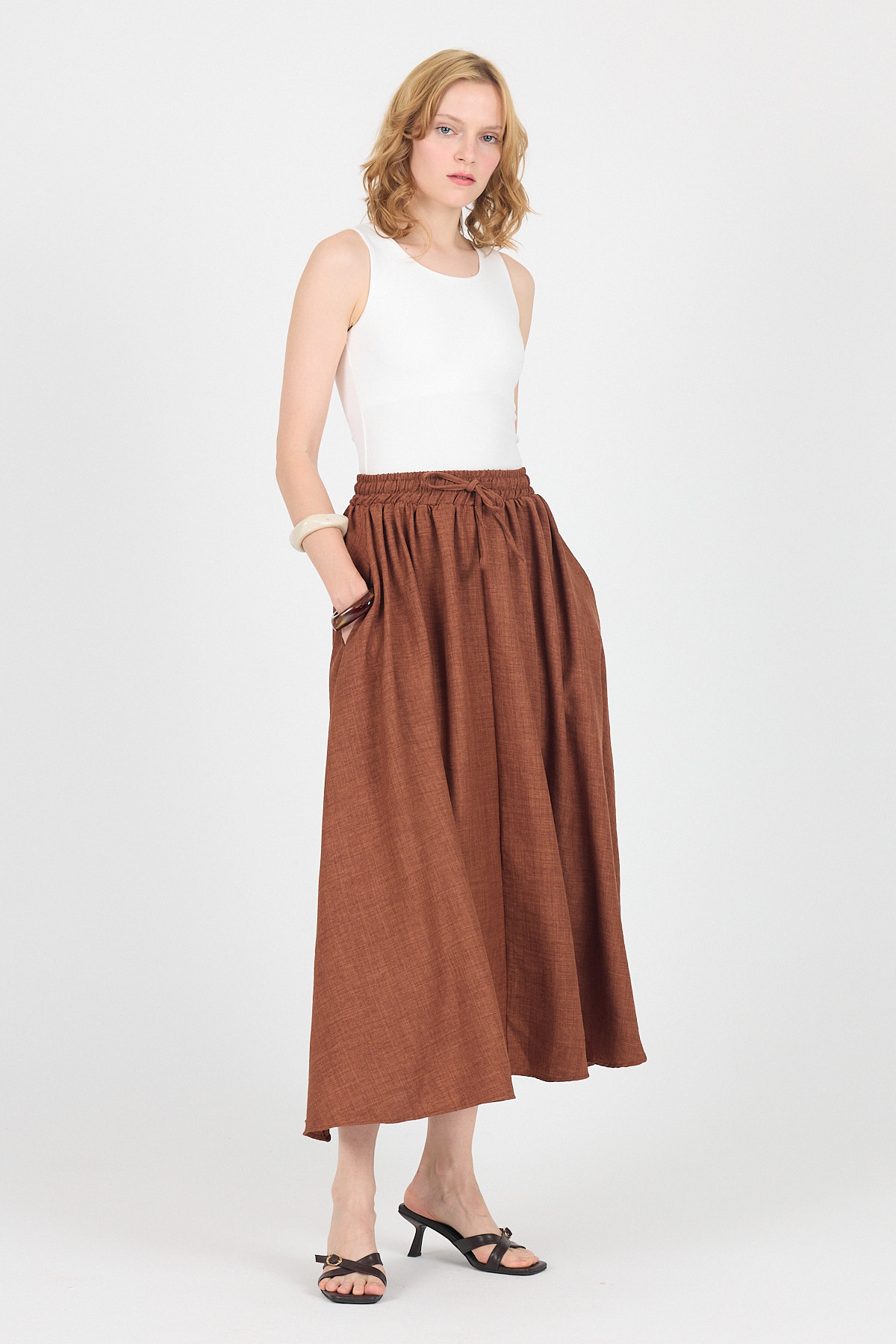 Kahve Pamuklu Çan Kesim Bağcıklı Uzun Etek 8024