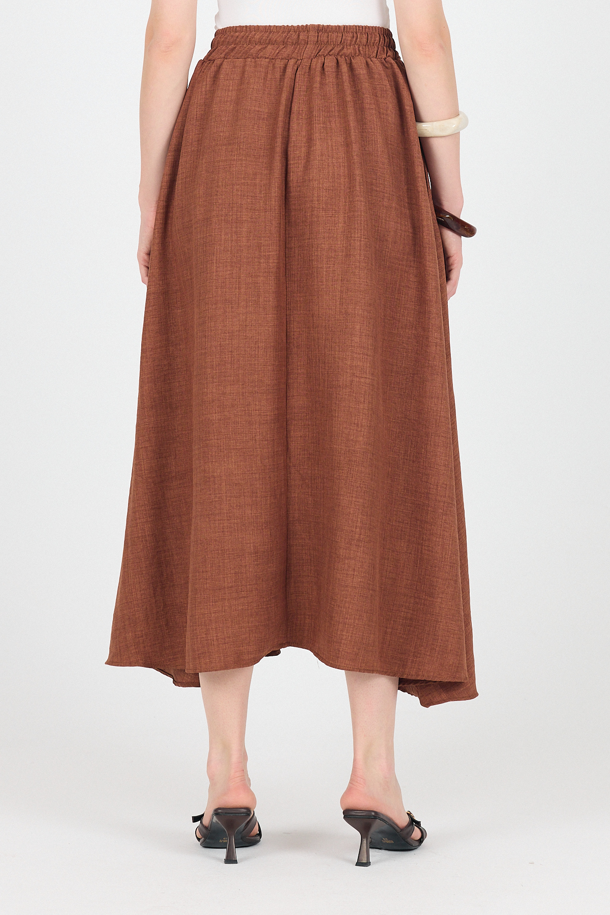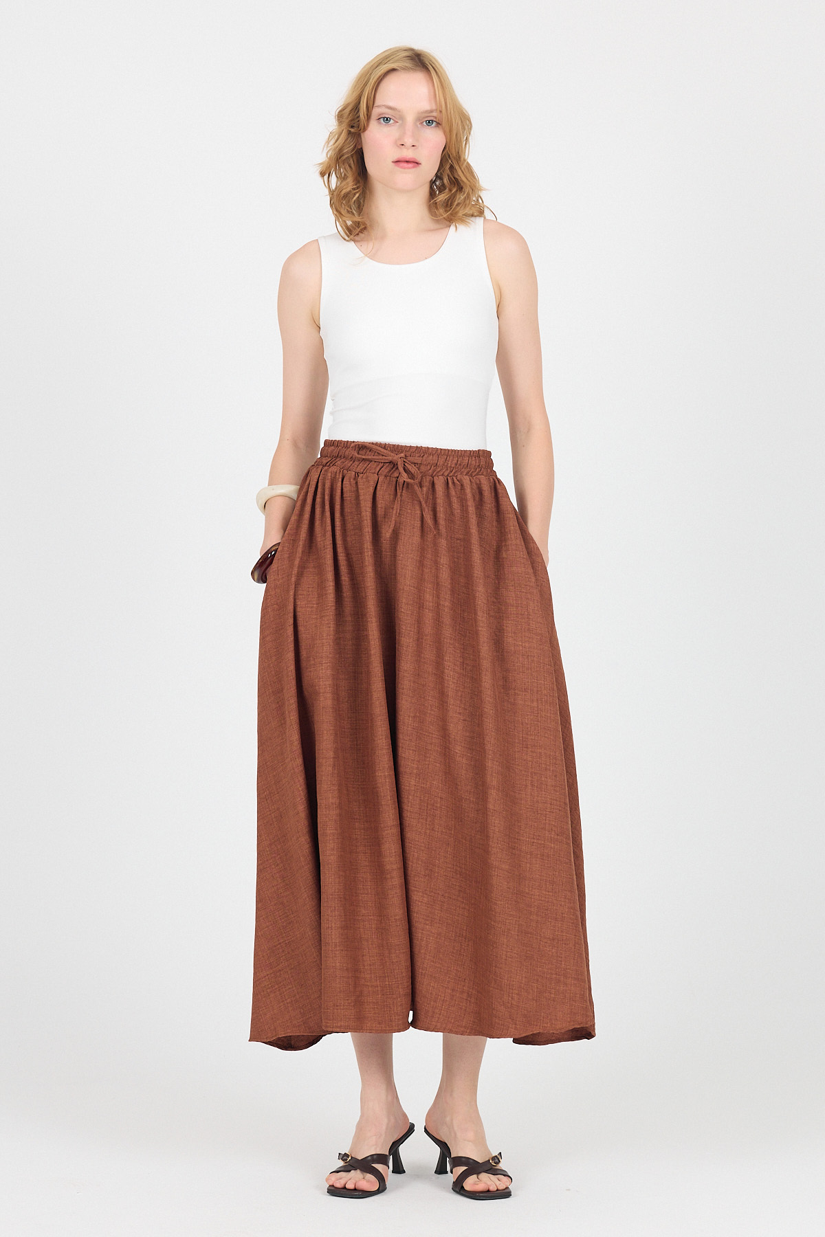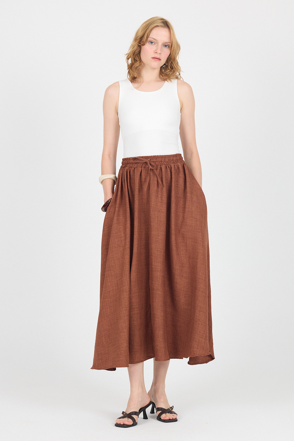 Kahve Pamuklu Çan Kesim Bağcıklı Uzun Etek 8024