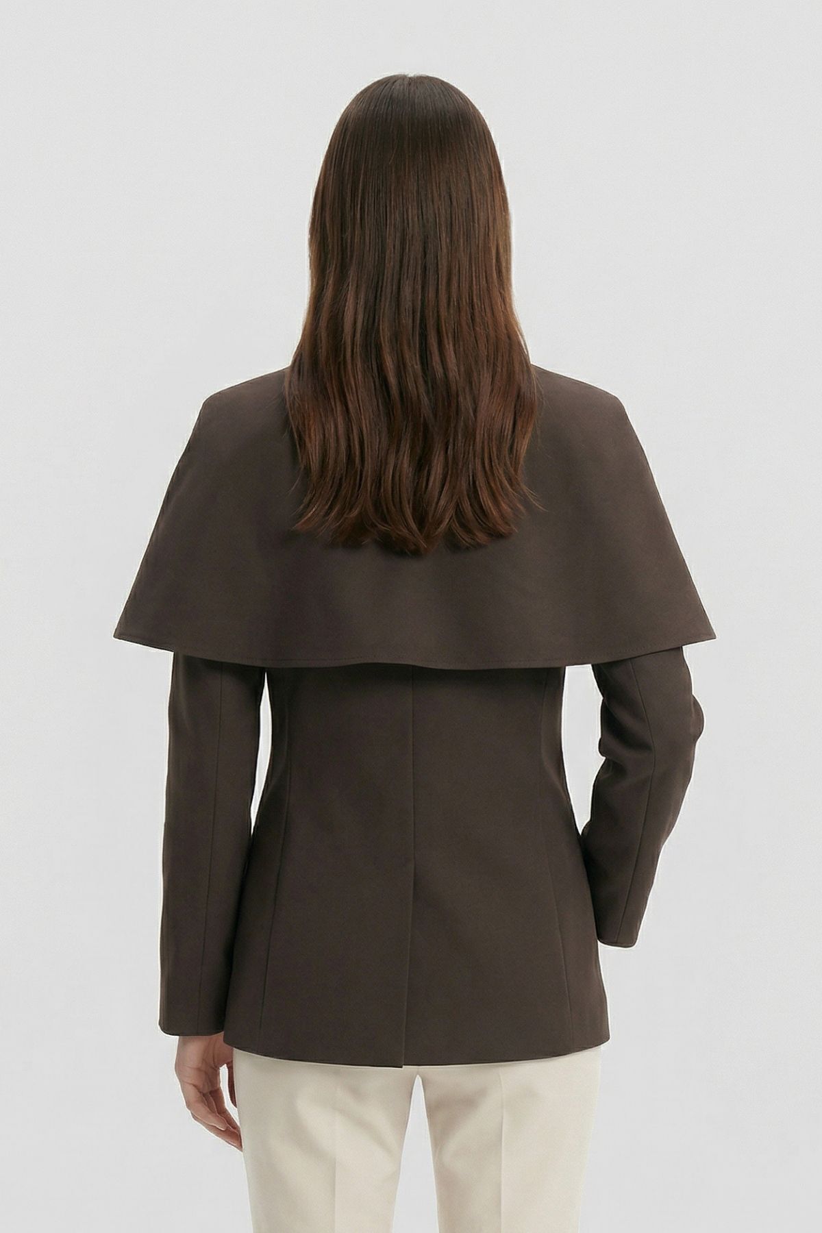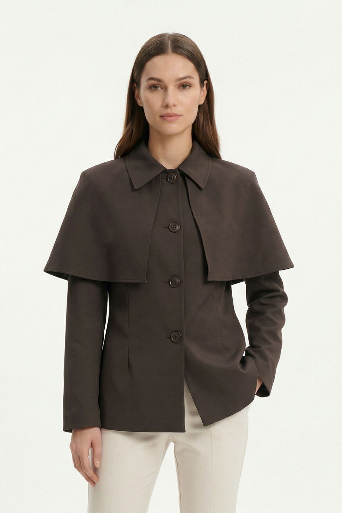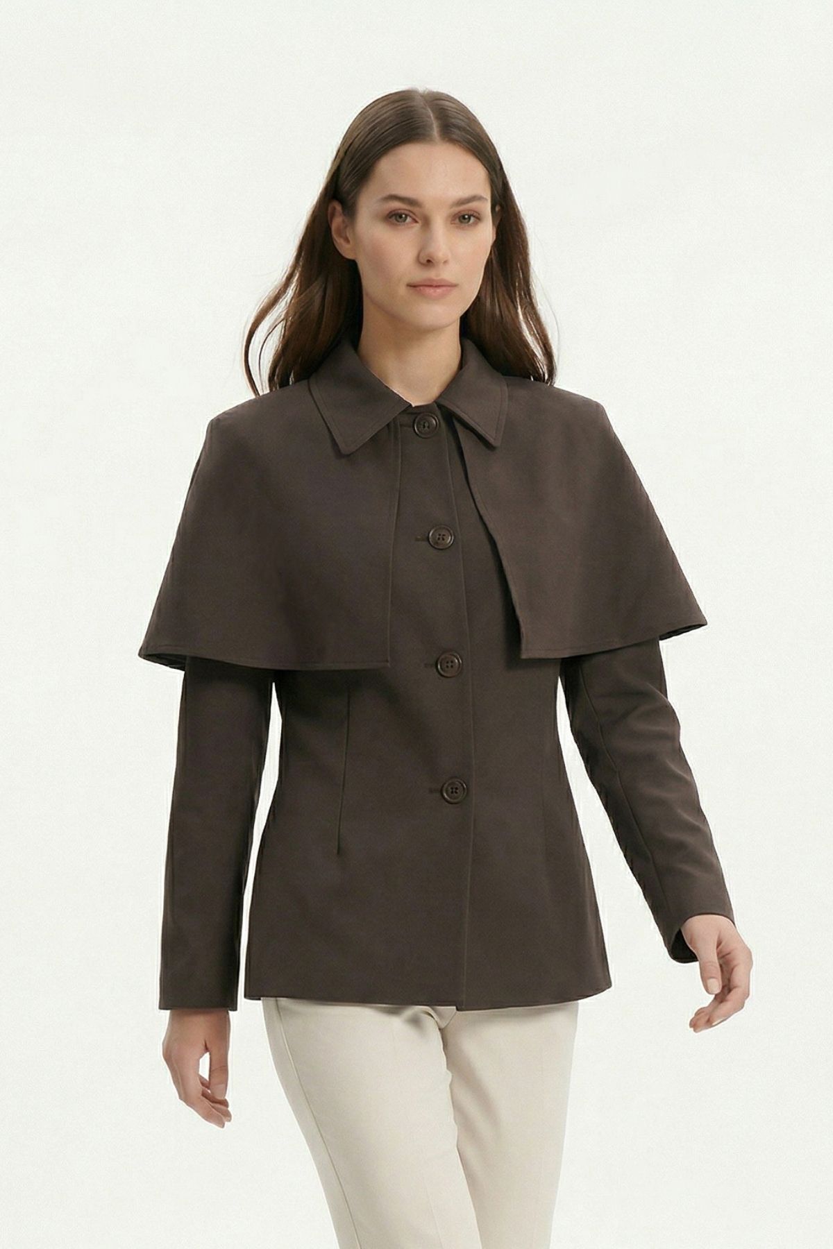 Kahve Pelerin Detay Düğmeli Ceket 7687