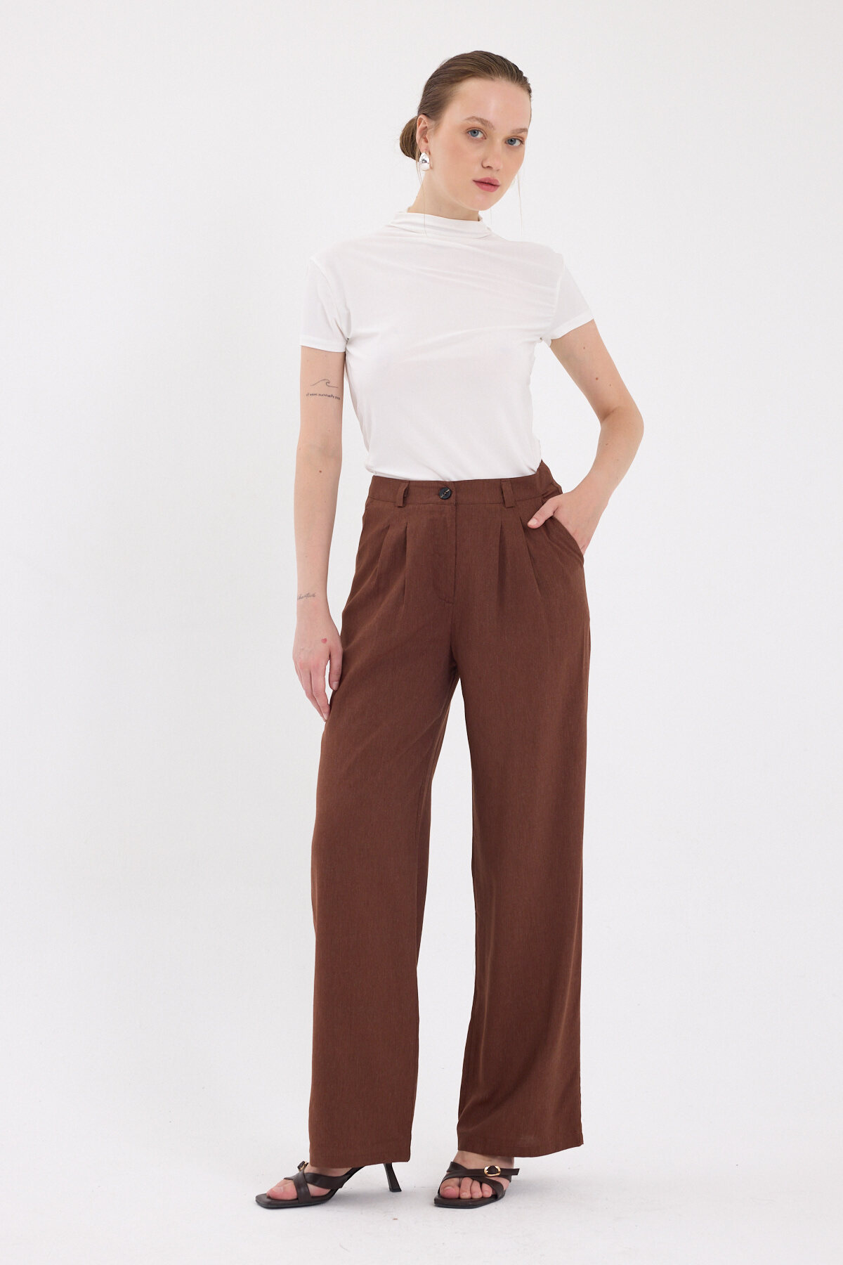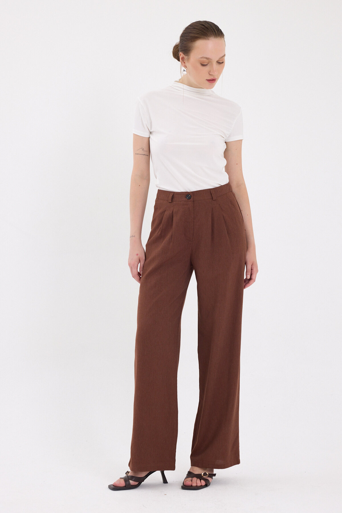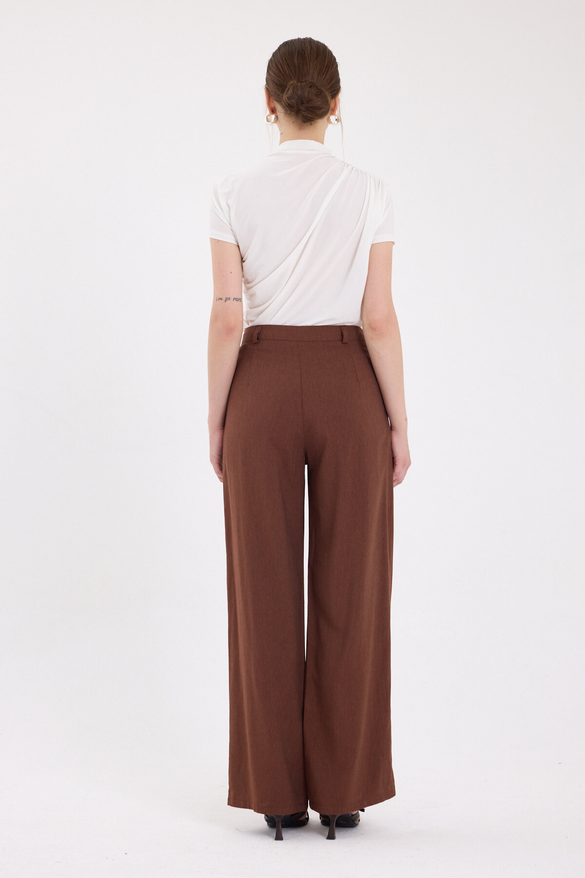Kahve Pileli Geniş Paça Pantolon 3867 - RAYS Kahve Pileli Geniş Paça Pantolon 3867 - RAYS (1)