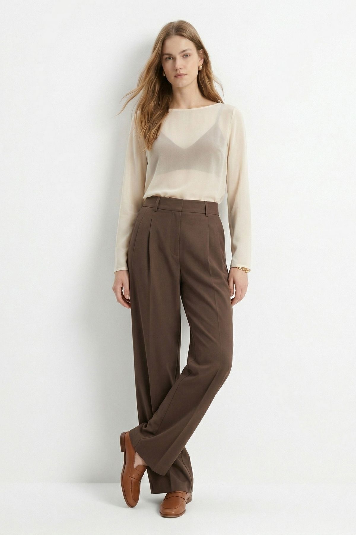 Kahve Pileli Geniş Paça Pantolon 3867 - RAYS Kahve Pileli Geniş Paça Pantolon 3867 - RAYS (1)
