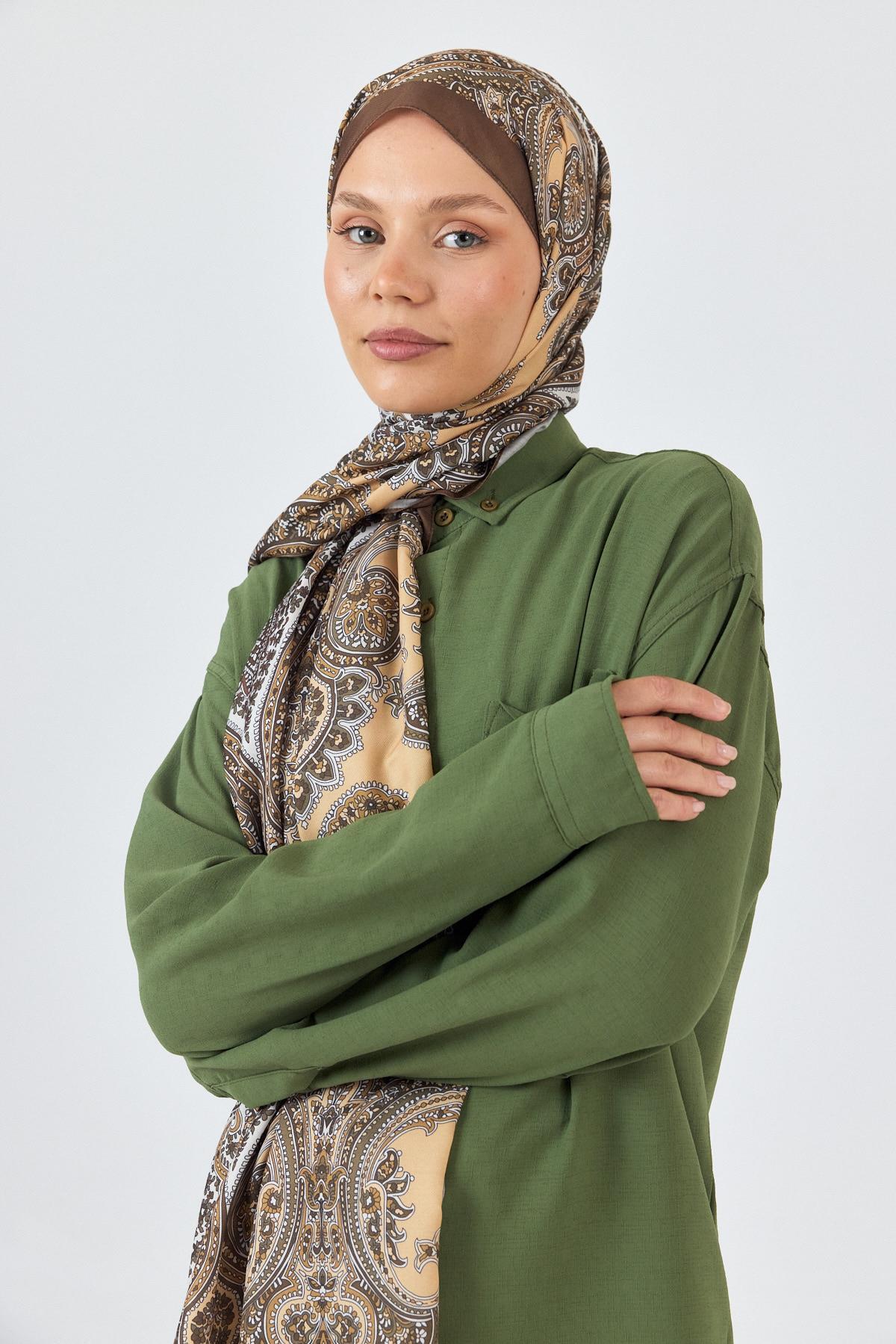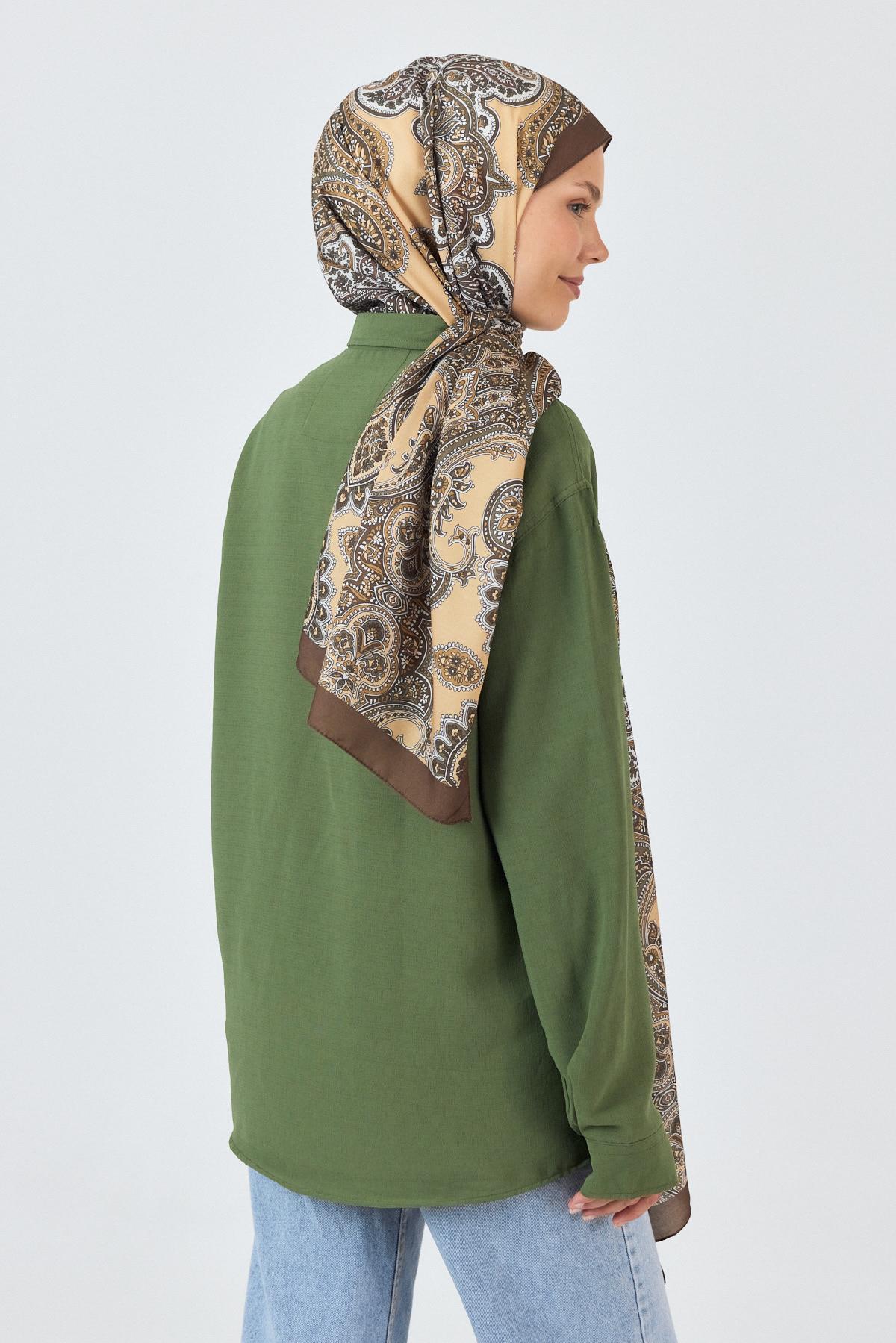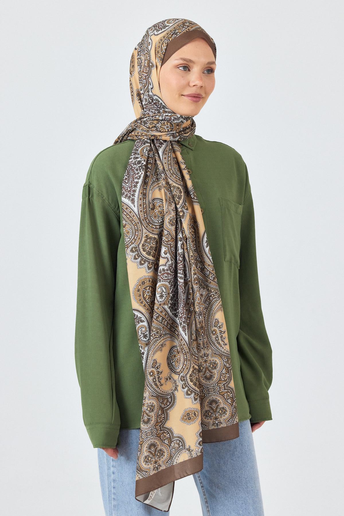 Kahve Retro Desenli Şal 4002