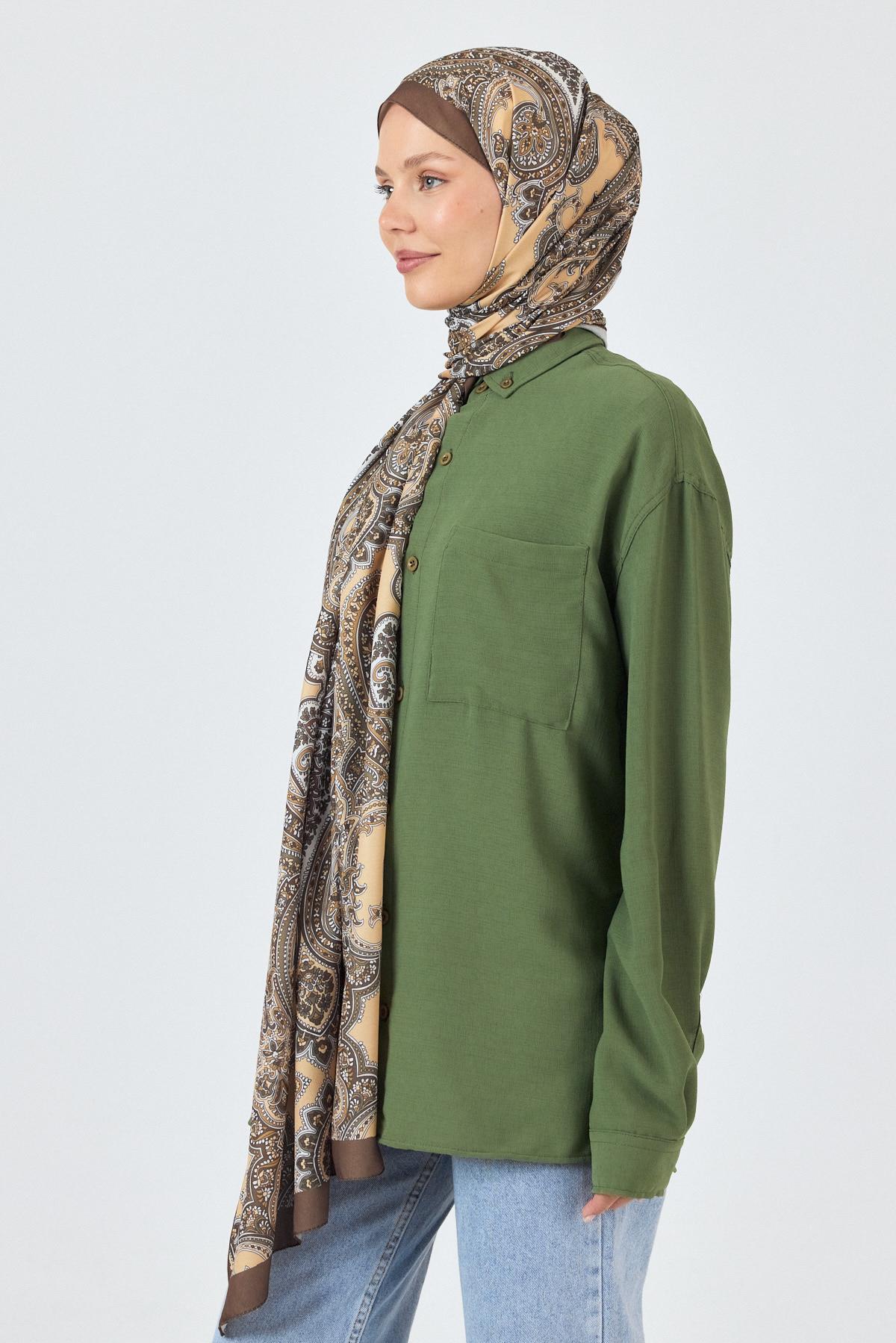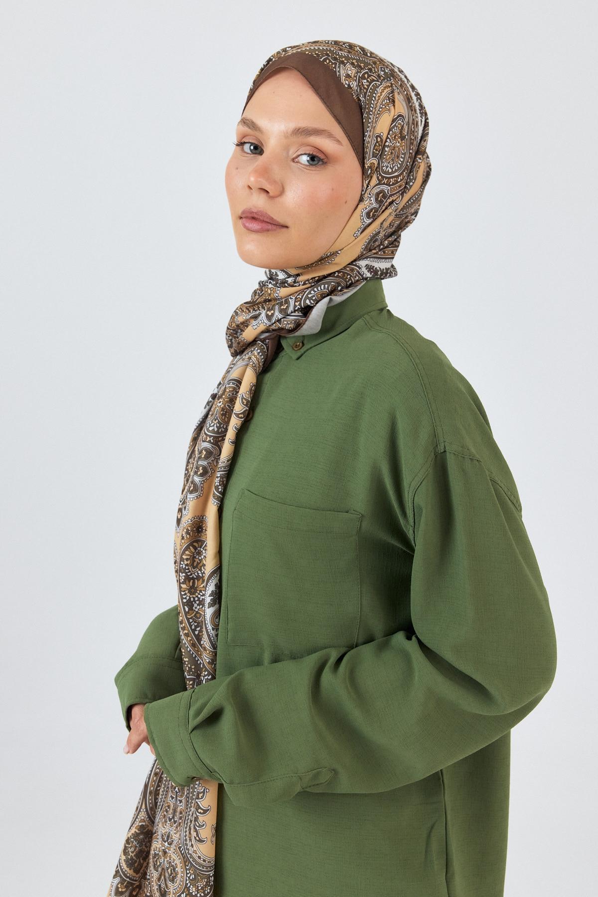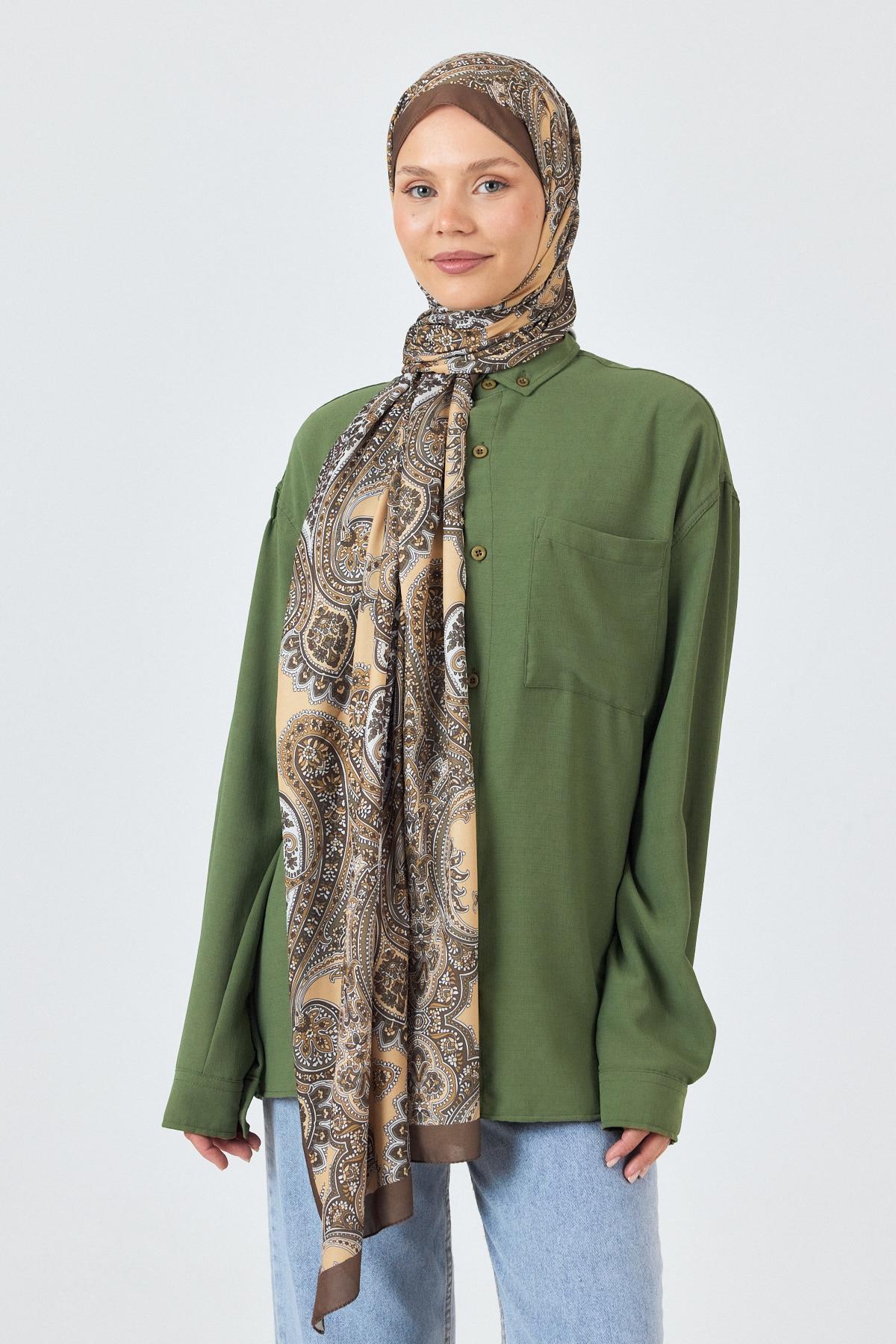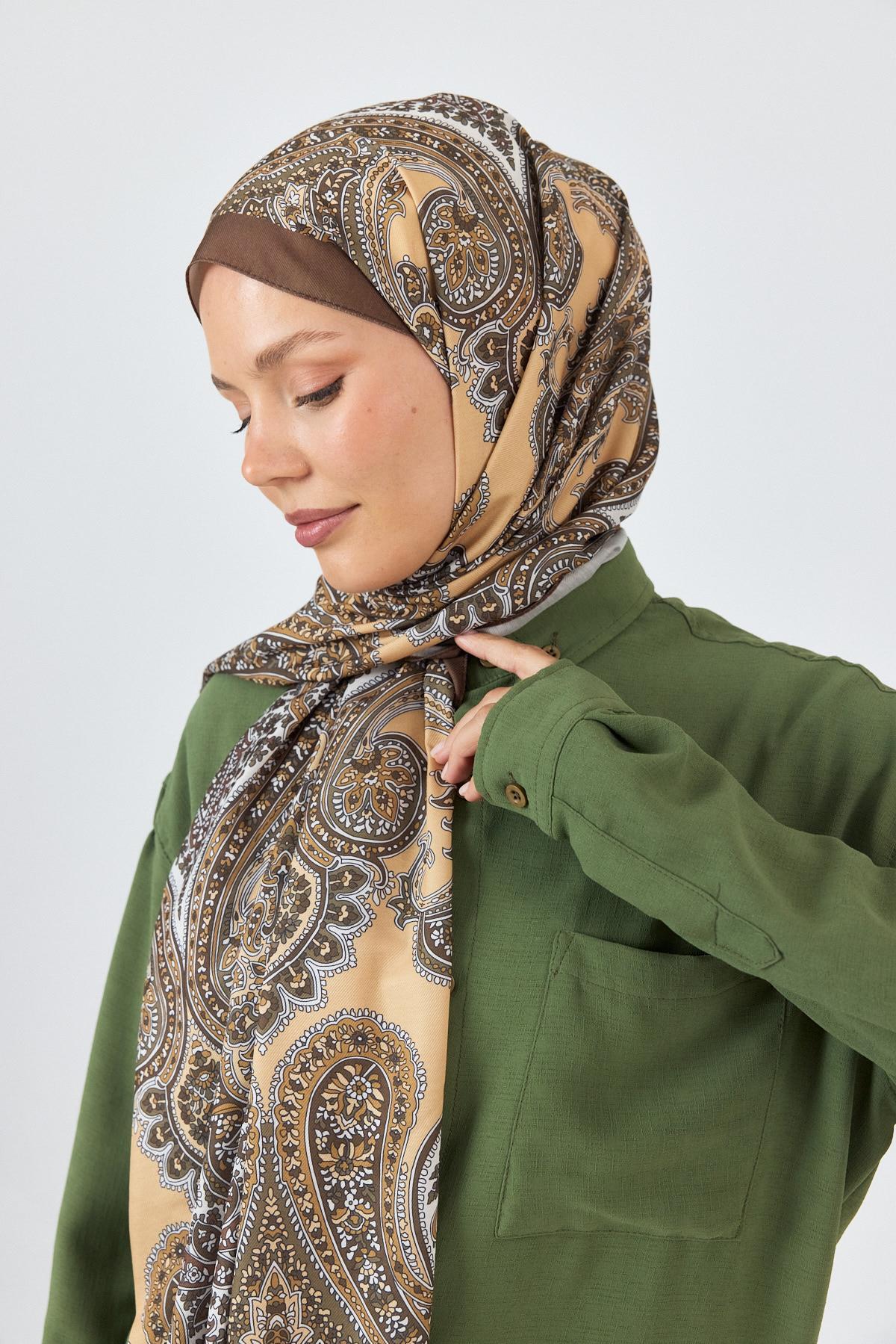 Kahve Retro Desenli Şal 4002