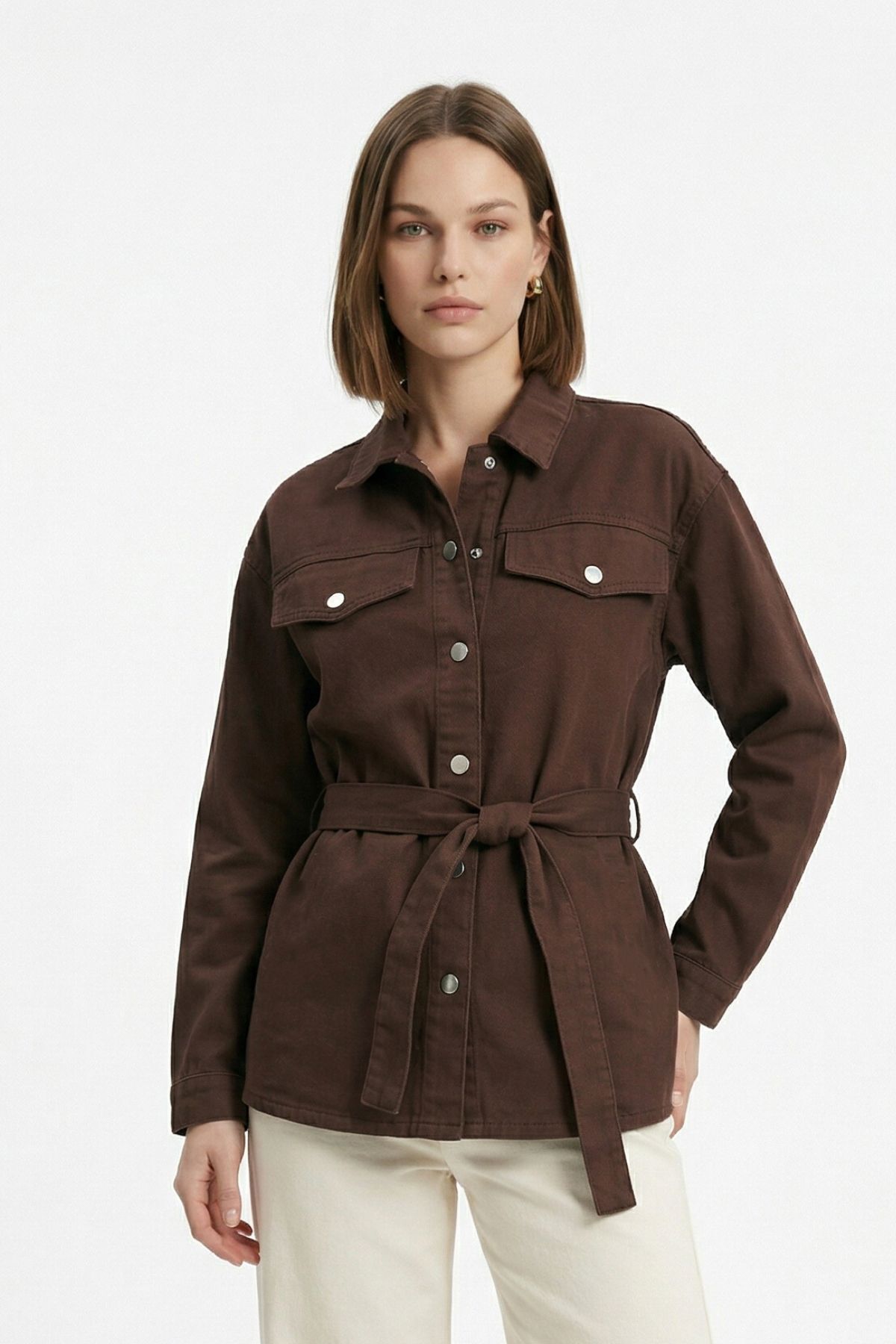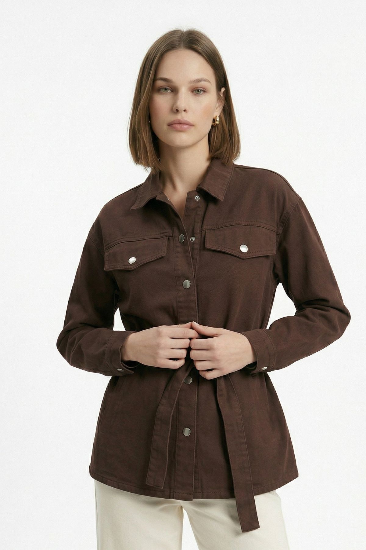 Kahve Sahte Cep Detay Kuşaklı Ceket 218