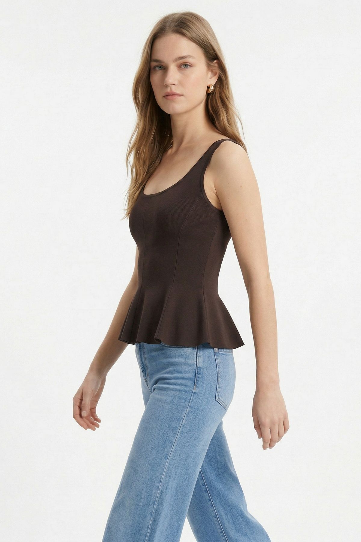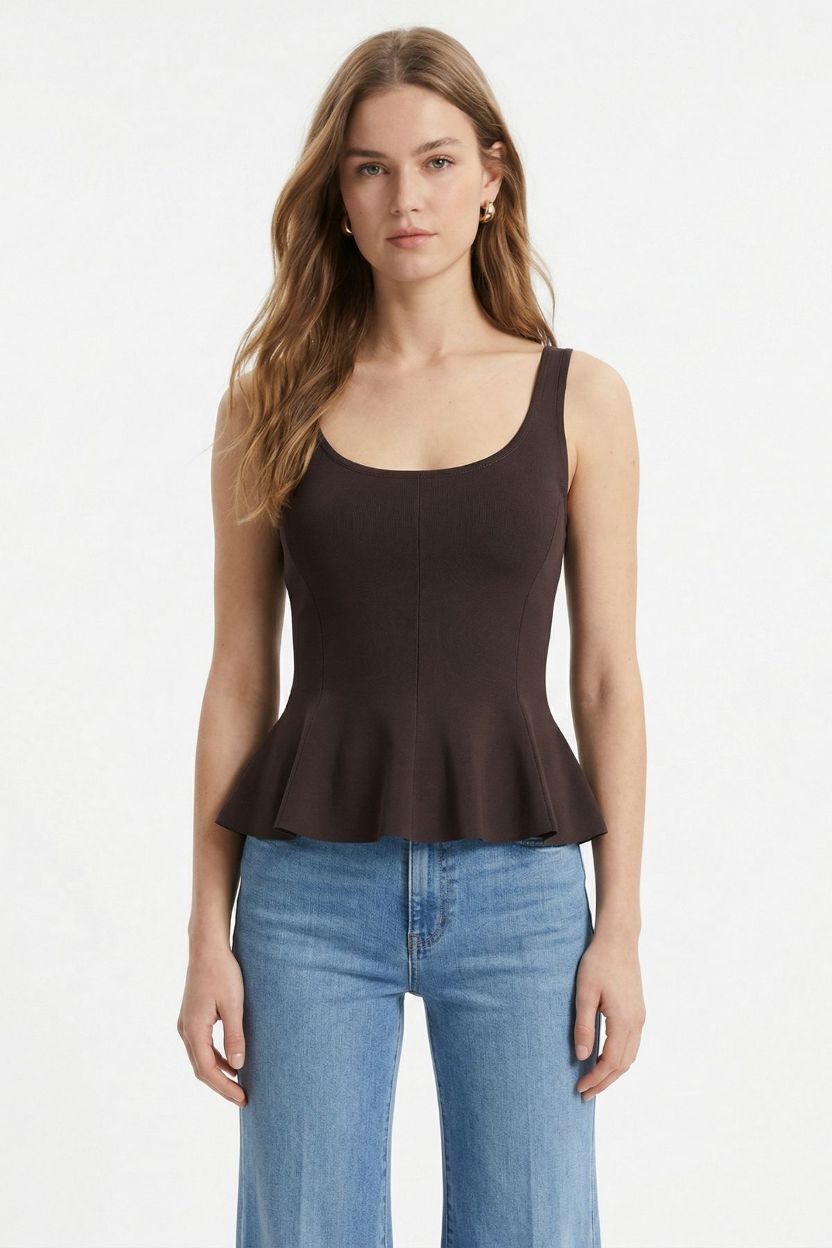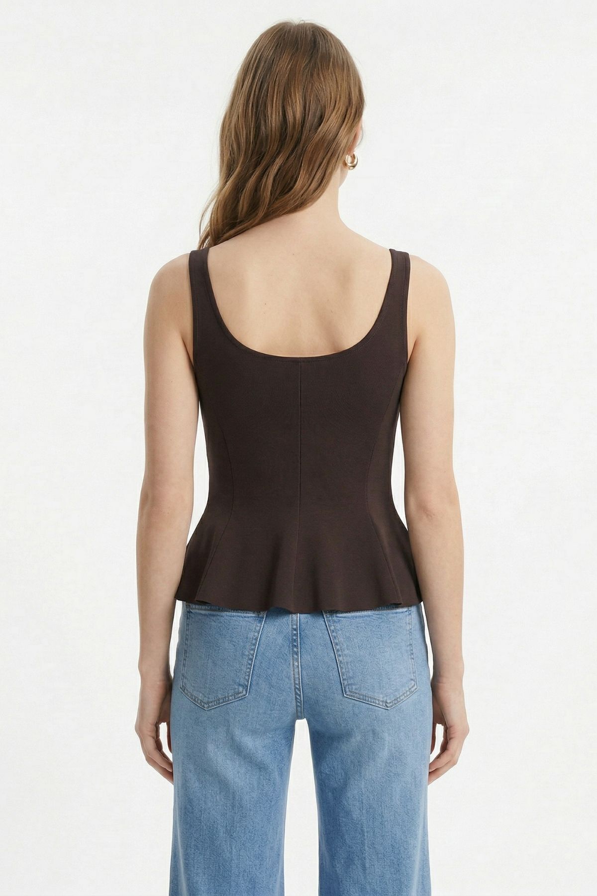 Kahve Sıfır Kol U Yaka Bluz 2786