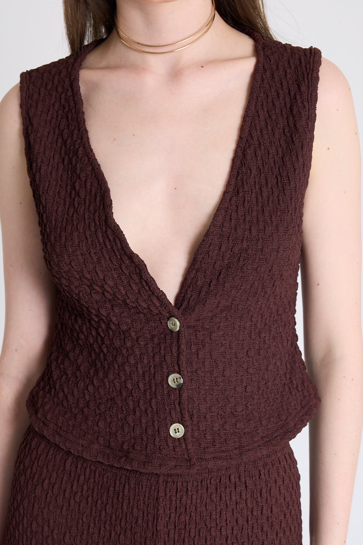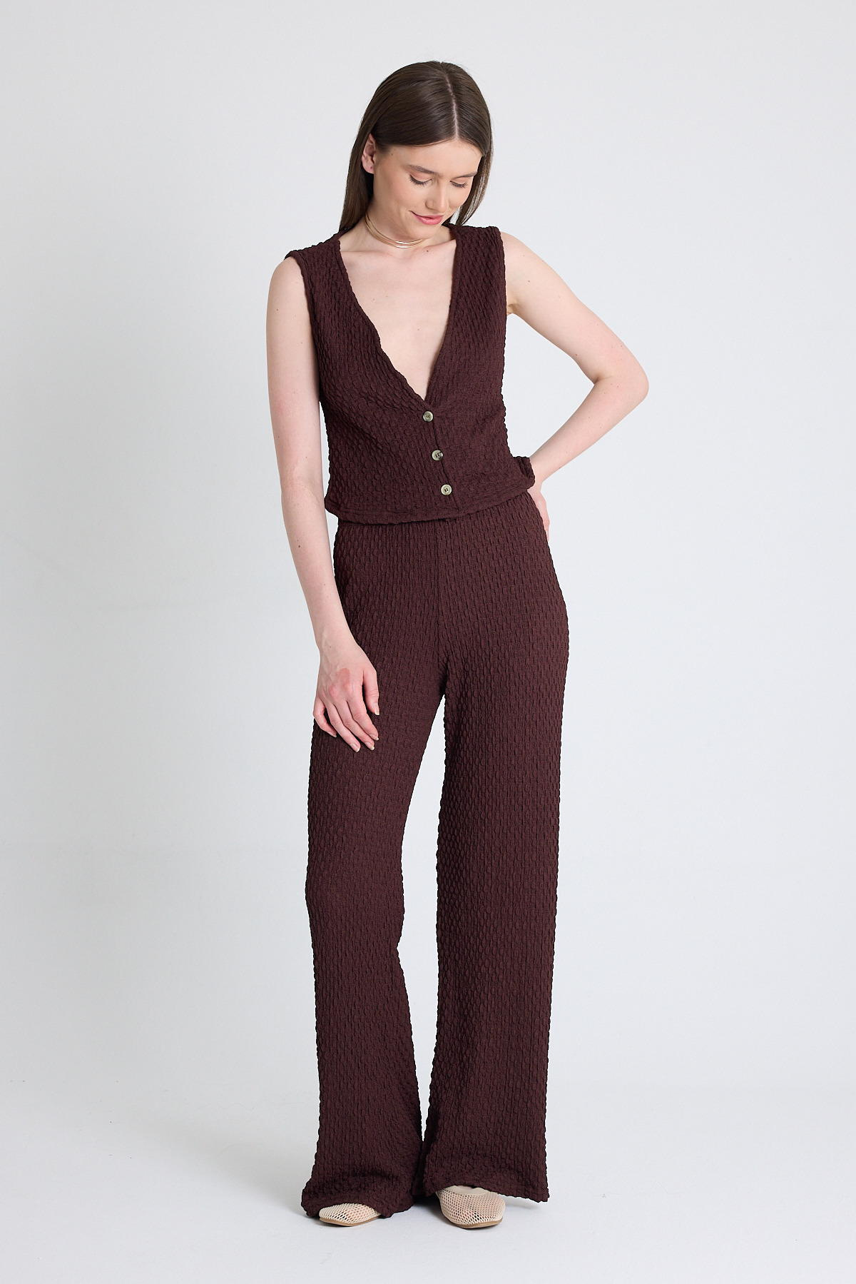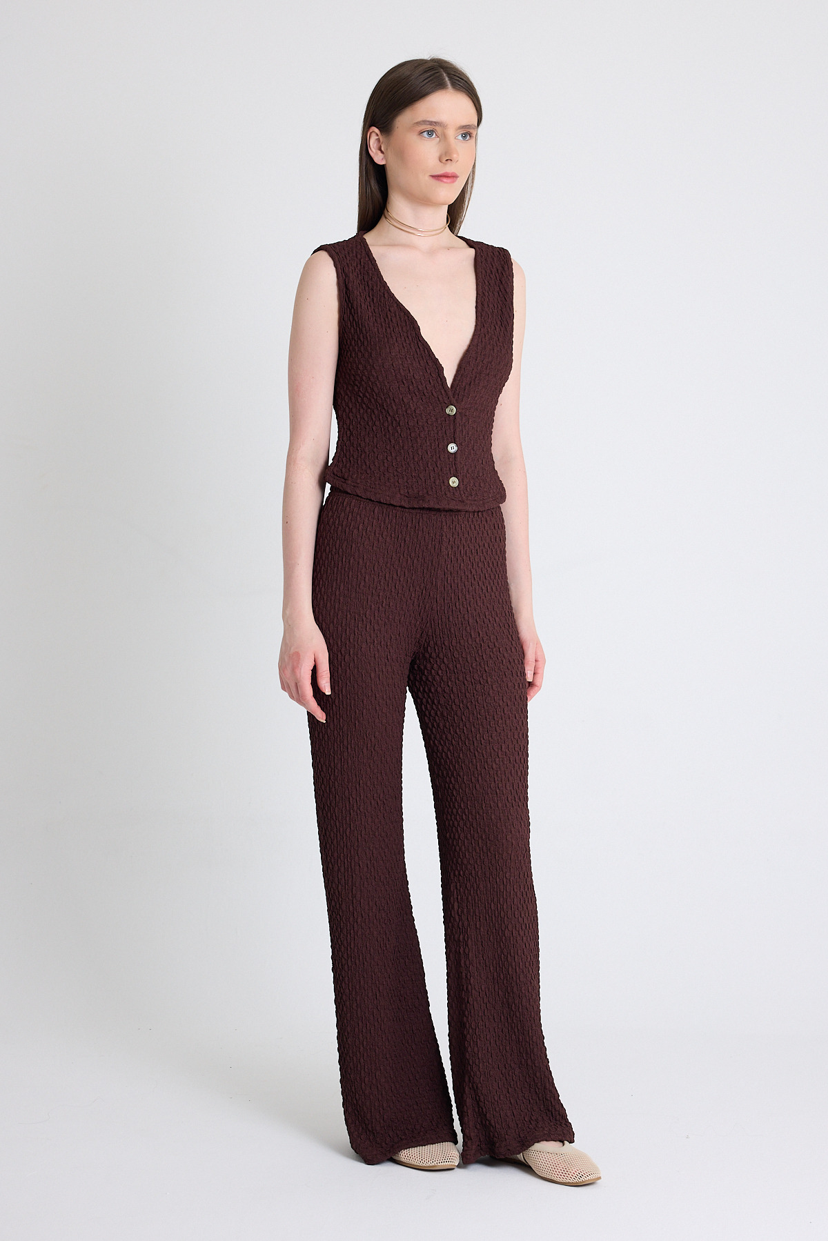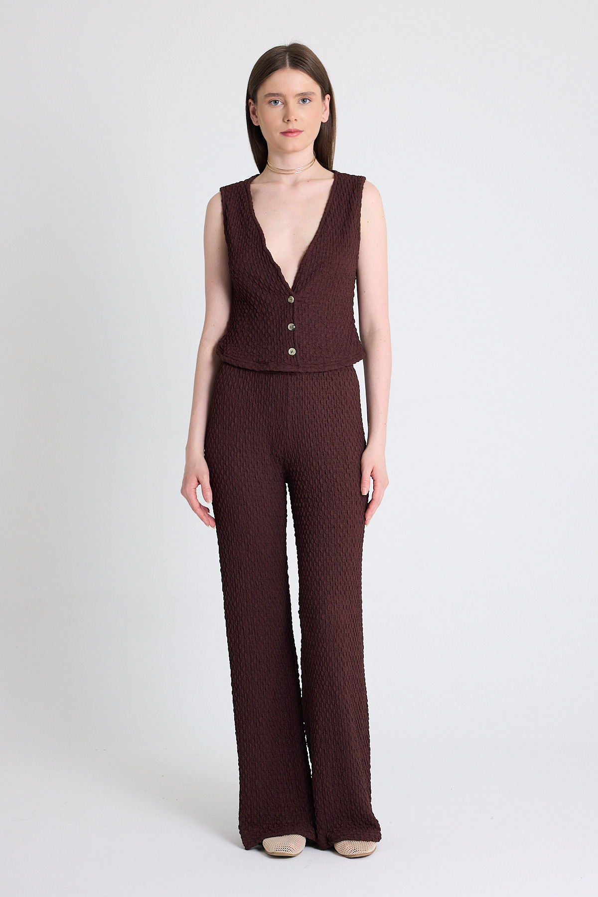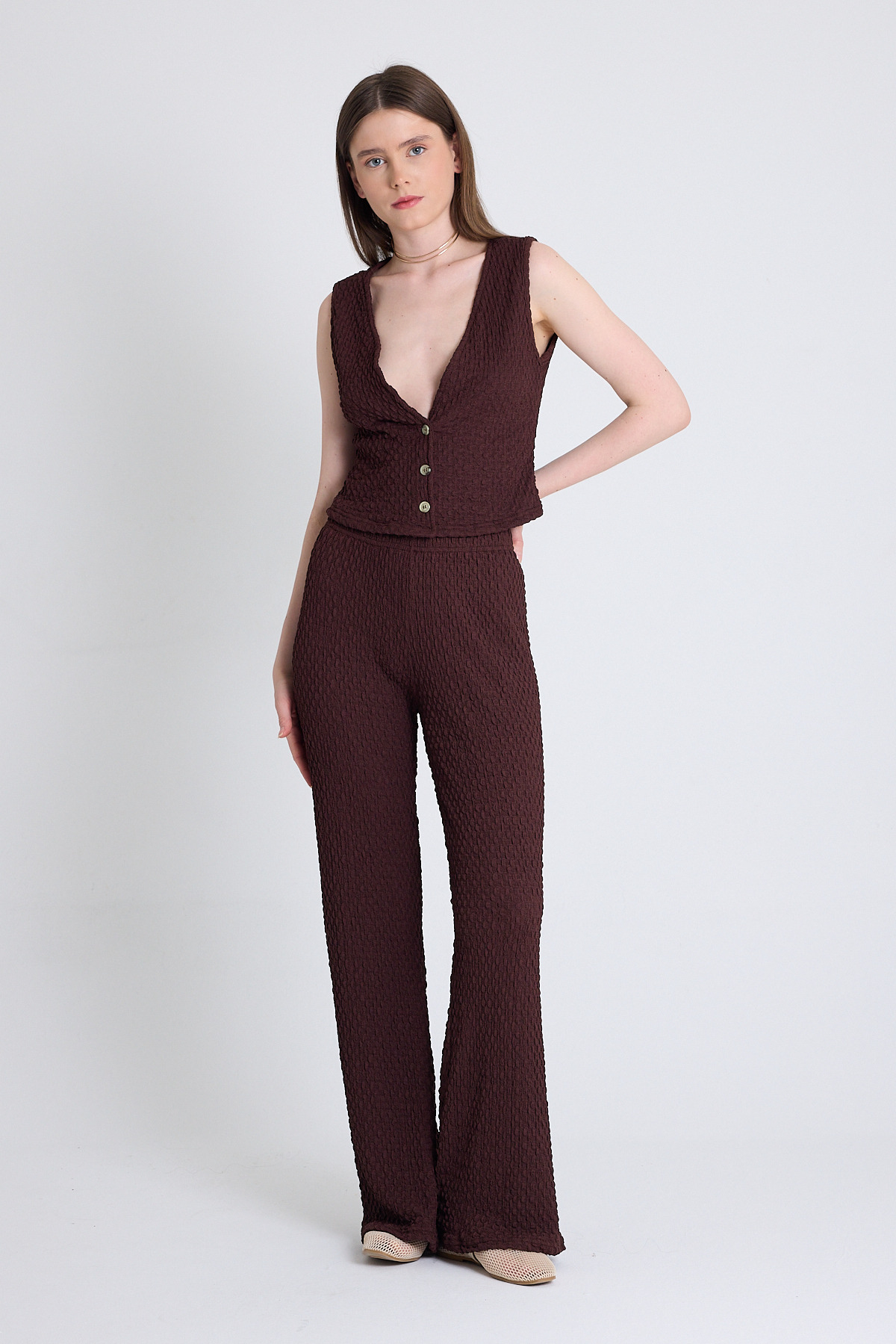 Kahve V Yaka Yelek ve Pantolon Takımı 3000
