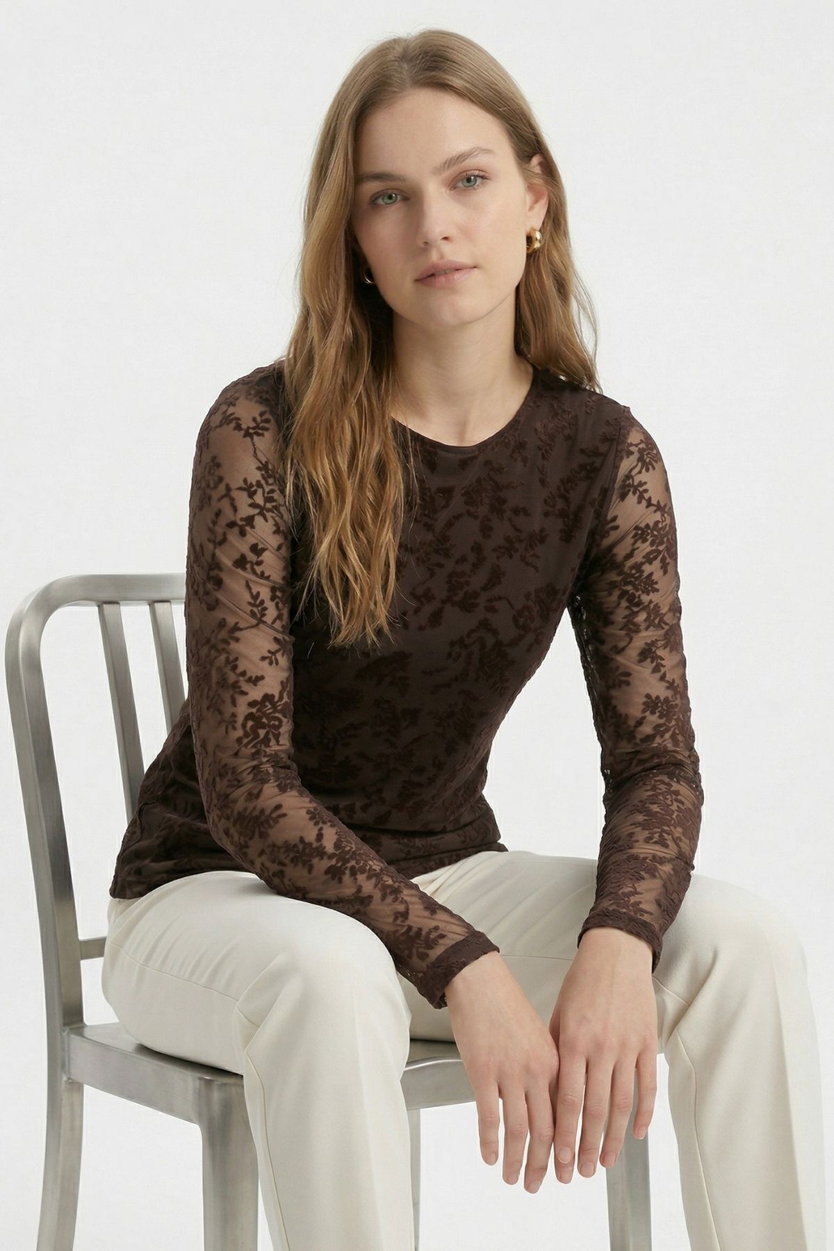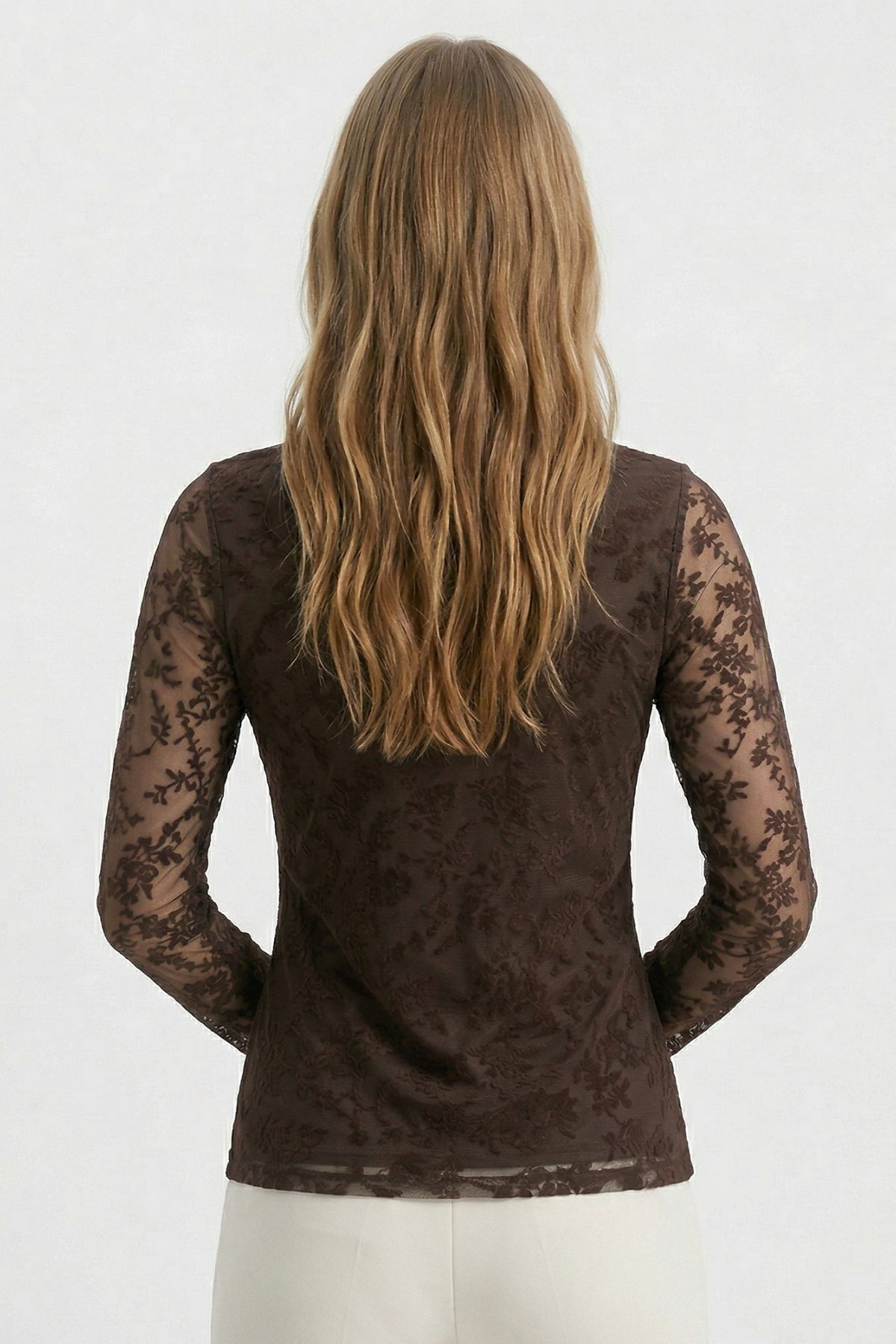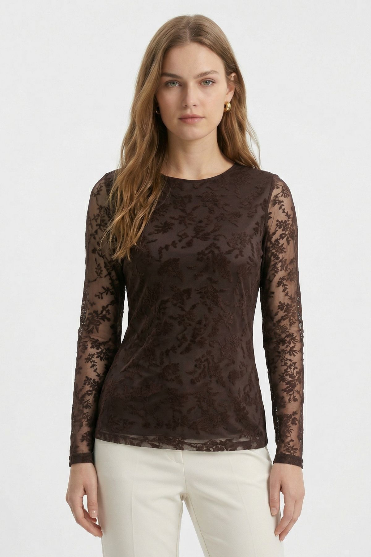 Kahve Yandan Büzgülü Desenli Bluz 8476A