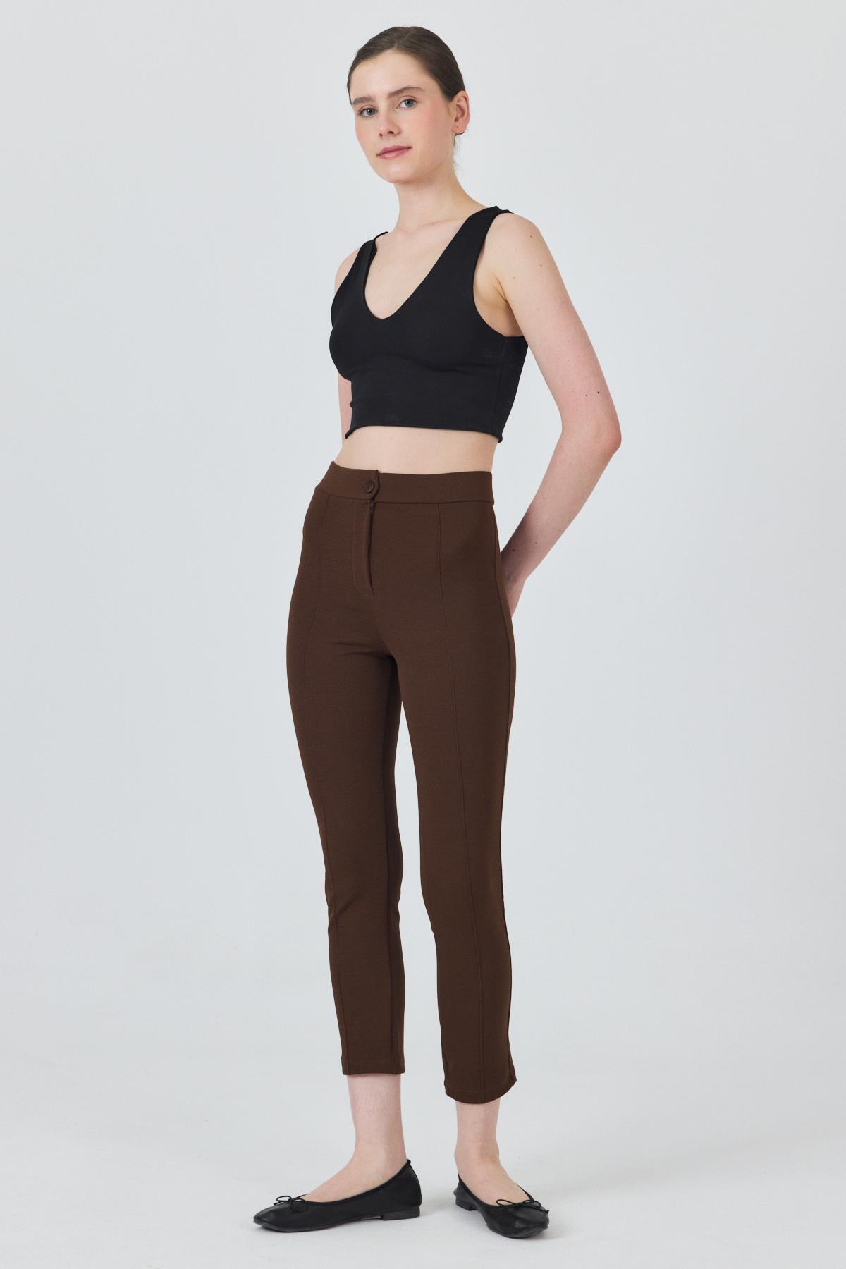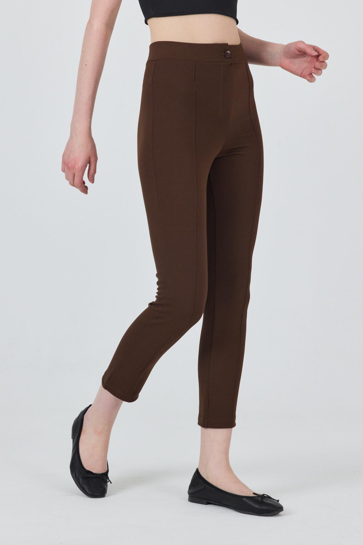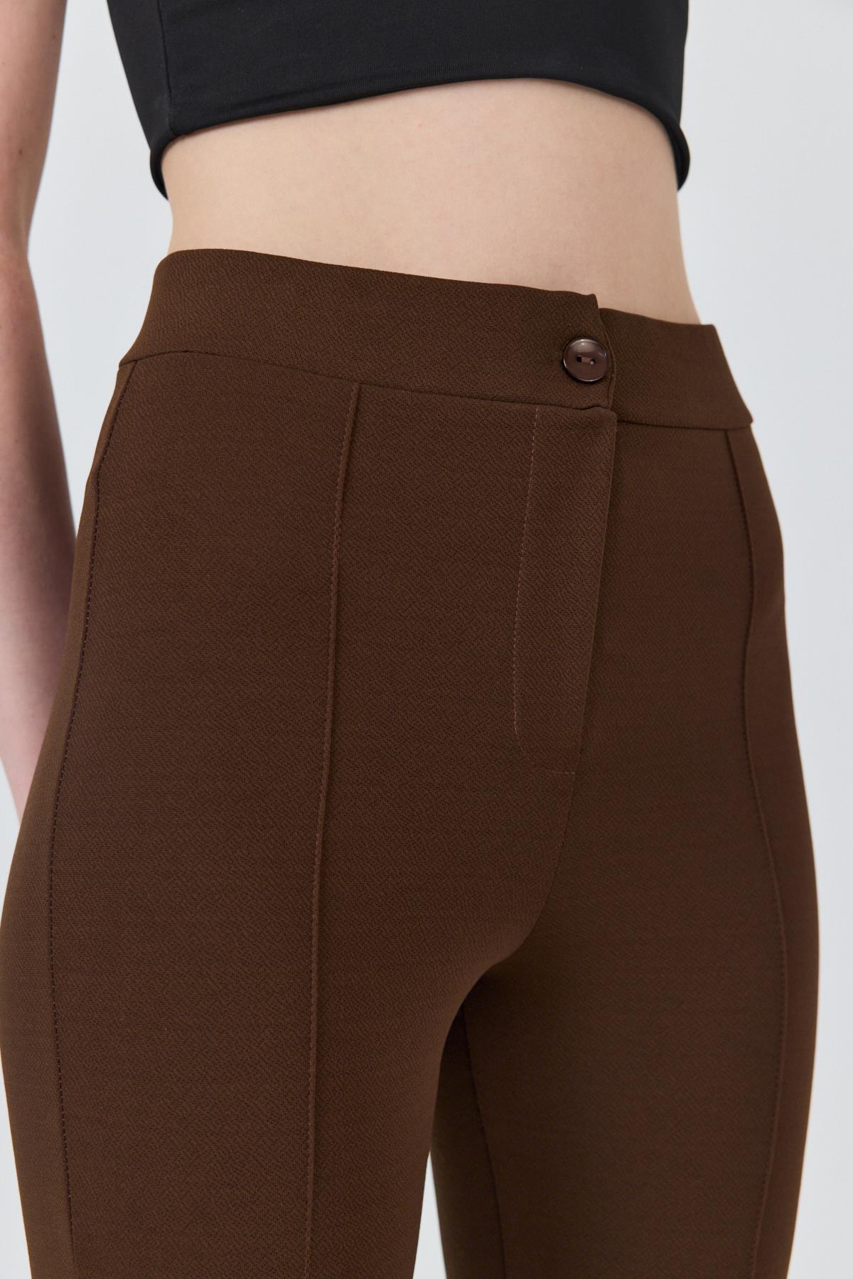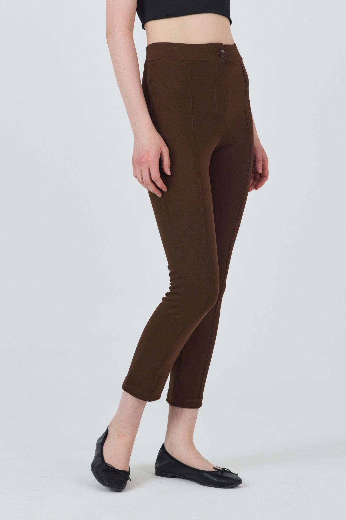 Kahve Yüksek Bel Nervür Dikiş Detaylı Tayt Pantolon 6875A