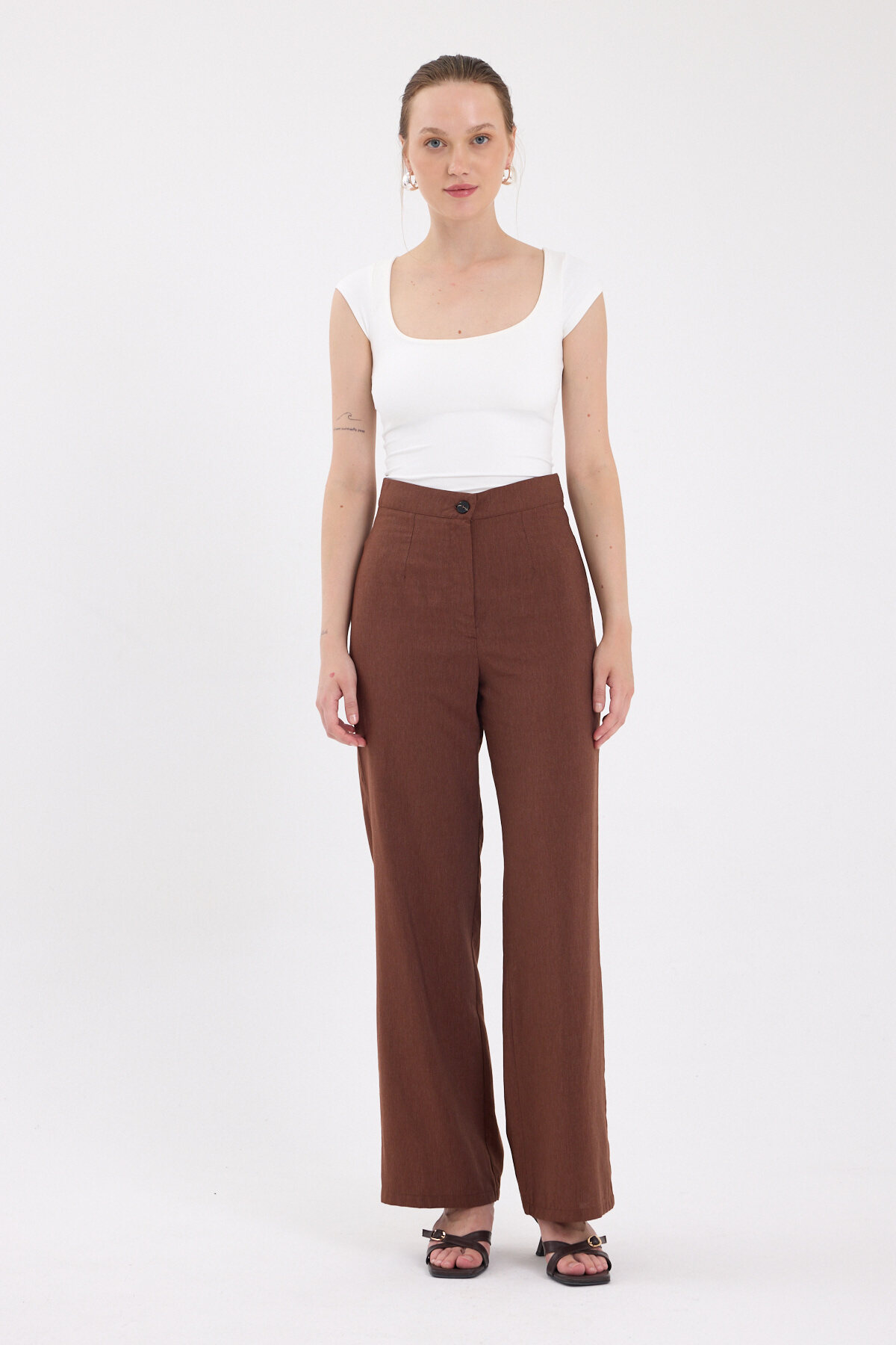 Kahve Yüksek Bel Palazzo Kadın Pantolon 8021A
