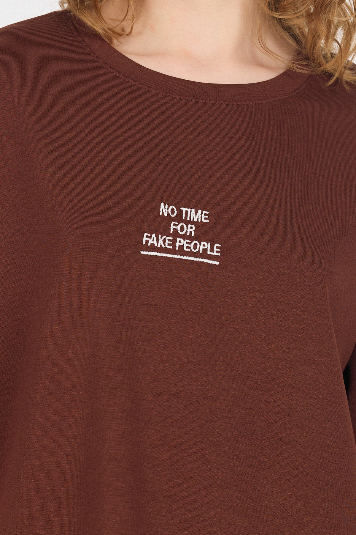 Kahve Yumuşak Dokulu Yazı Baskılı Oversize Tişört 6265