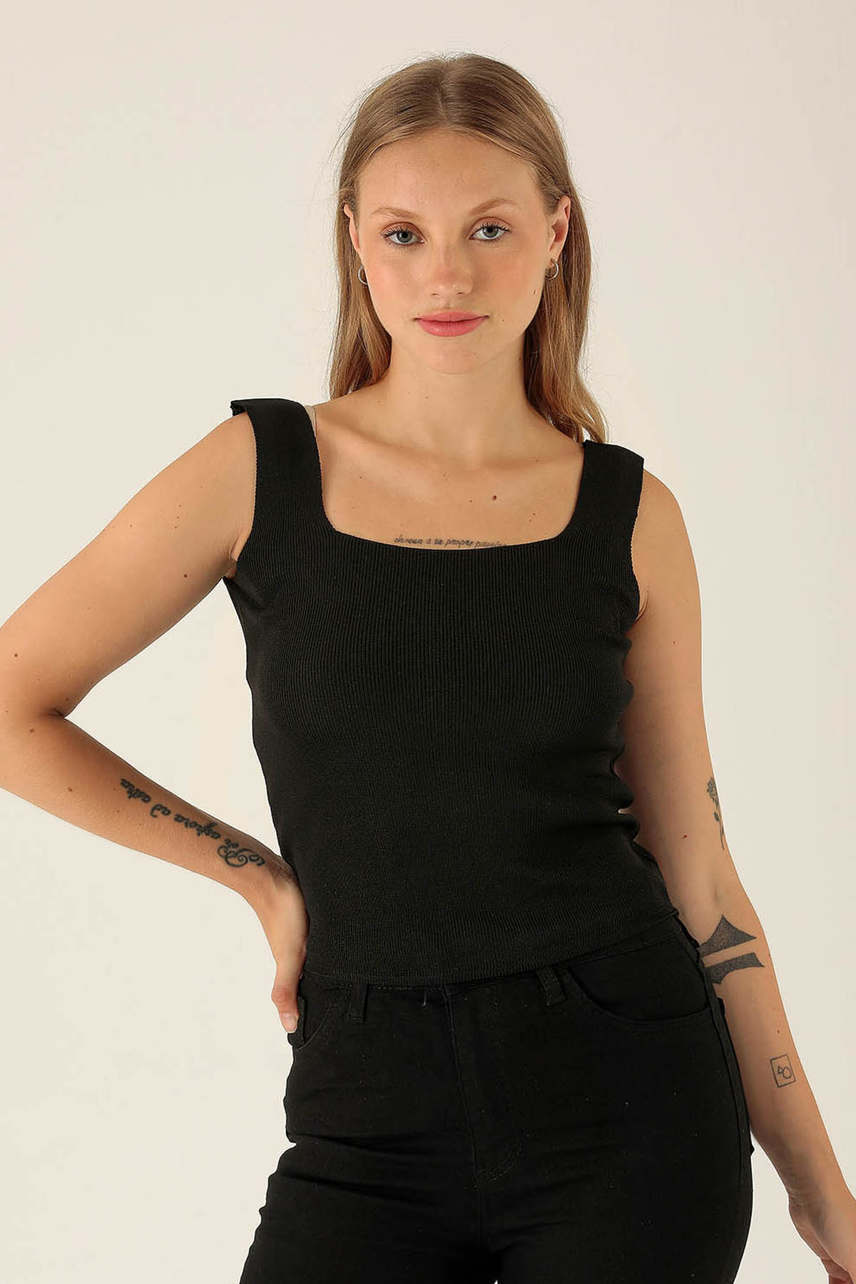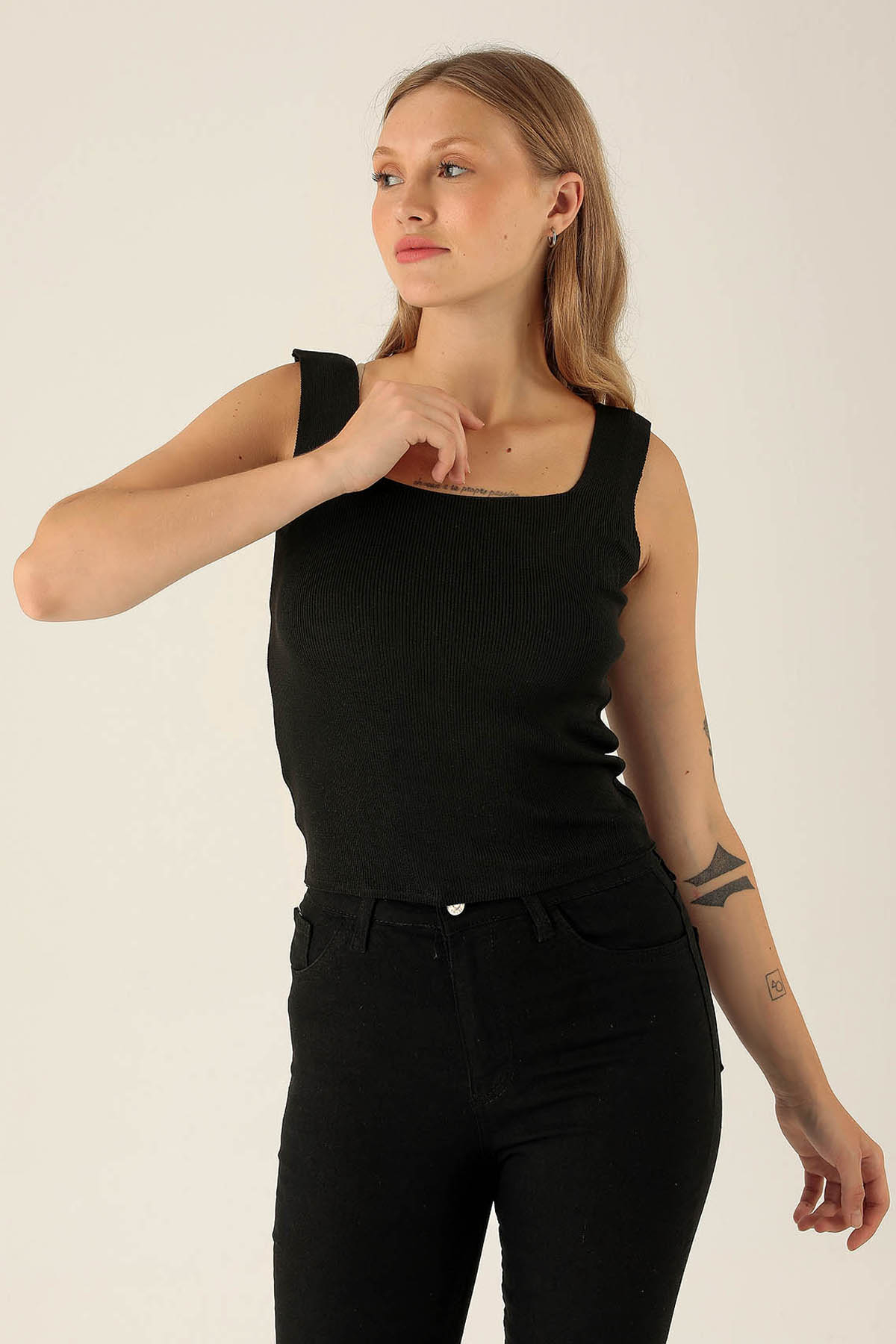 Siyah Kalın Askılı U Yaka Atlet 5068