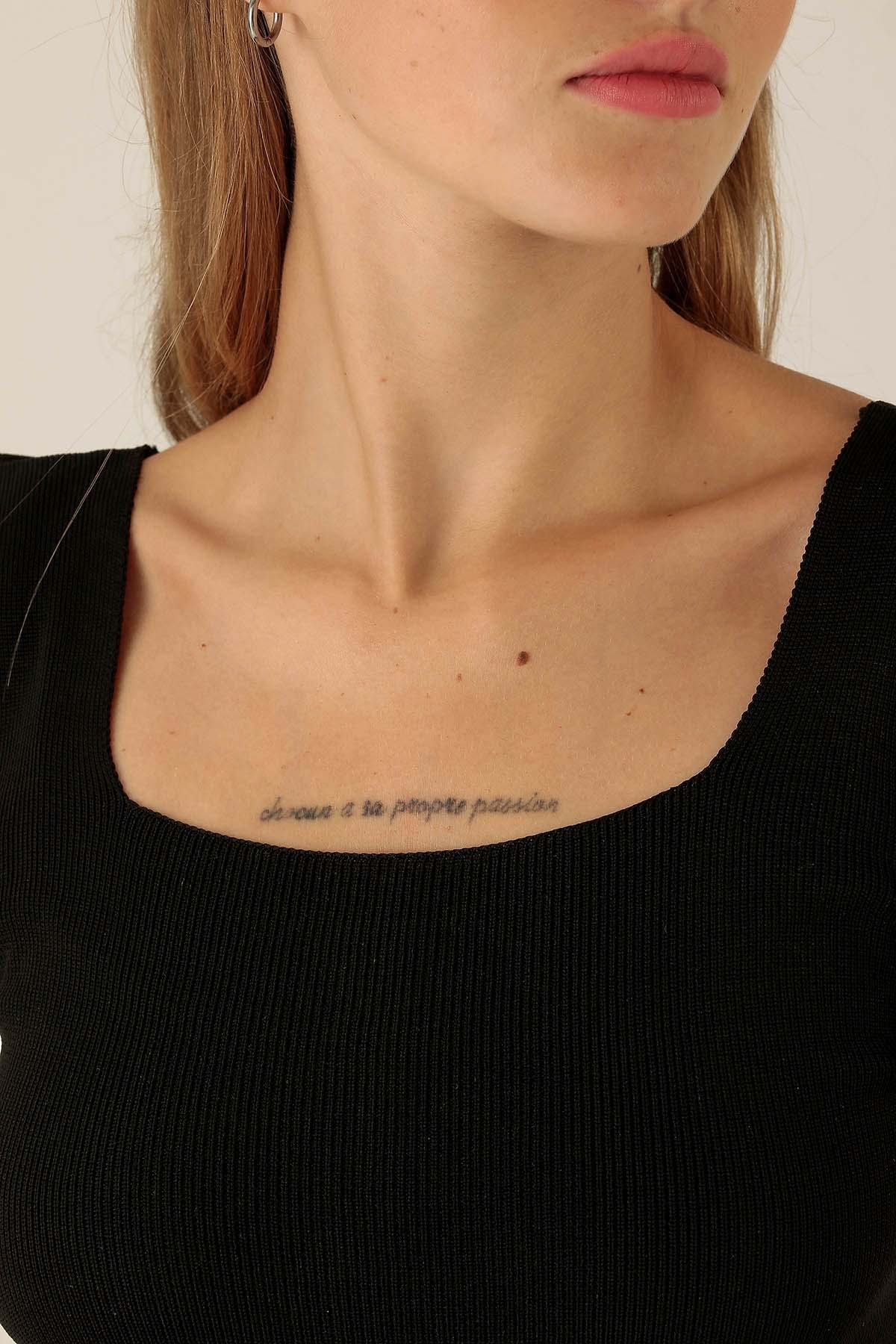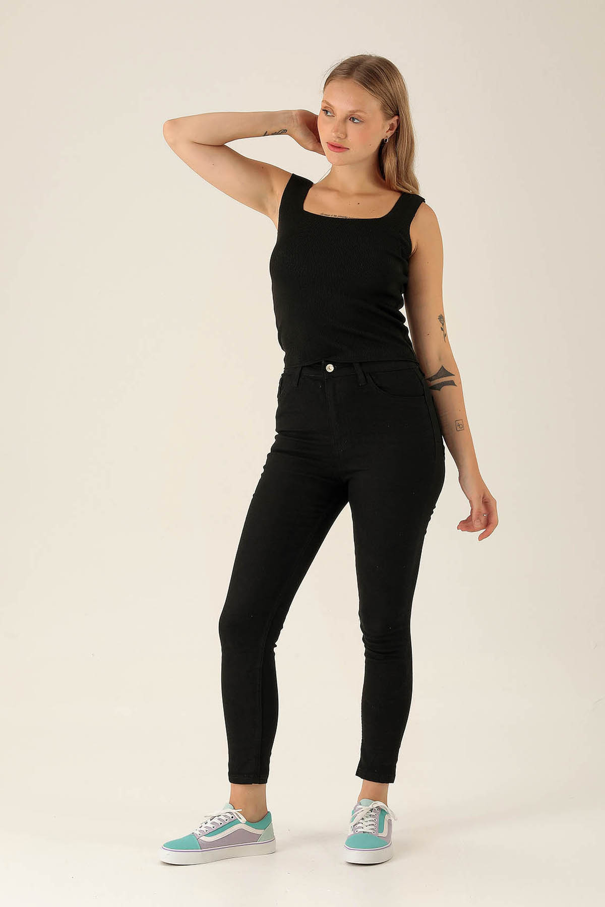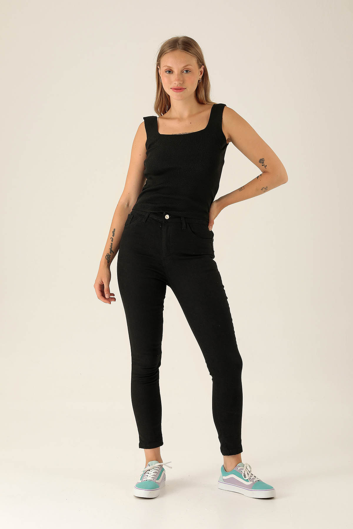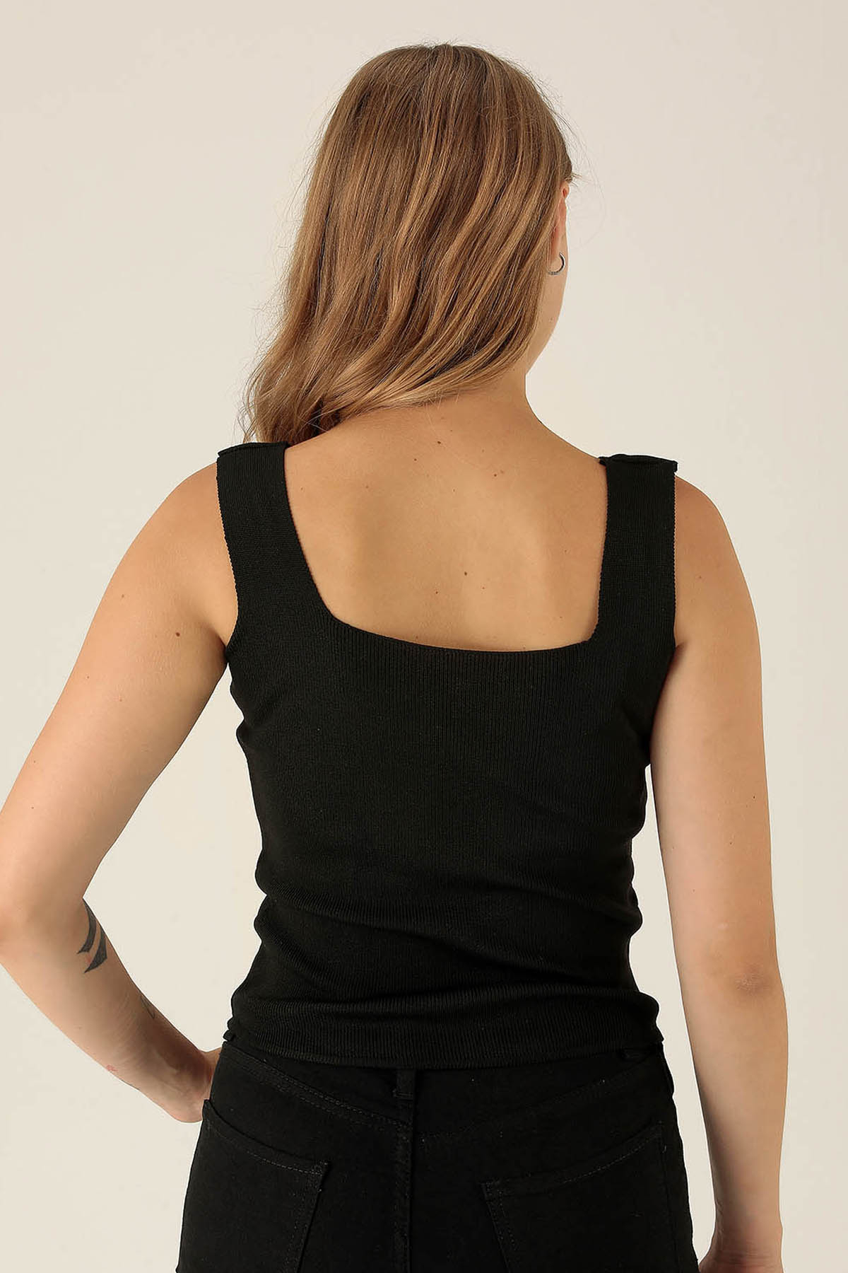 Siyah İnci Taş Detaylı Halter Yaka Ribanalı Atlet 0649