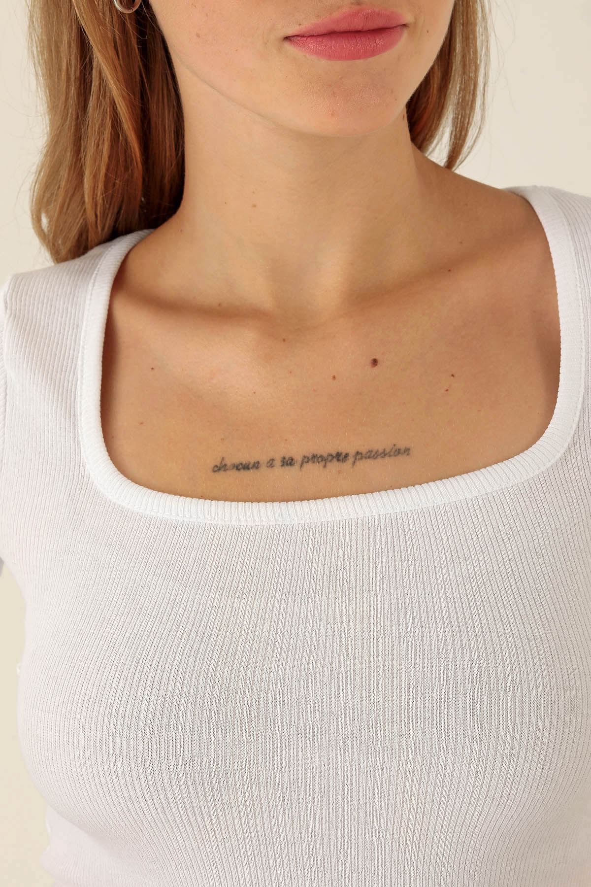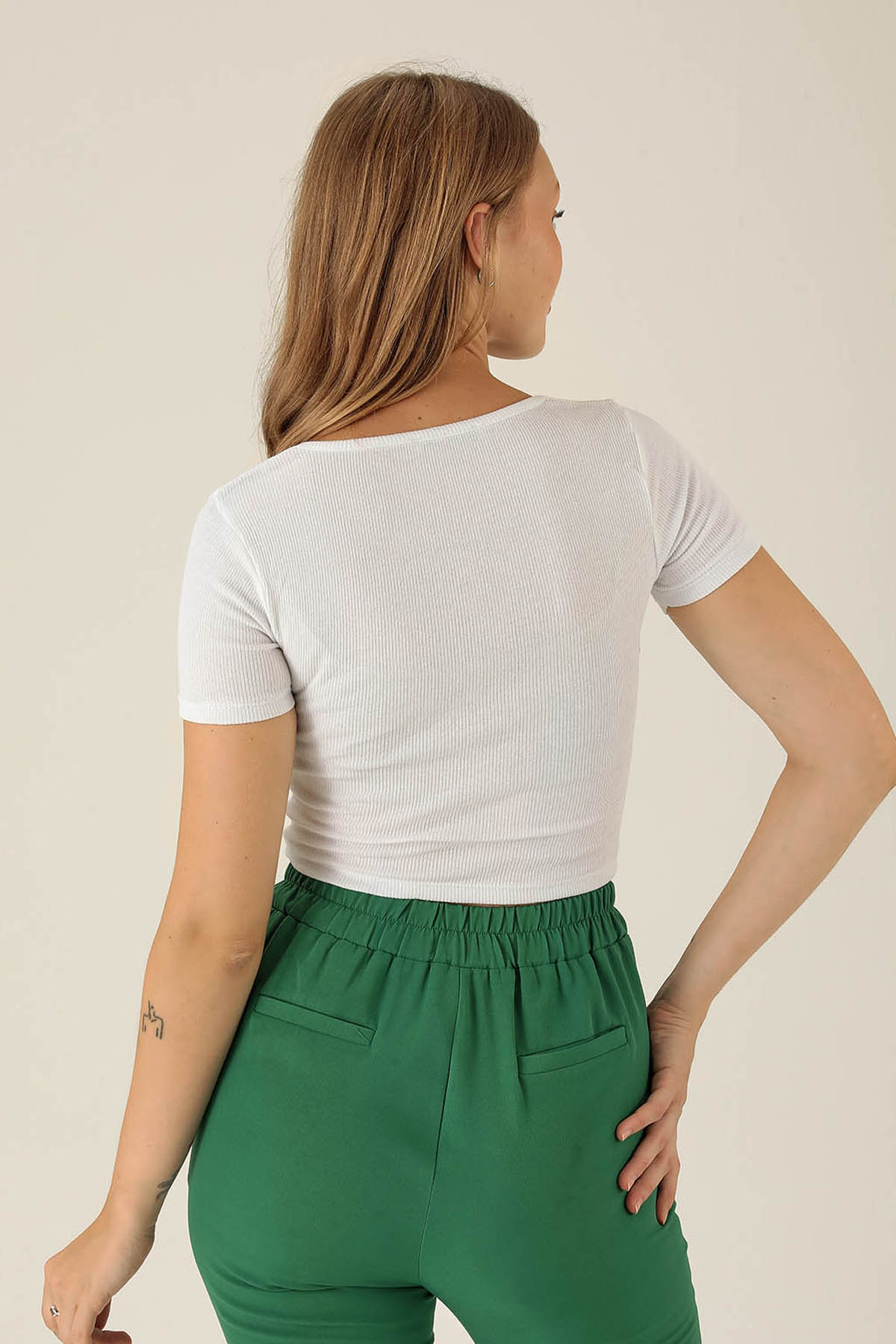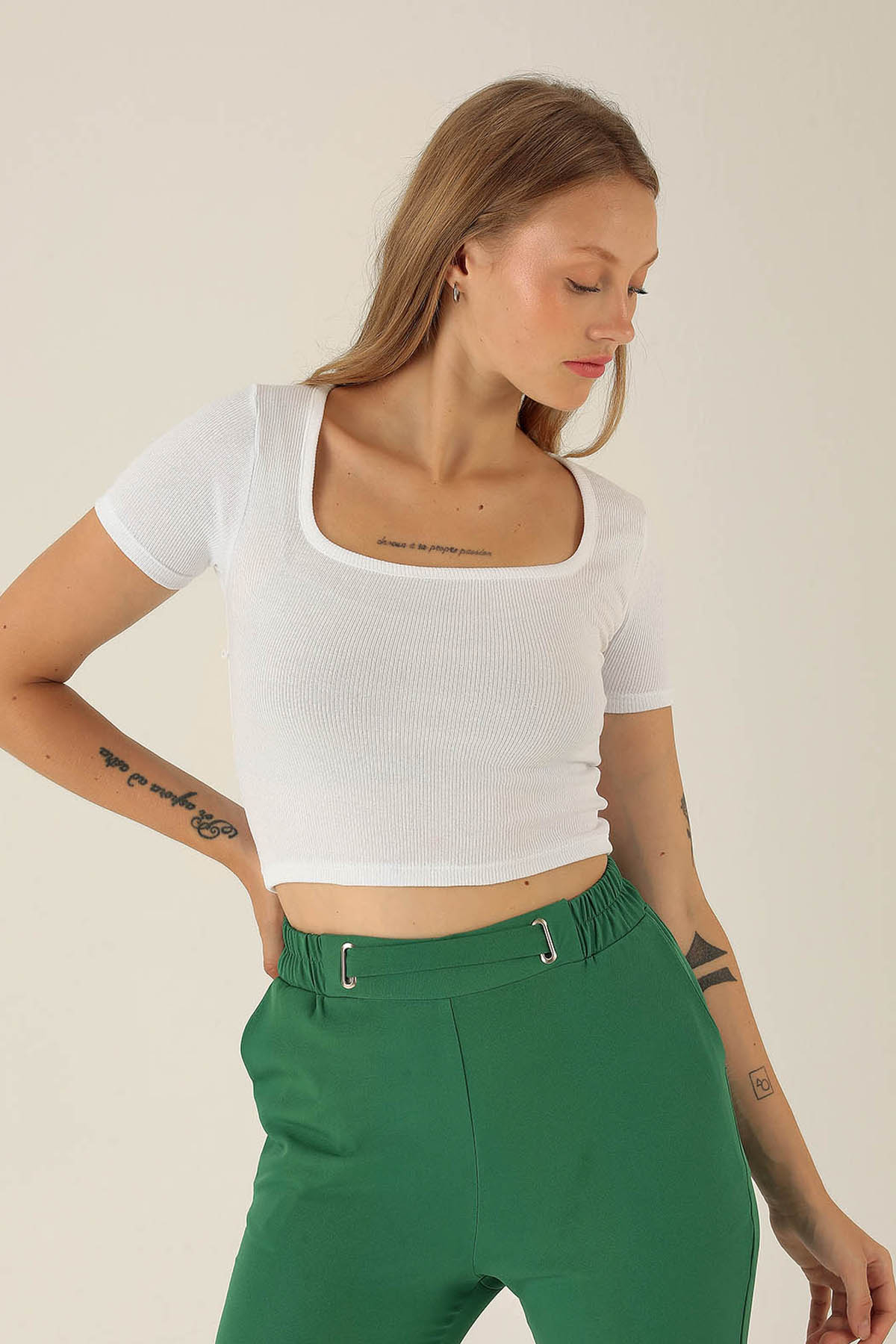 Kare Yaka Bayan Bluz - 1847-1 Beyaz