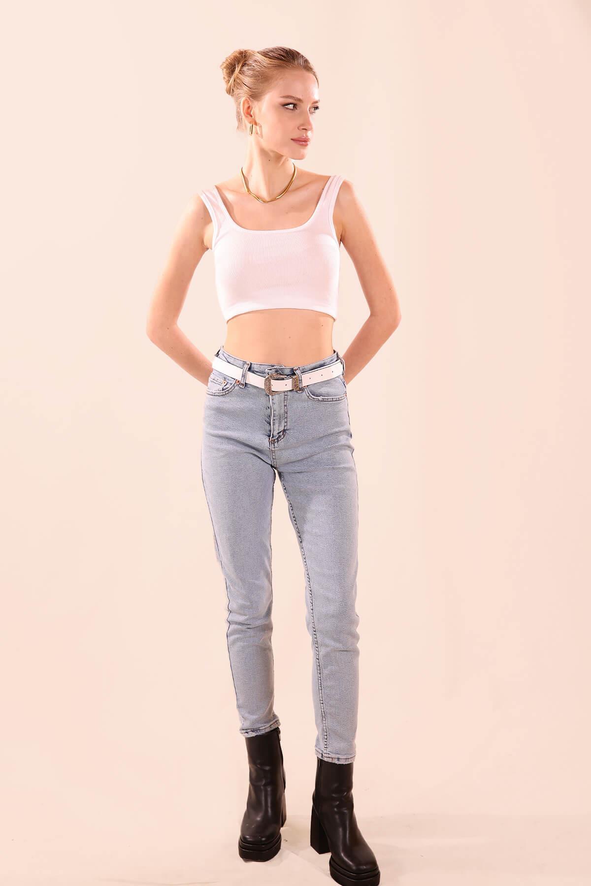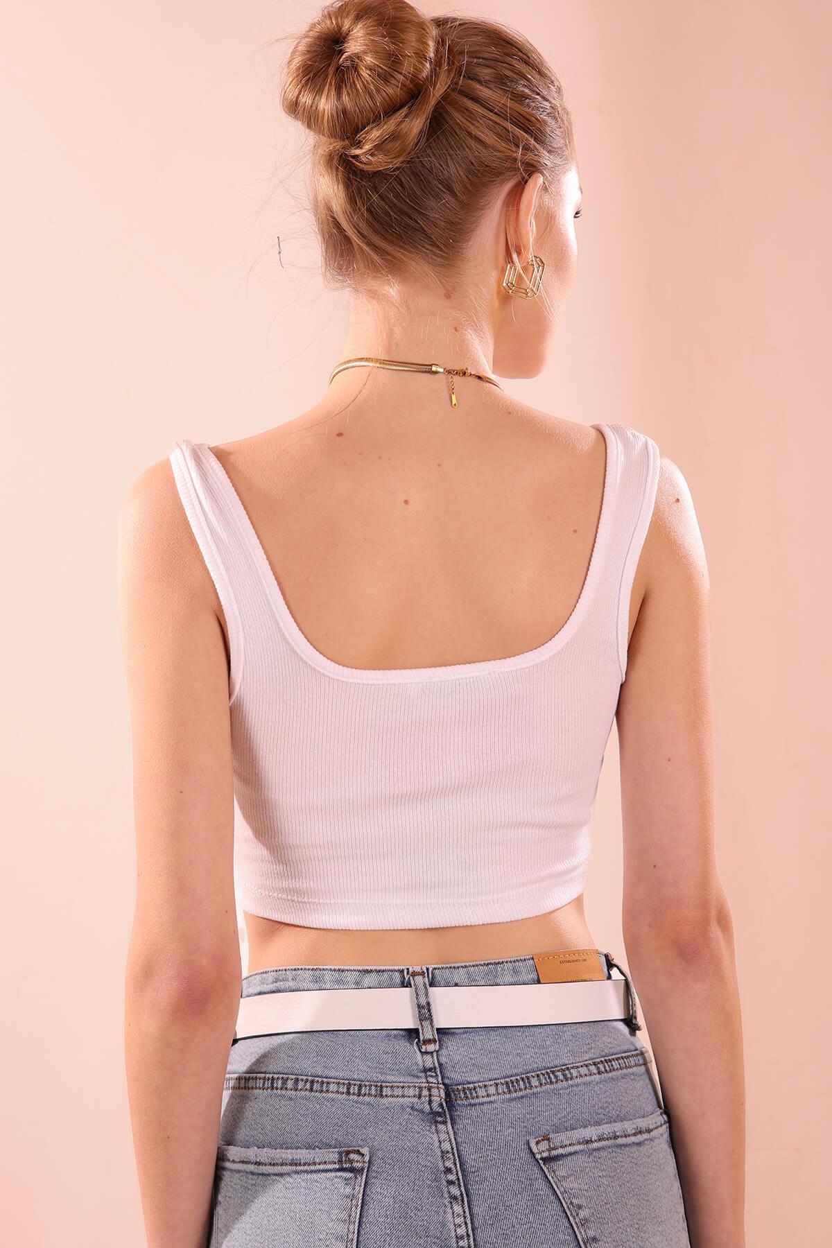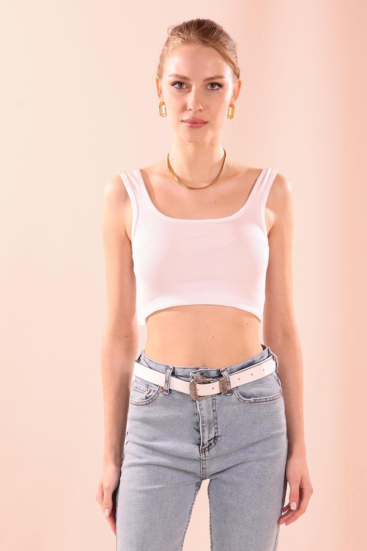 Kare Yaka Kısa Bayan Atlet - 1098 Beyaz