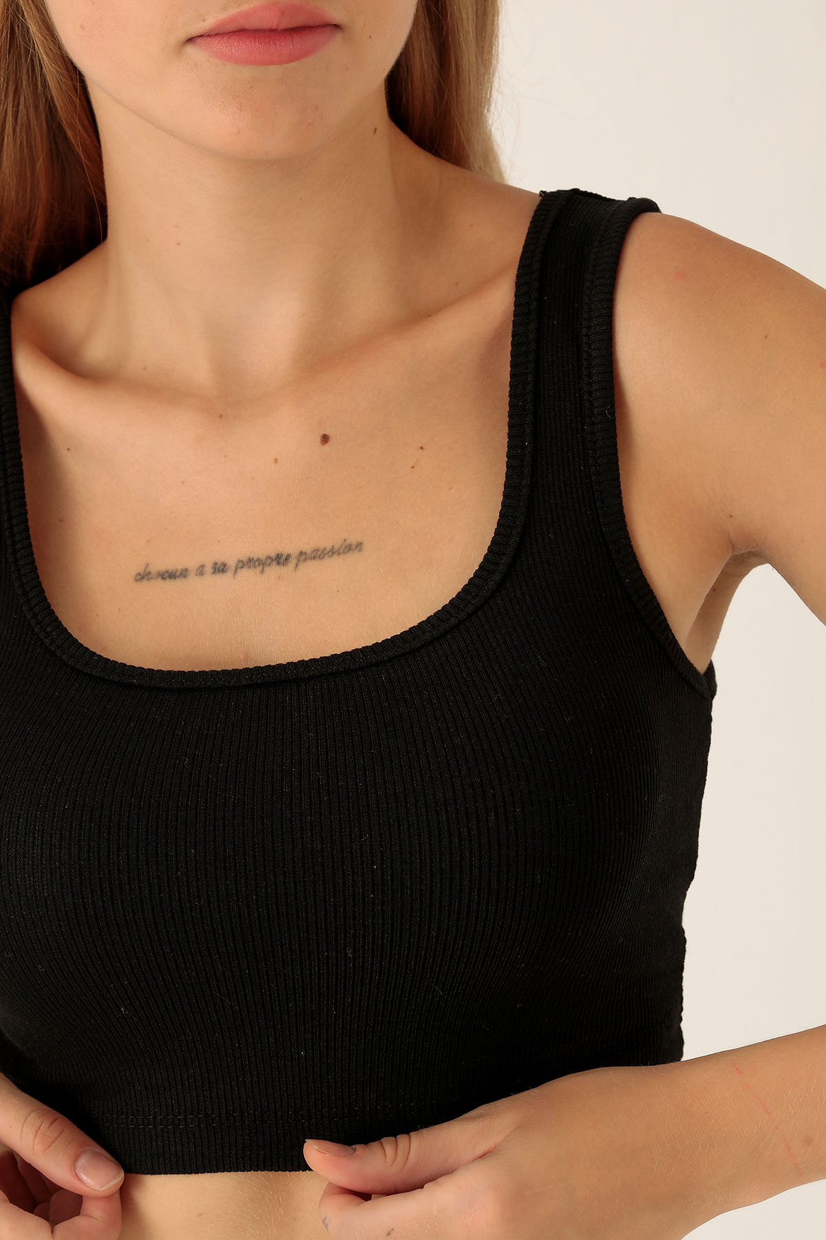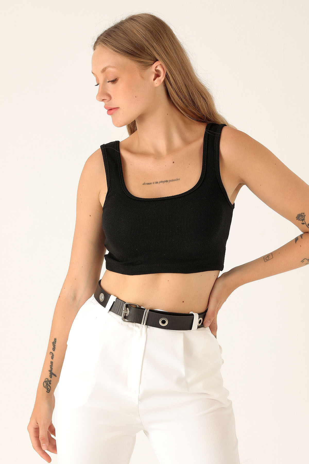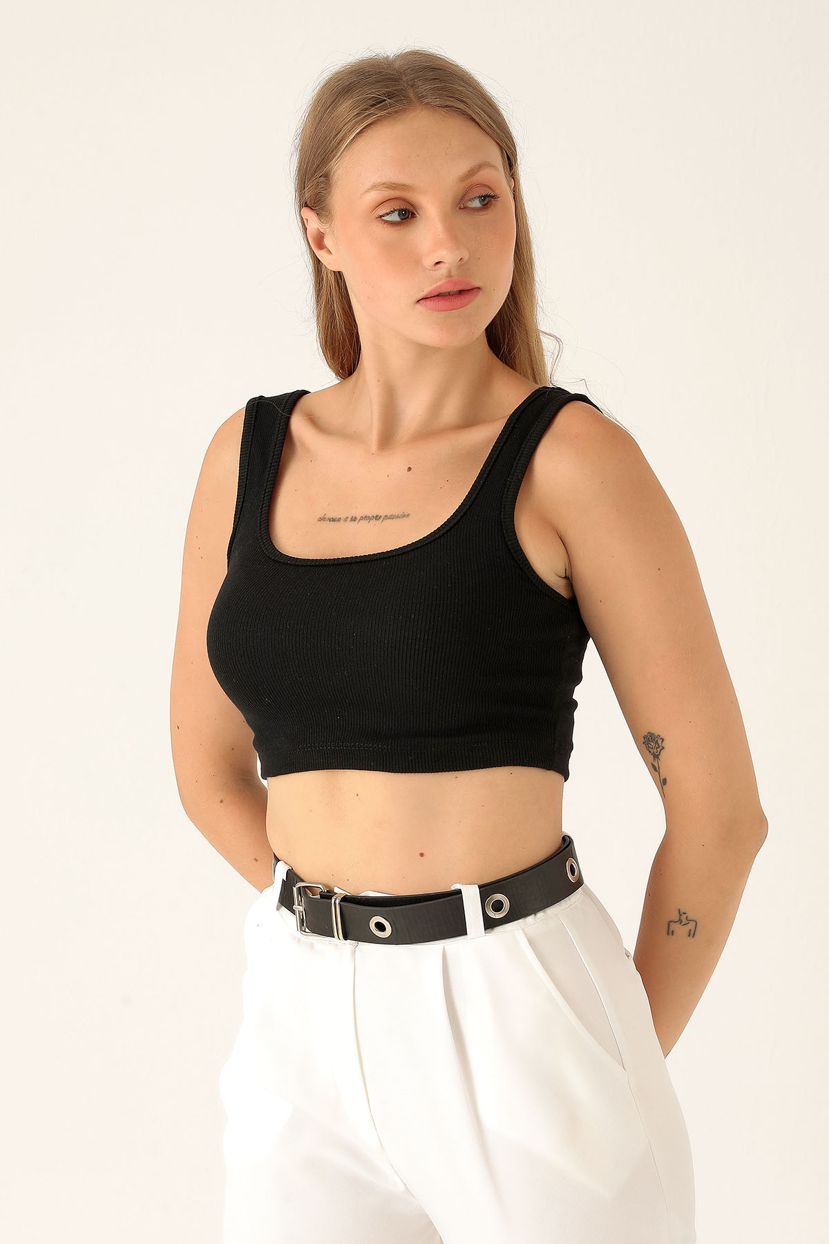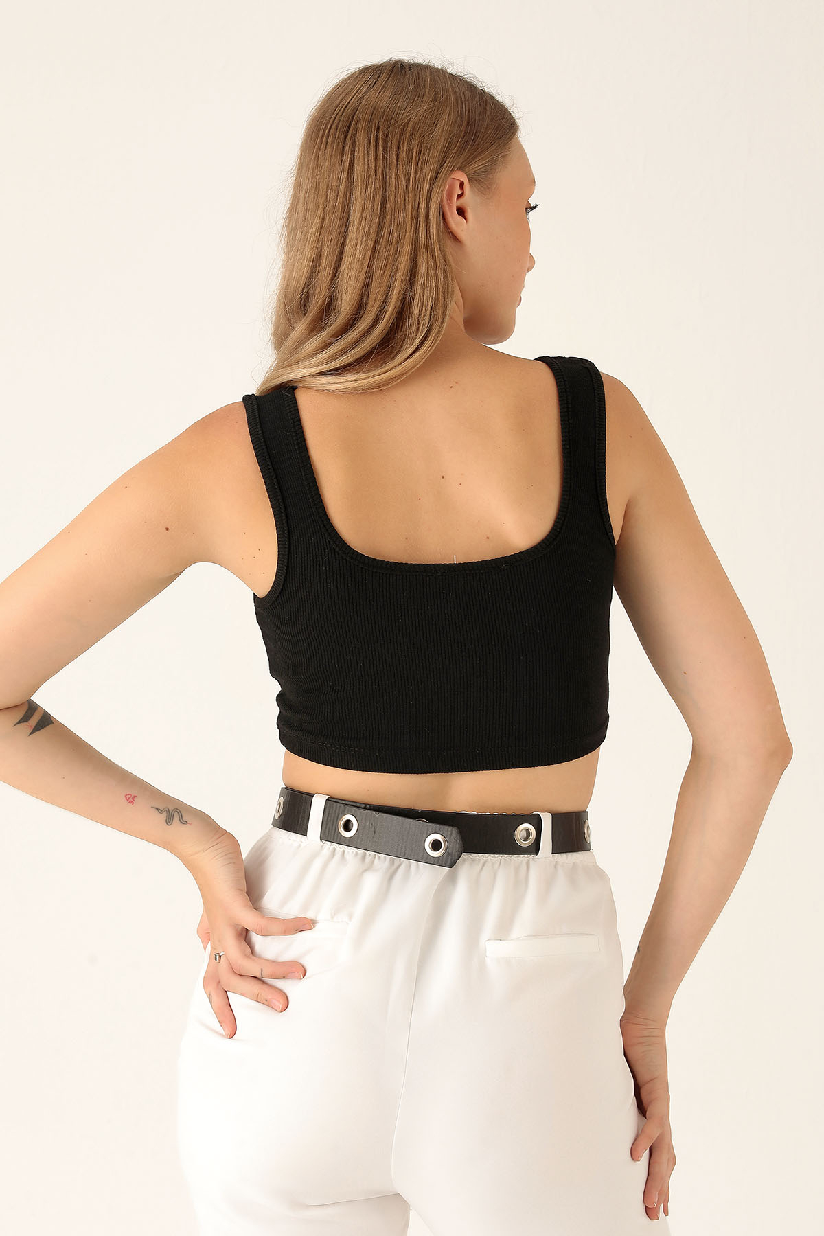 Kare Yaka Kısa Bayan Atlet - 1098 Siyah