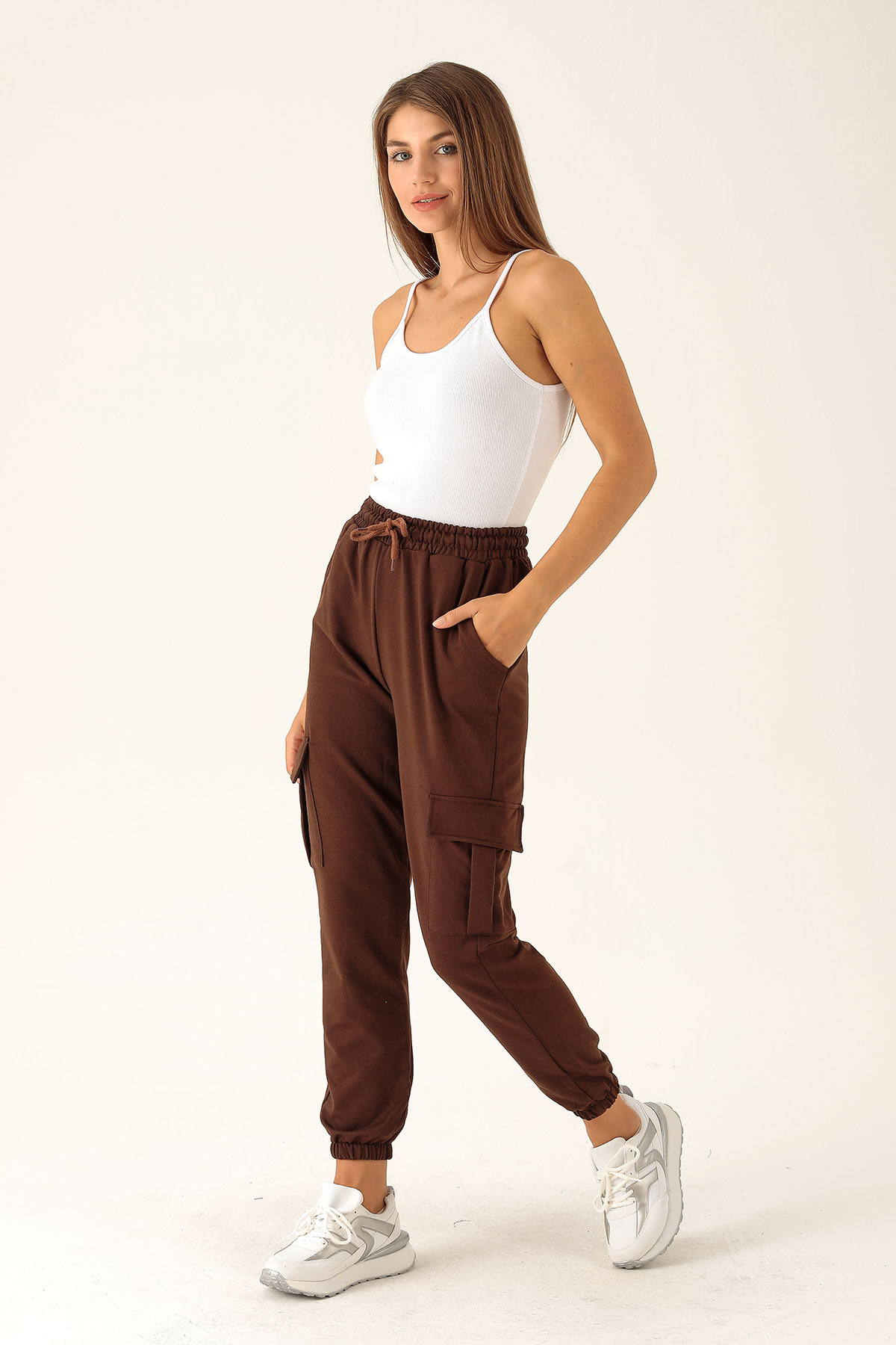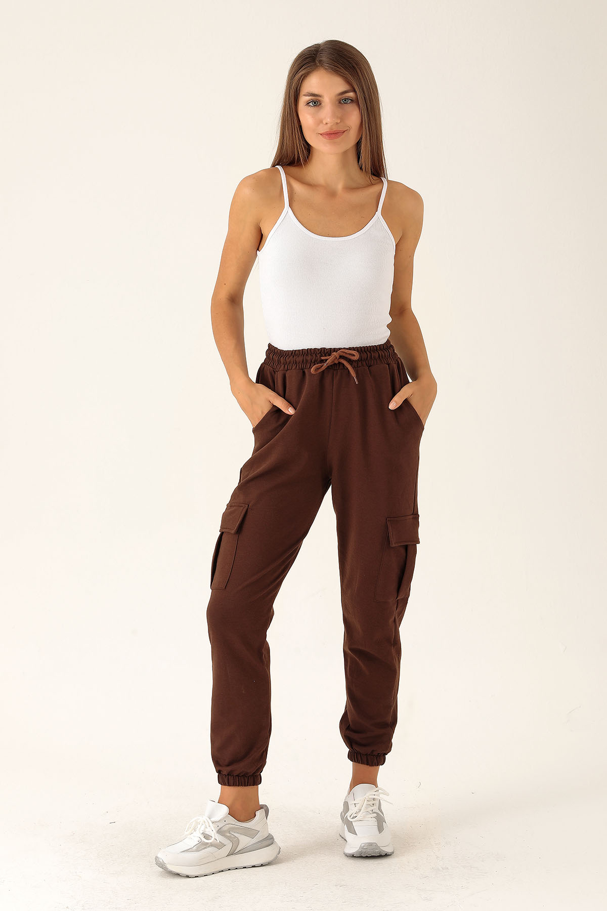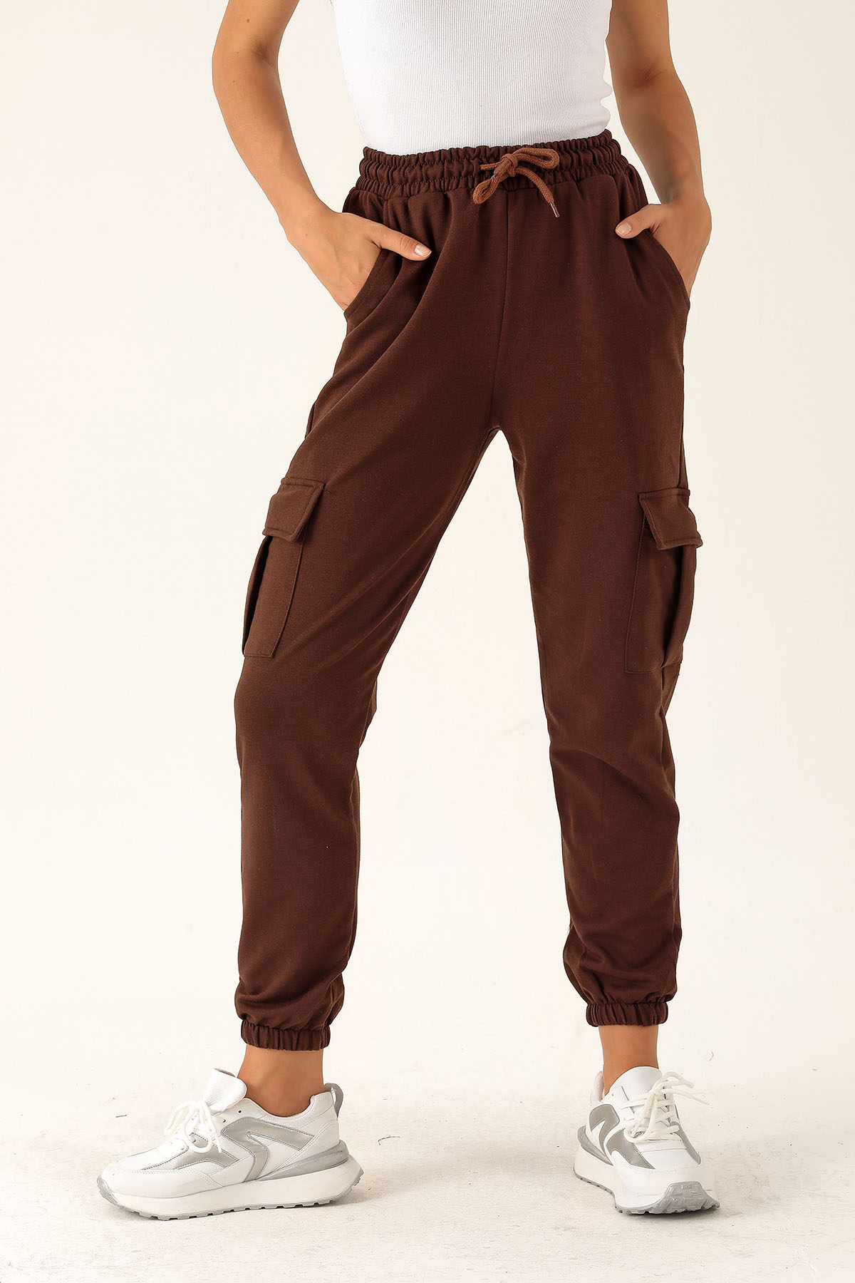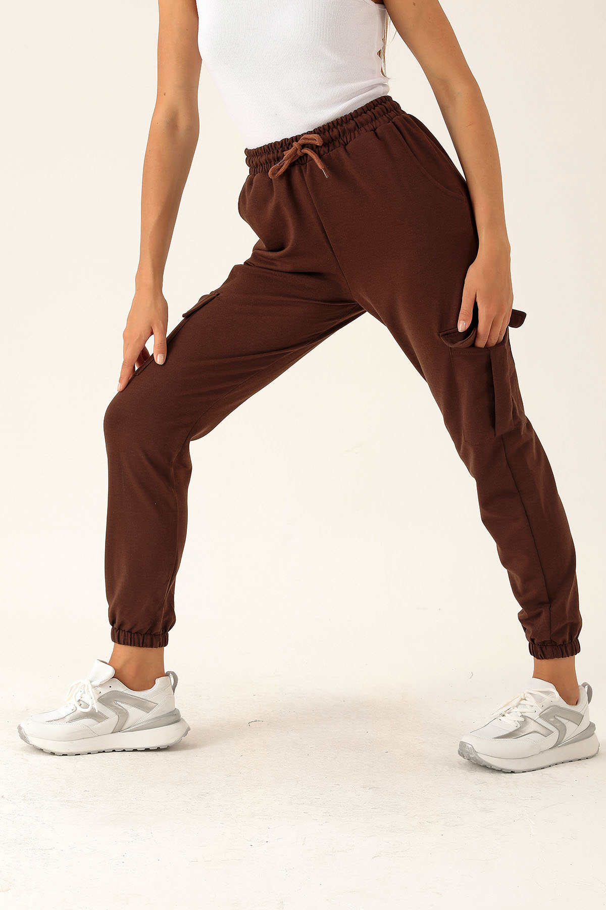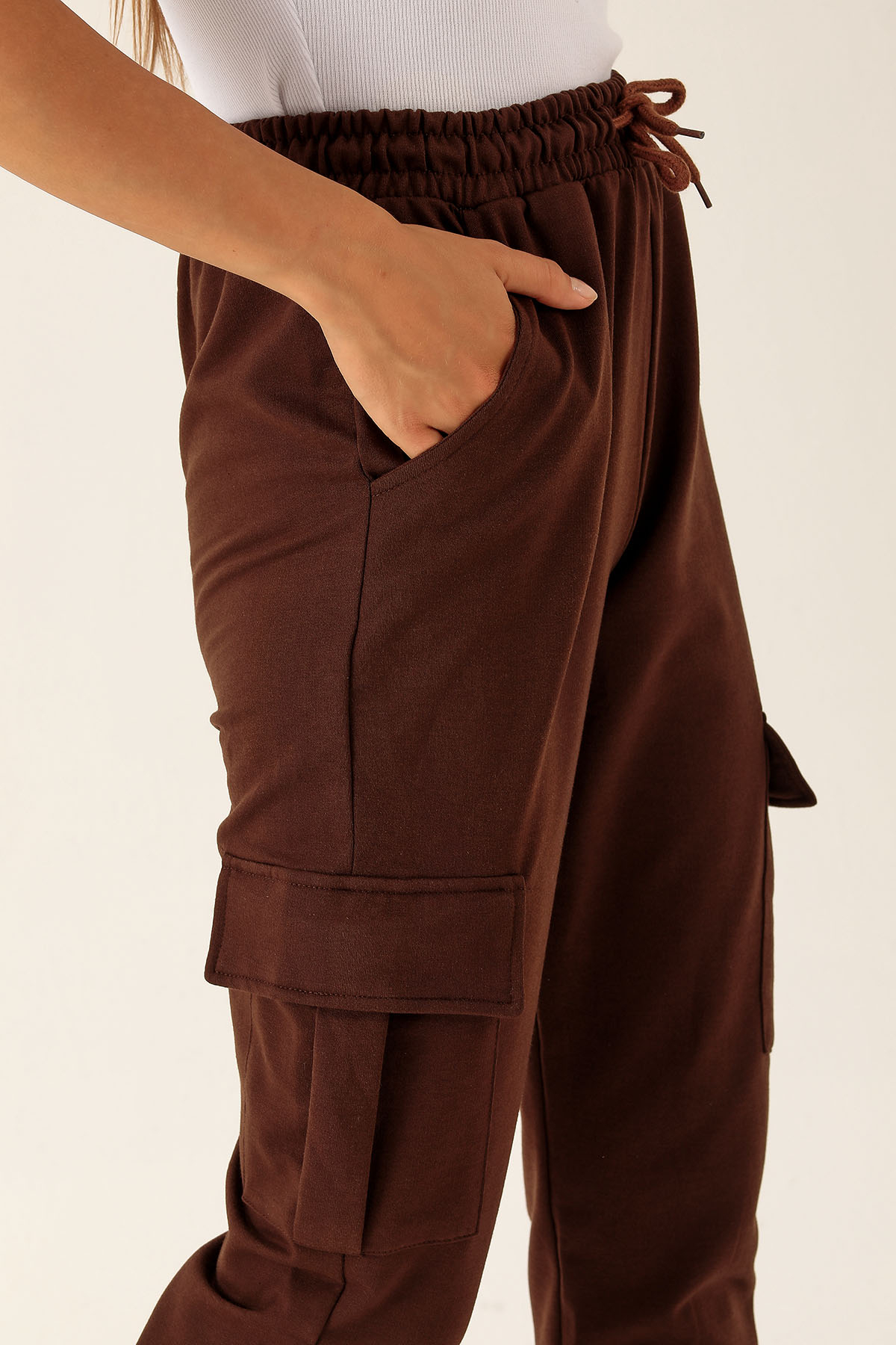 Kargo Cep Paça Lastik Bayan Eşofman - 23196 Acı Kahve