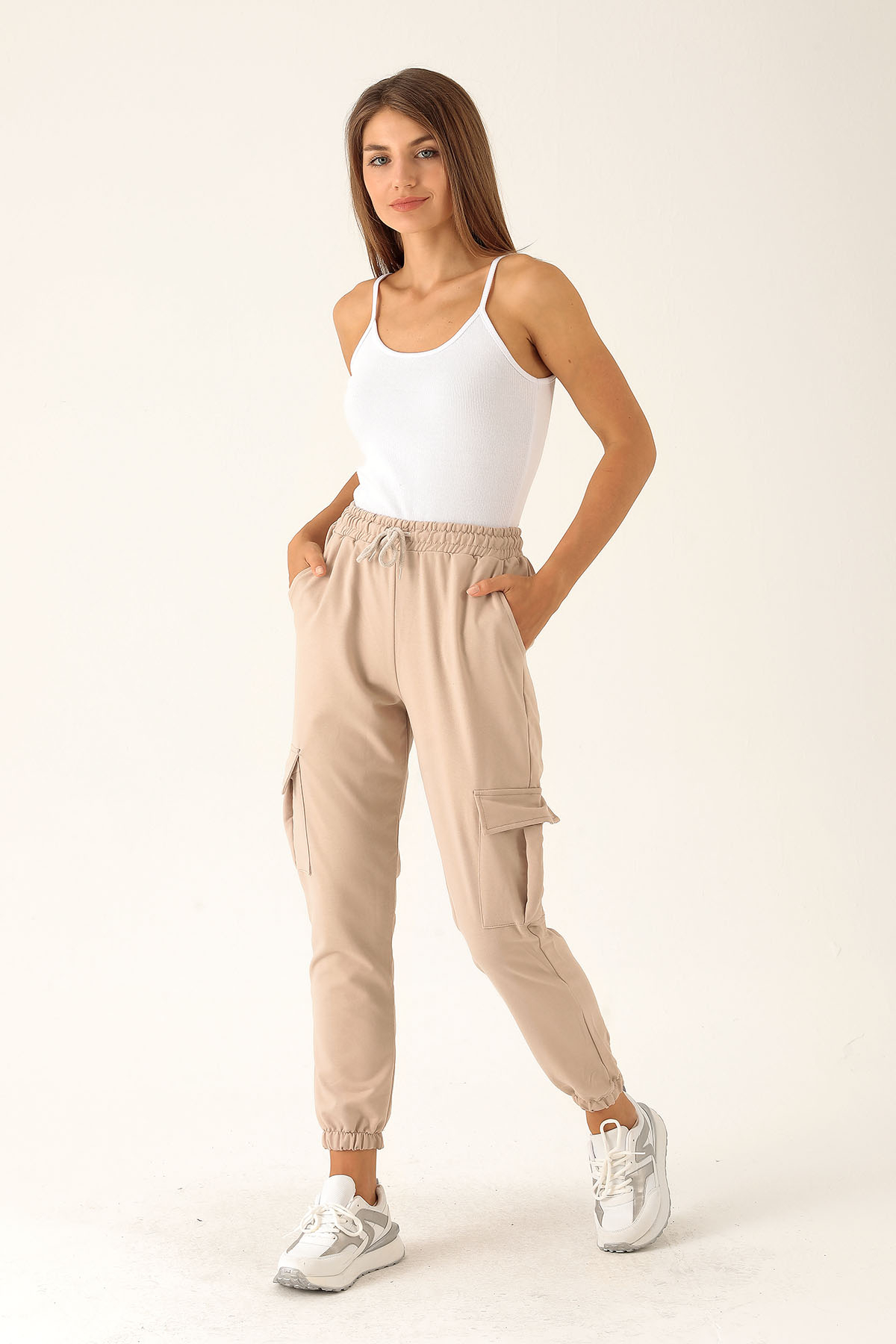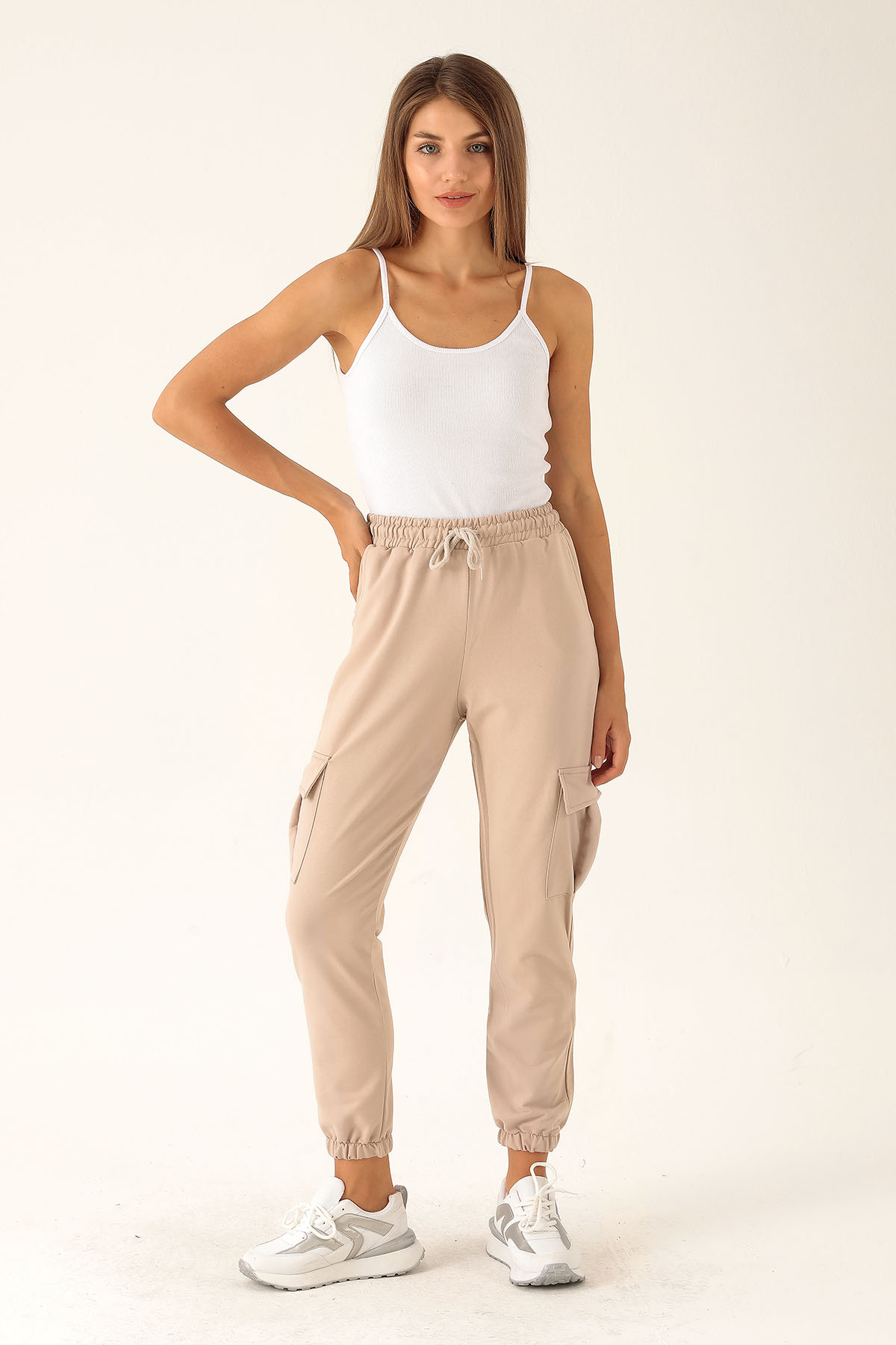 Kargo Cep Paça Lastik Bayan Eşofman - 23196 Taş