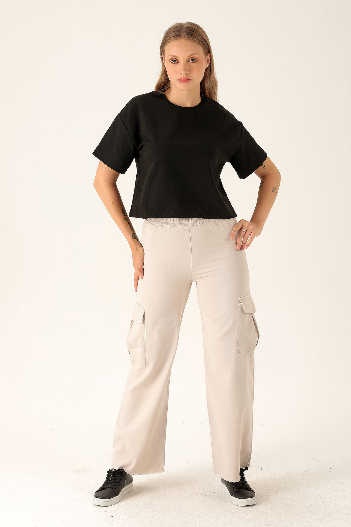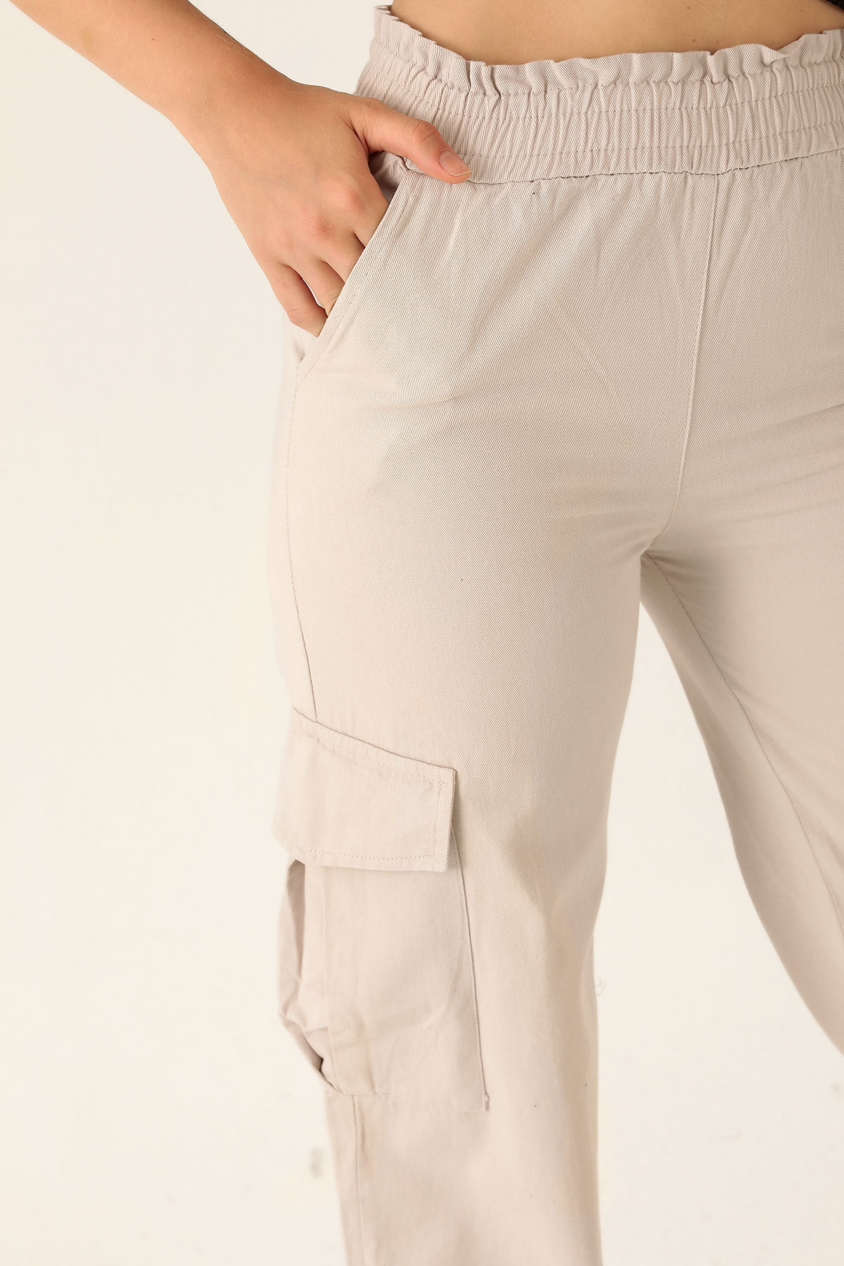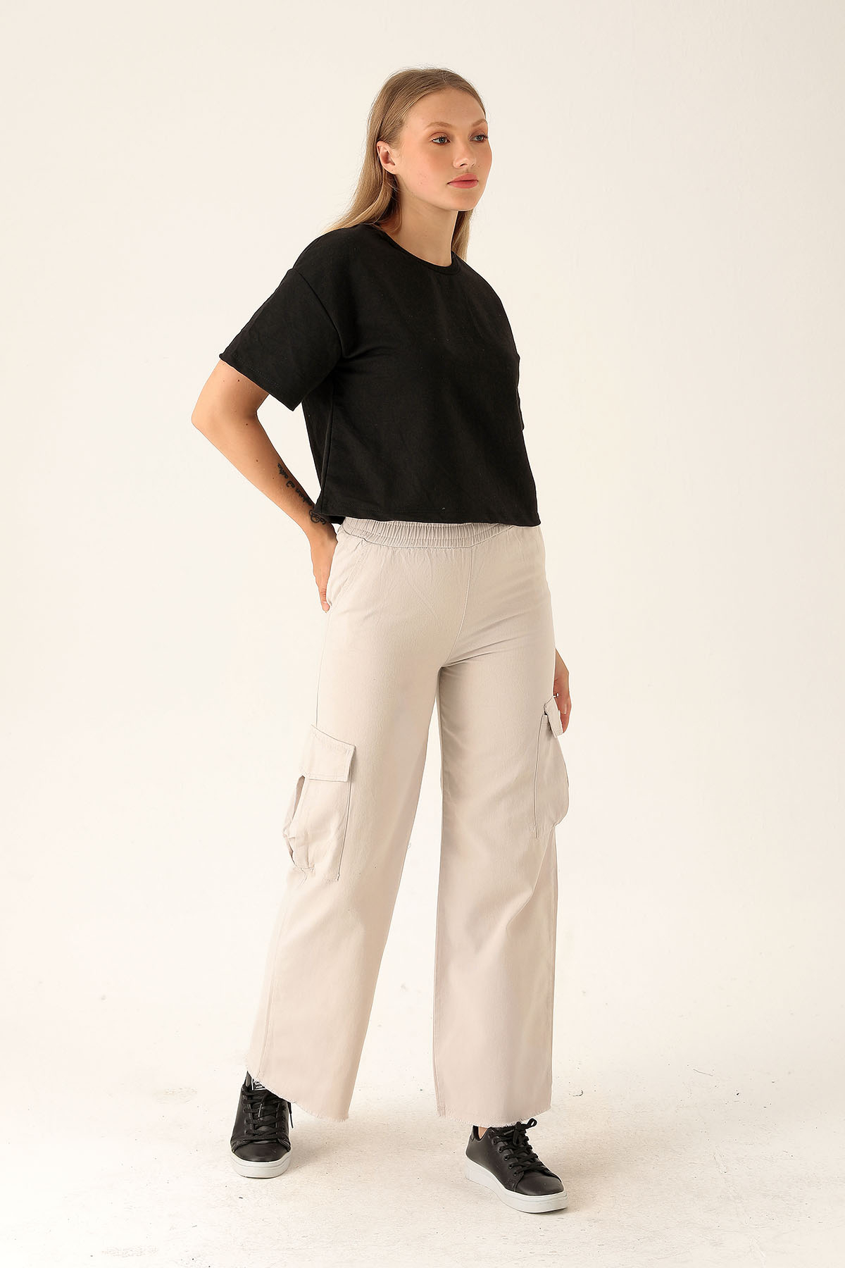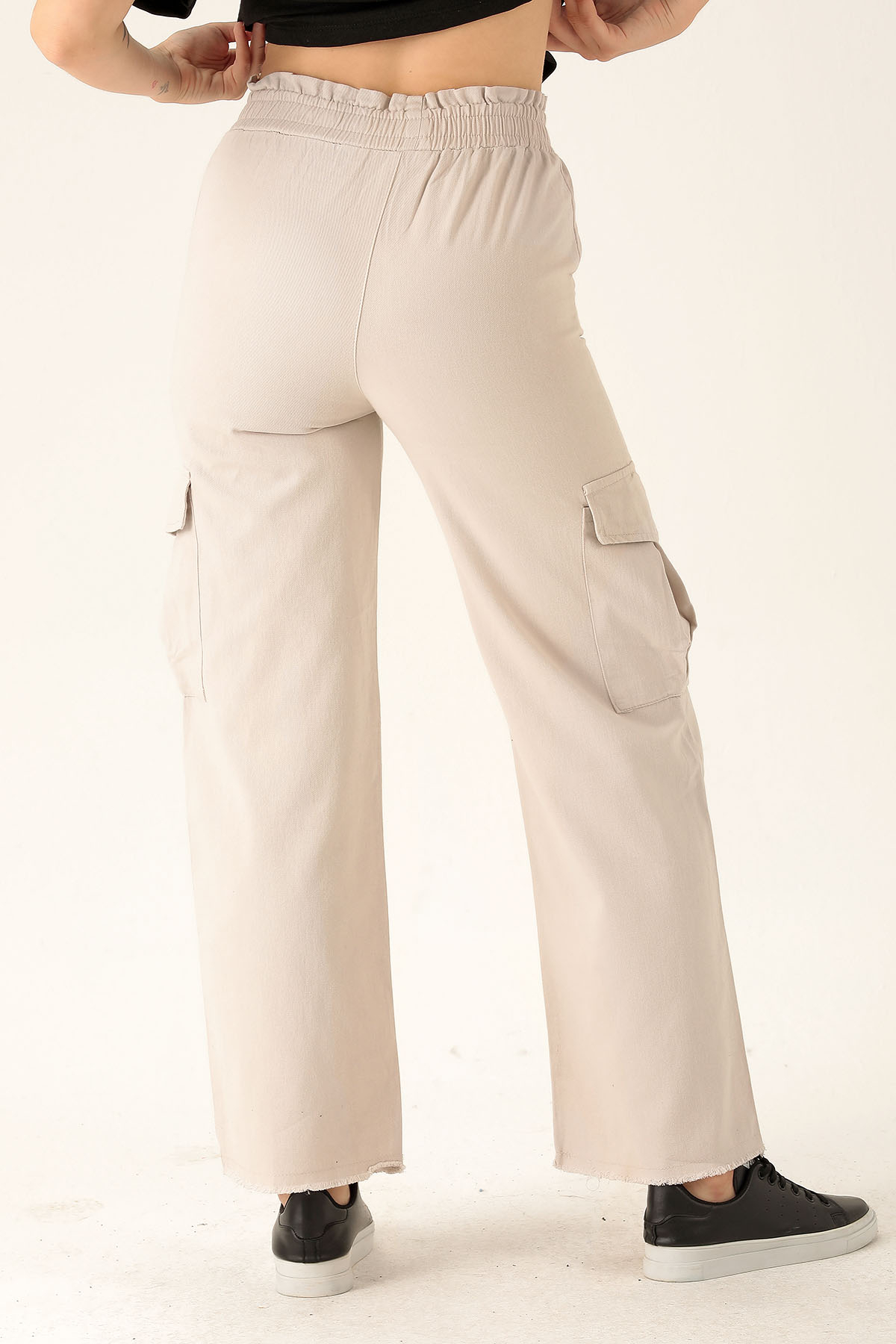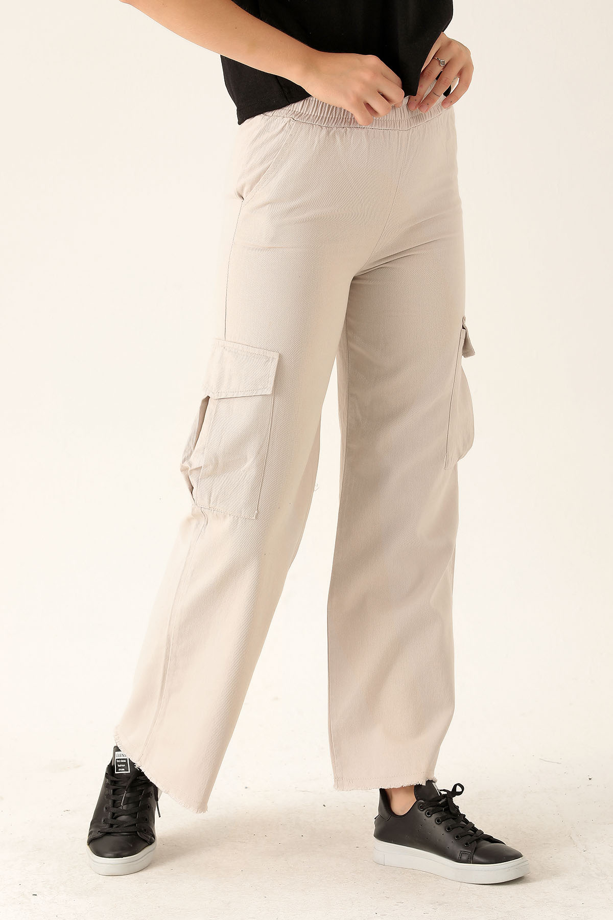 Kargo Cep Palazzo Bayan Pantolon - 3003 Taş