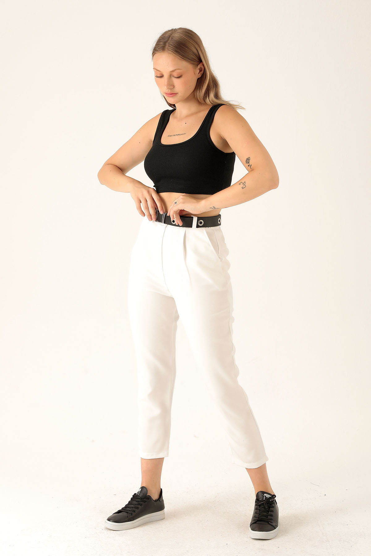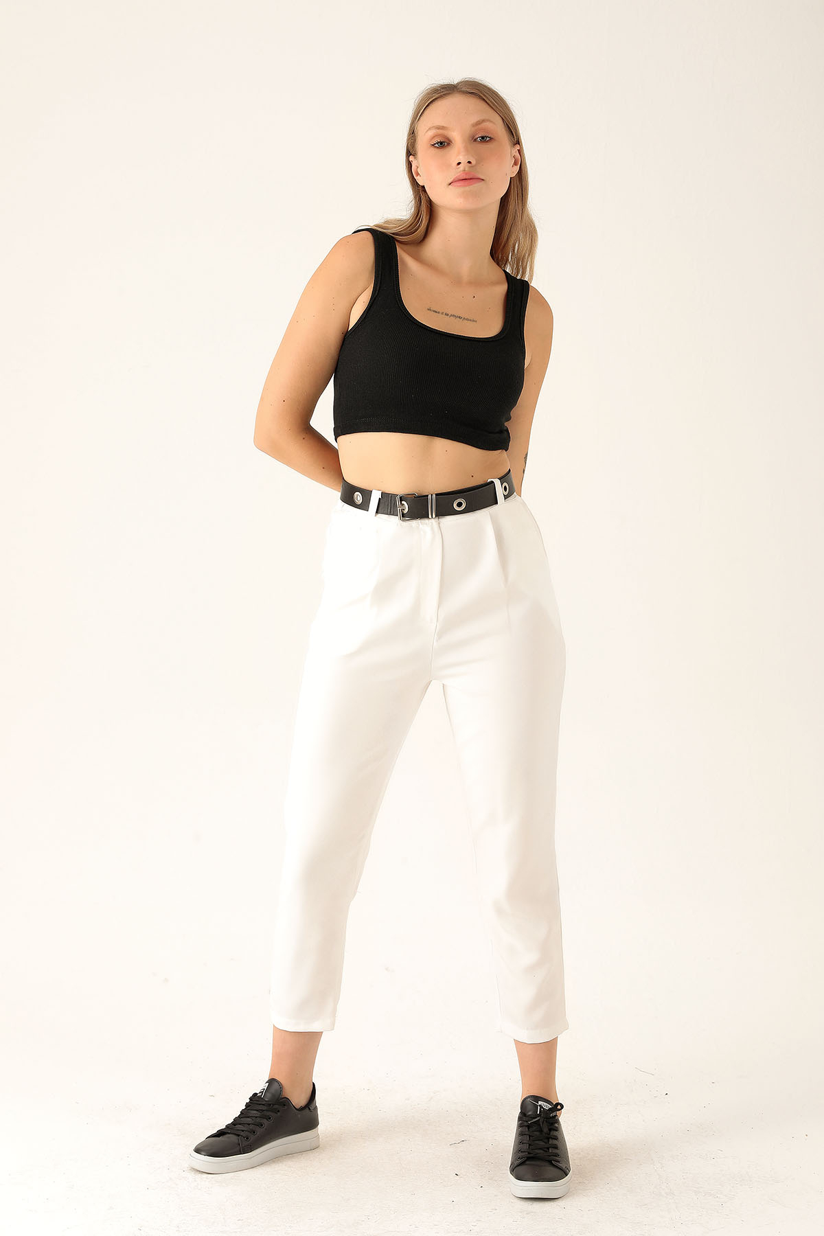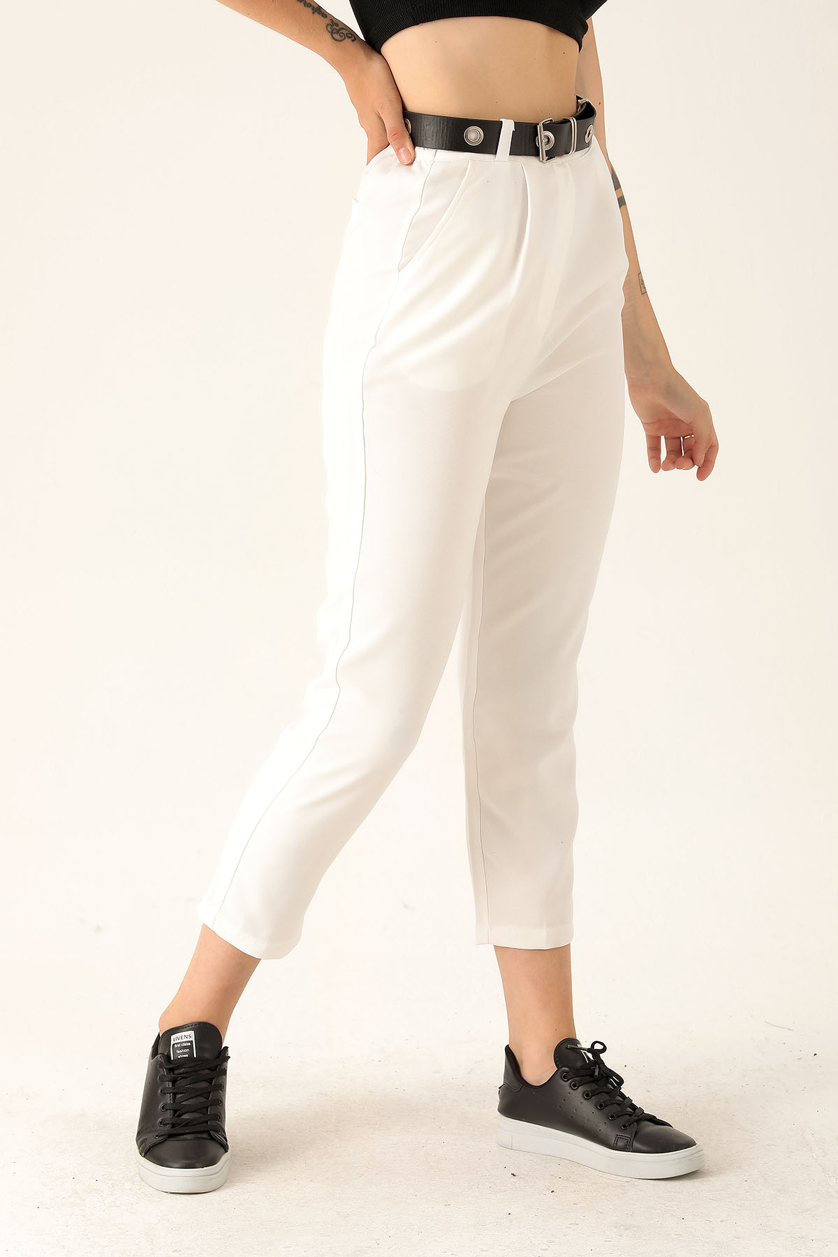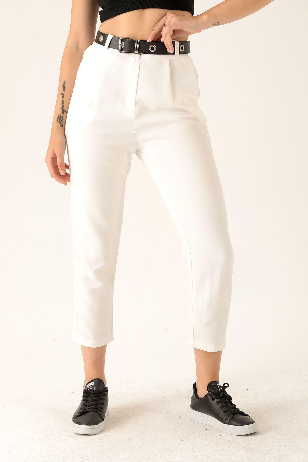 Kemer Detaylı Bayan Pantolon - 6262A Ekru