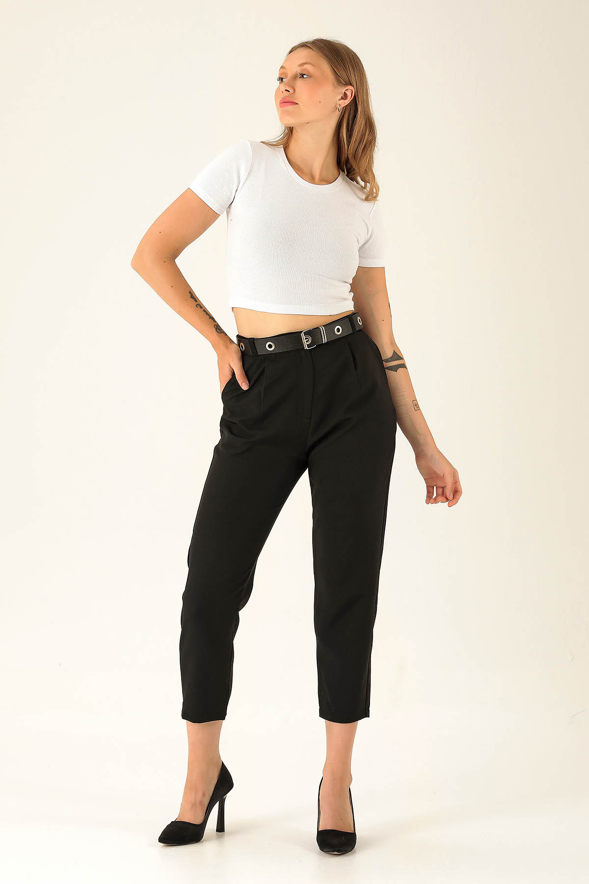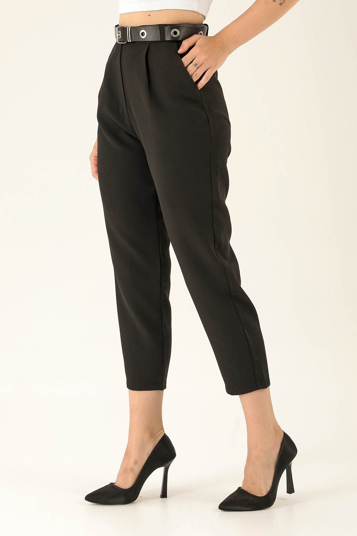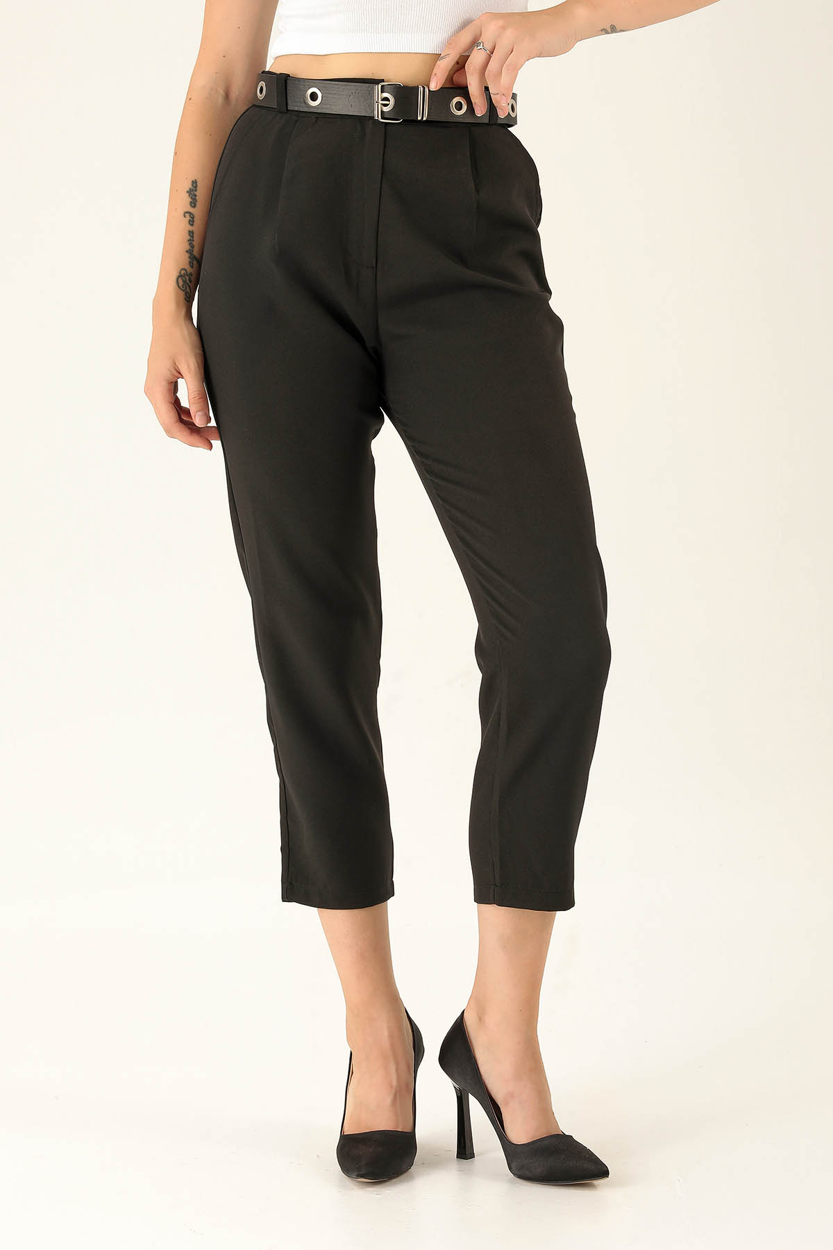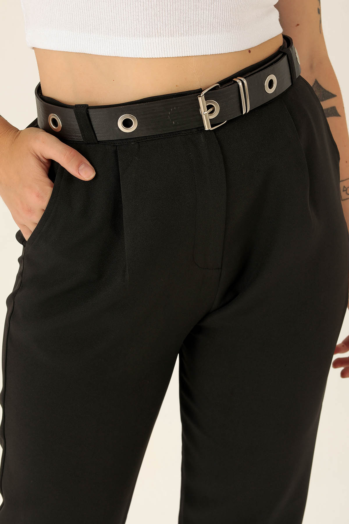 Kemer Detaylı Bayan Pantolon - 6262A Siyah
