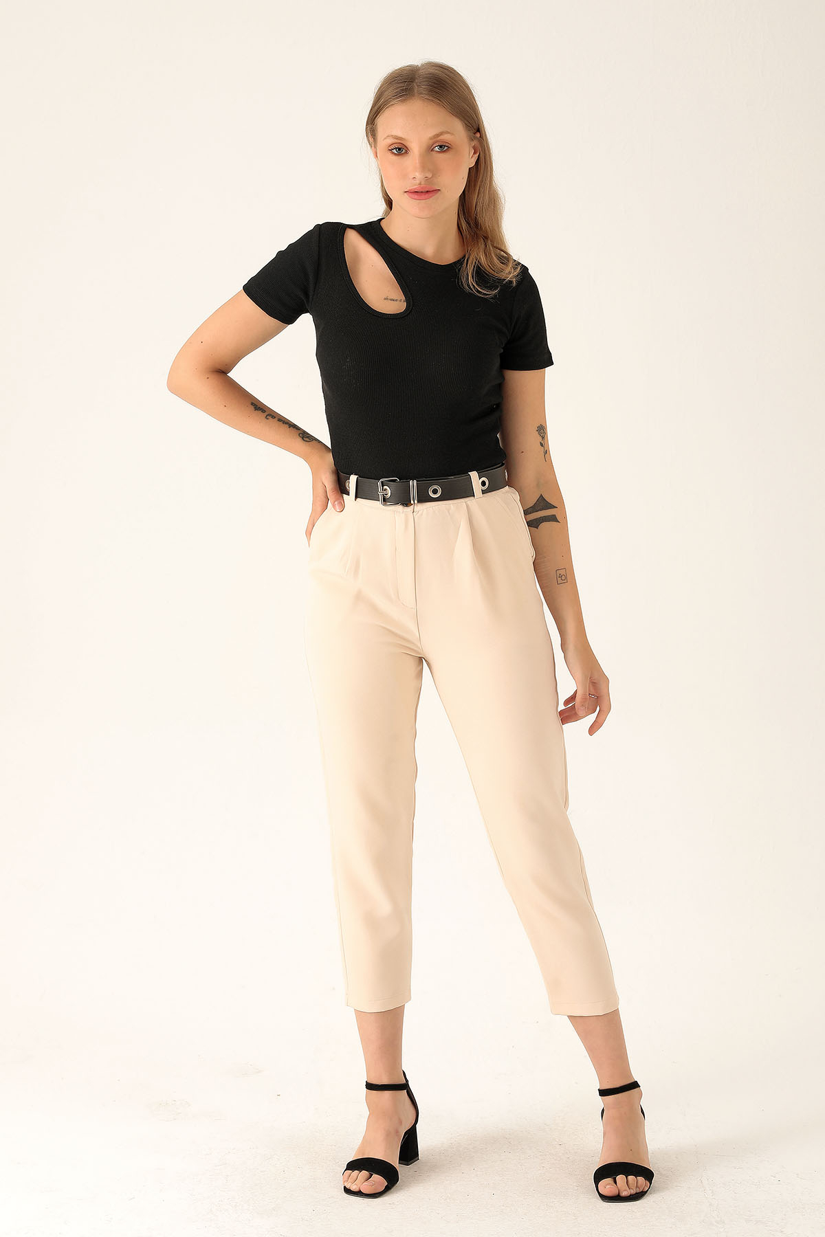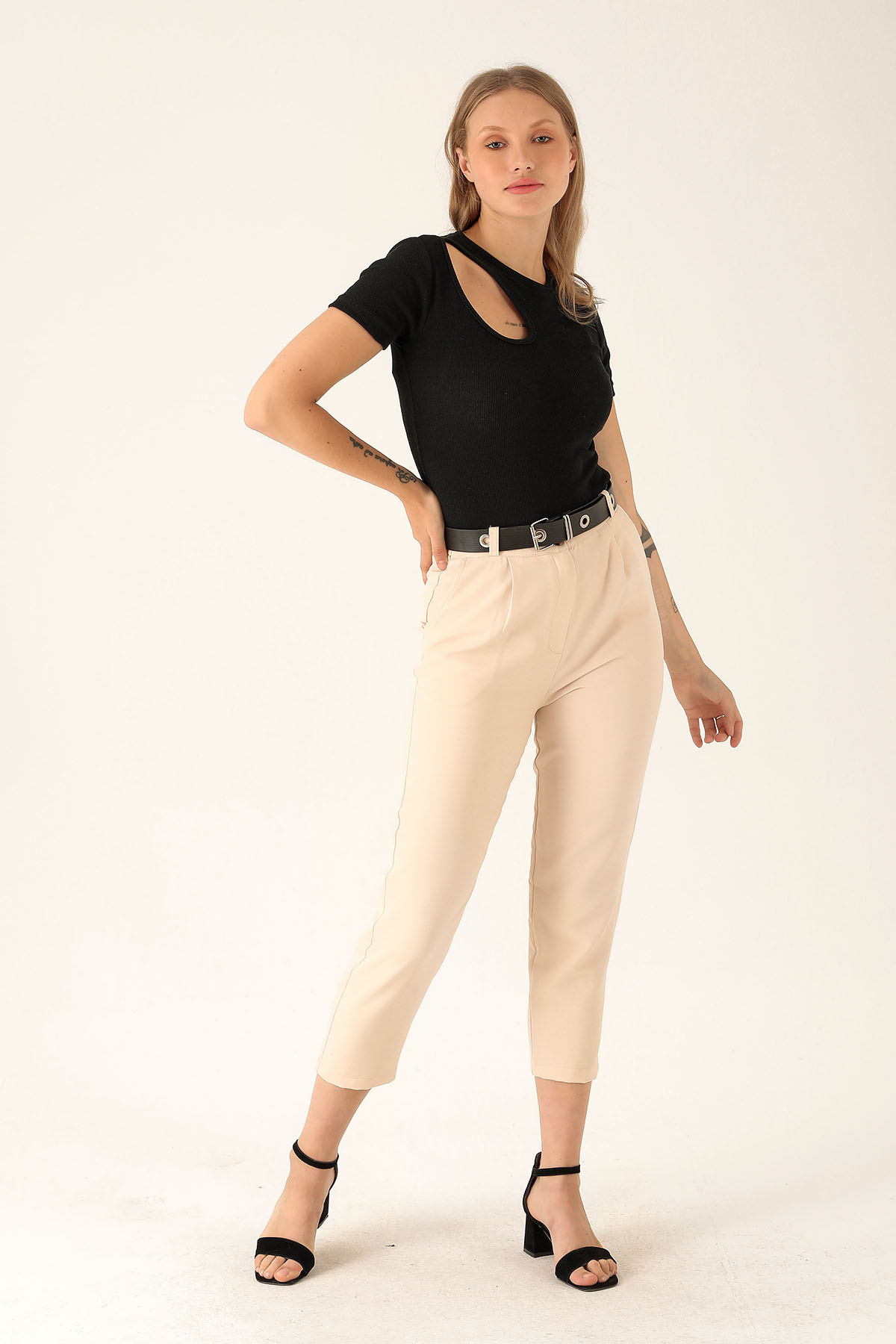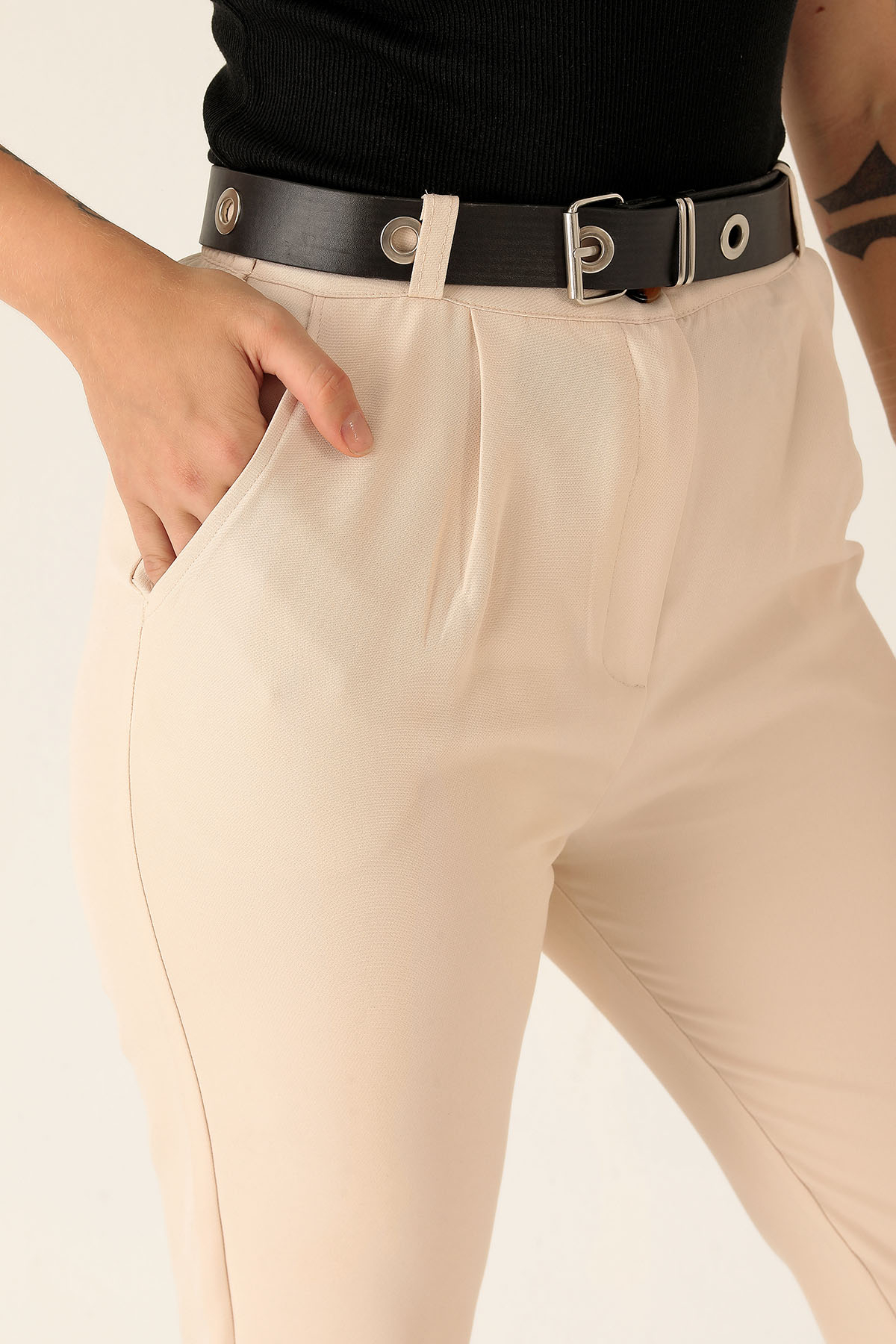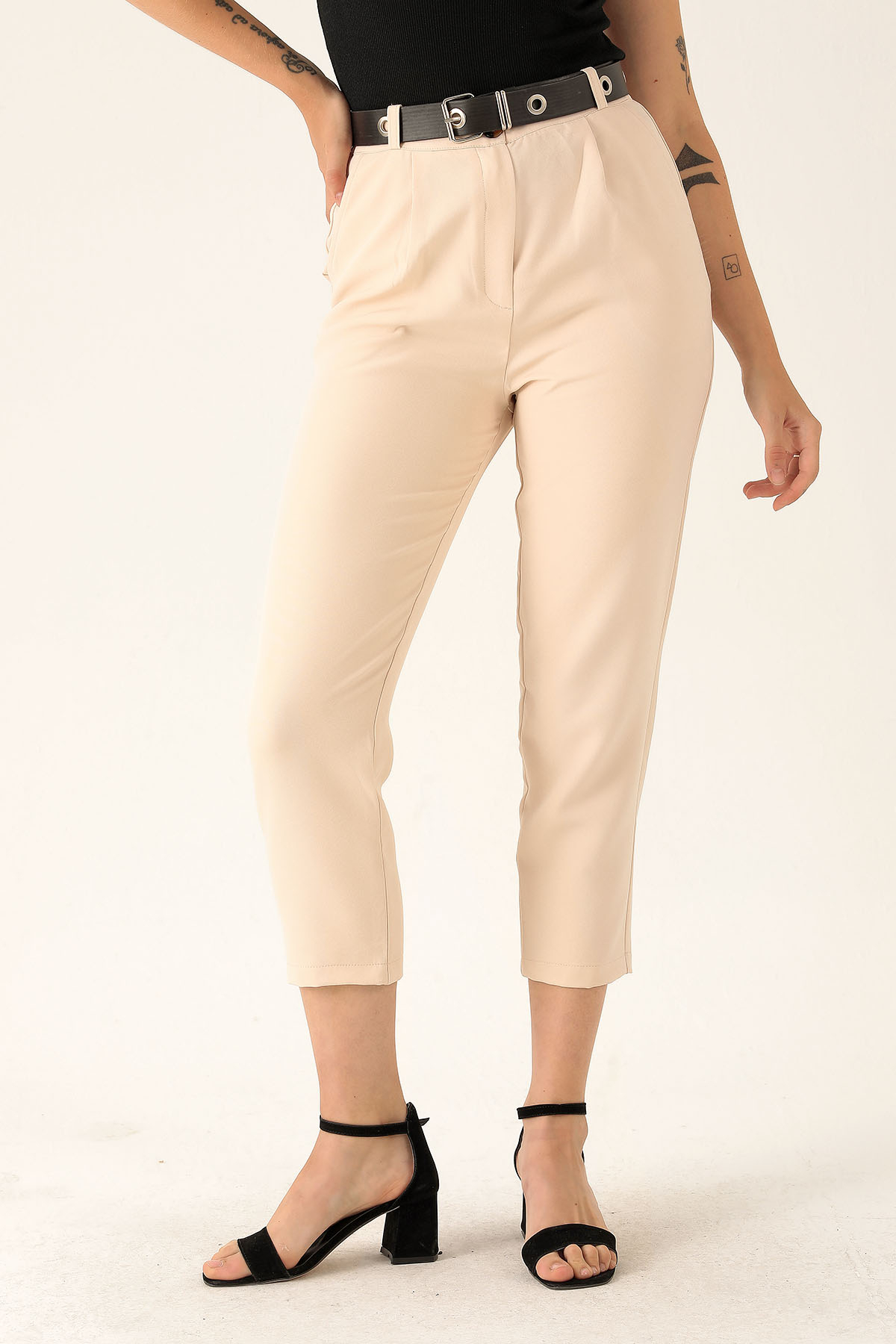 Kemer Detaylı Bayan Pantolon - 6262A Taş