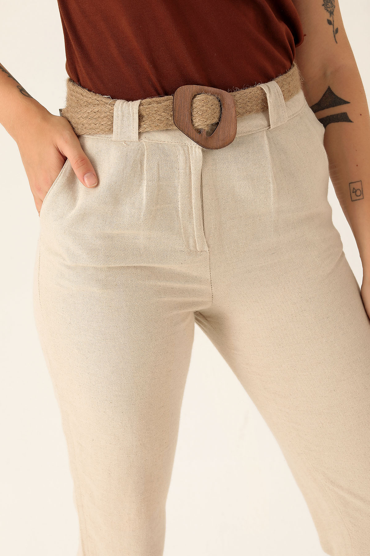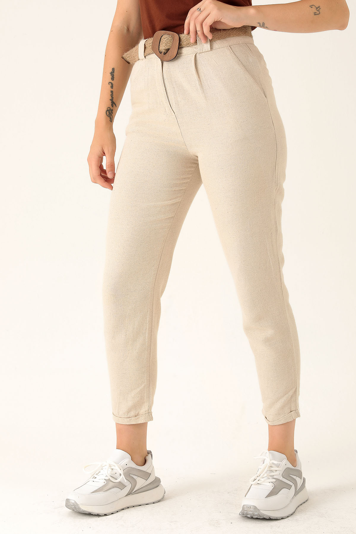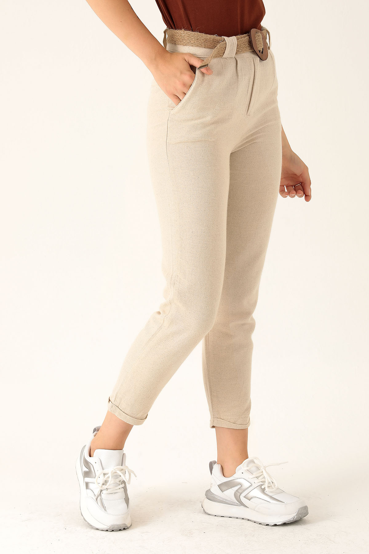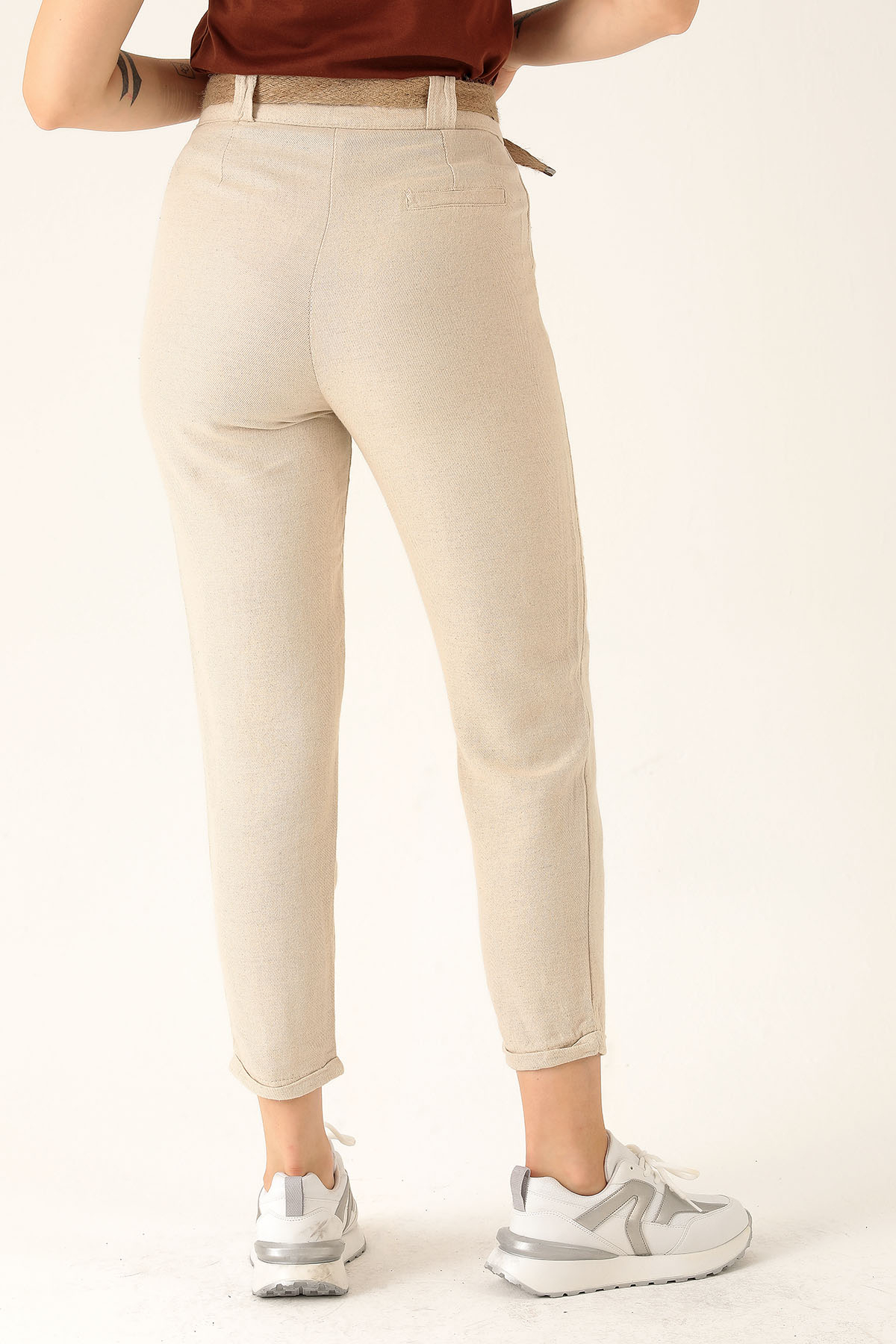 Kemer Detaylı Havuç Bayan Pantolon - 4046 Natural