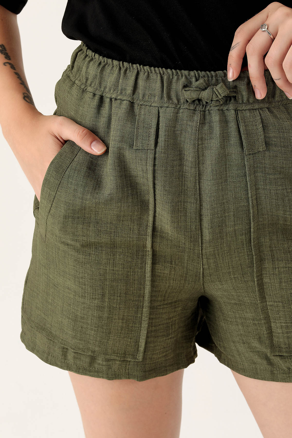 Keten Bayan Şort - 108 Haki