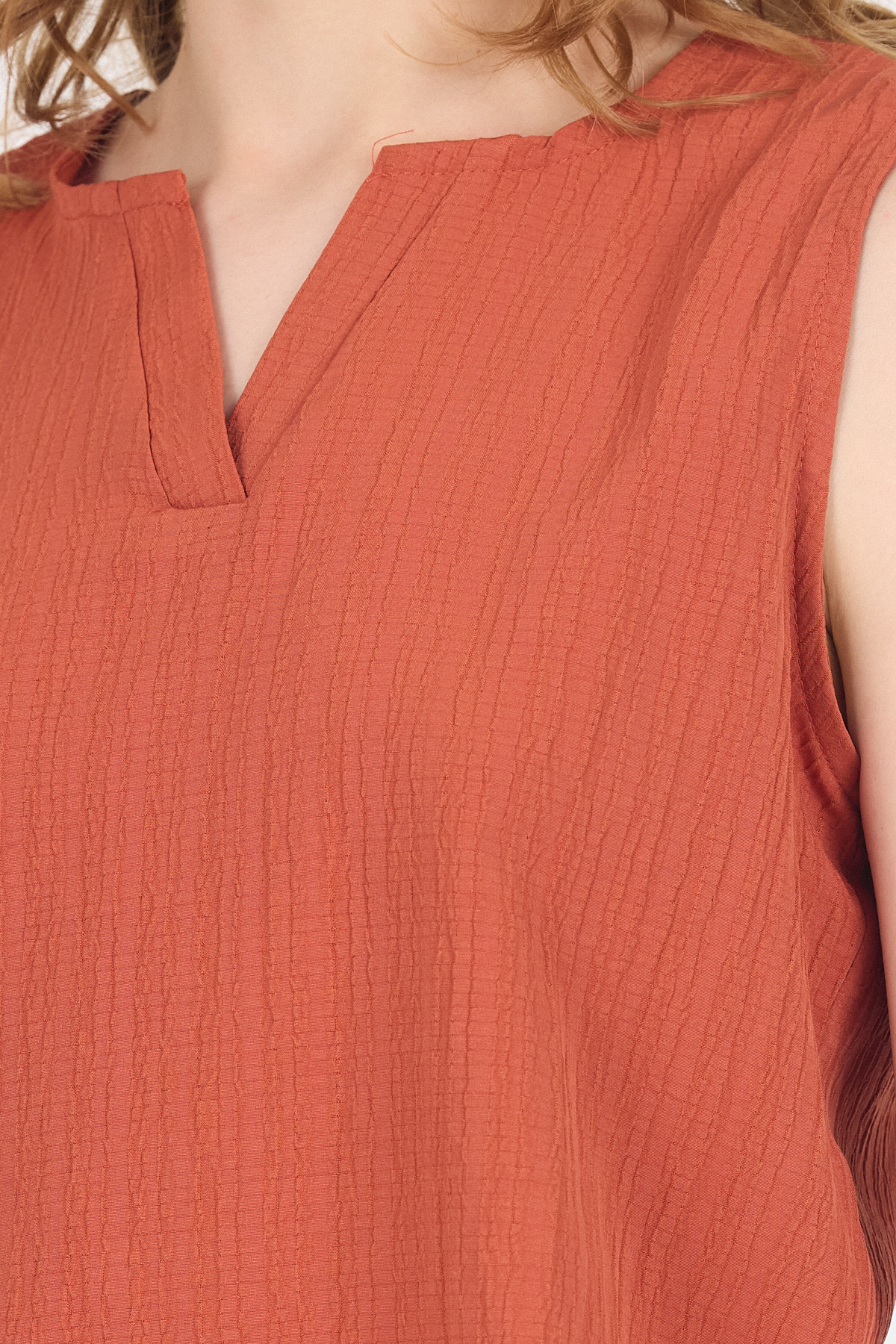 Kiremit V Yaka Kolsuz Crop Bluz 8027