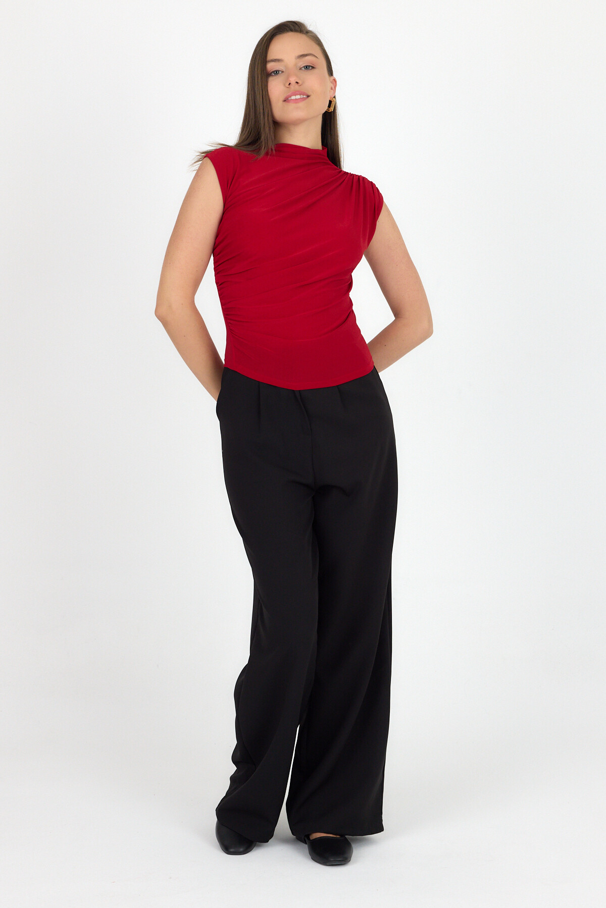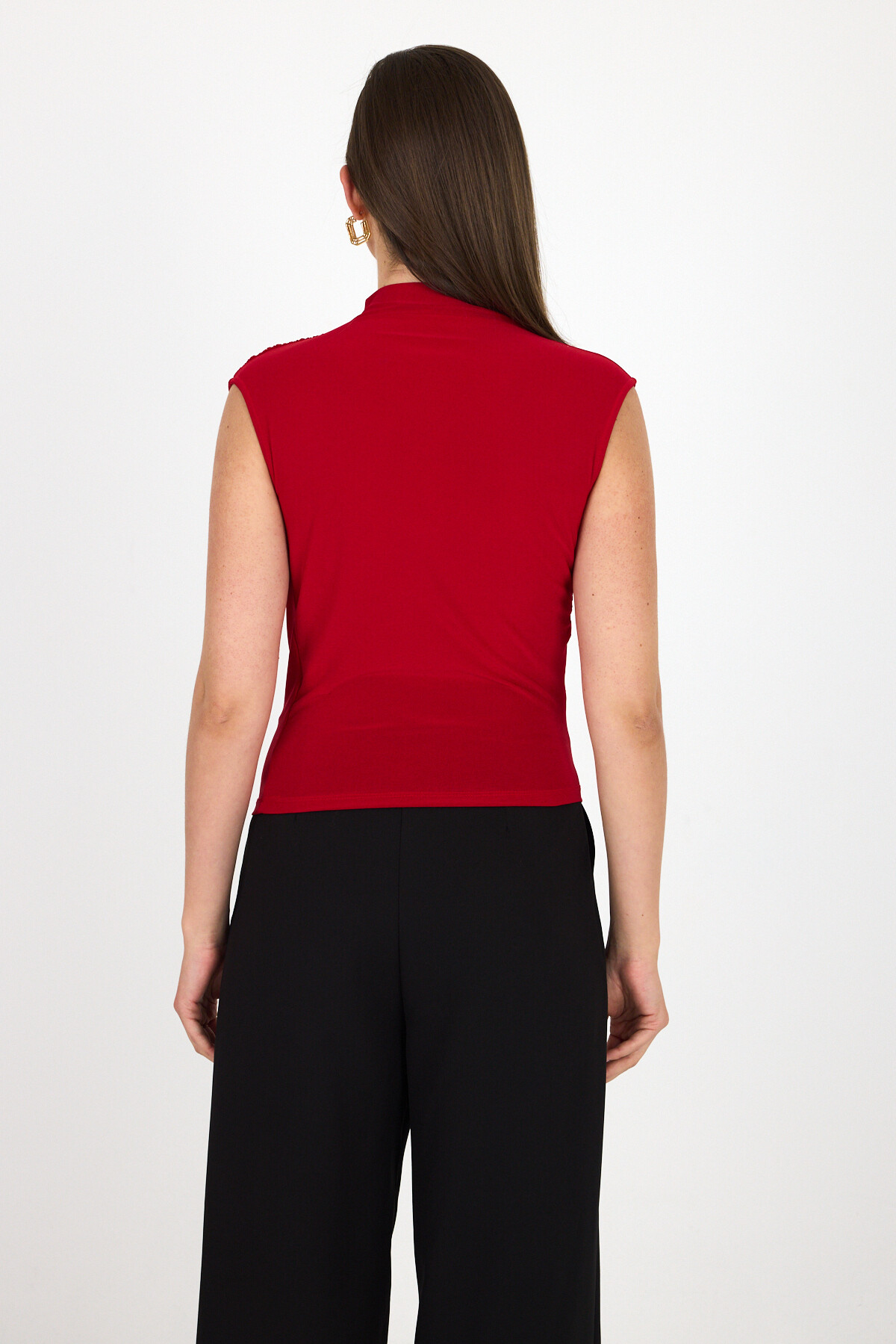 Kırmızı Kolsuz Büzgülü Sandy Bluz 2430