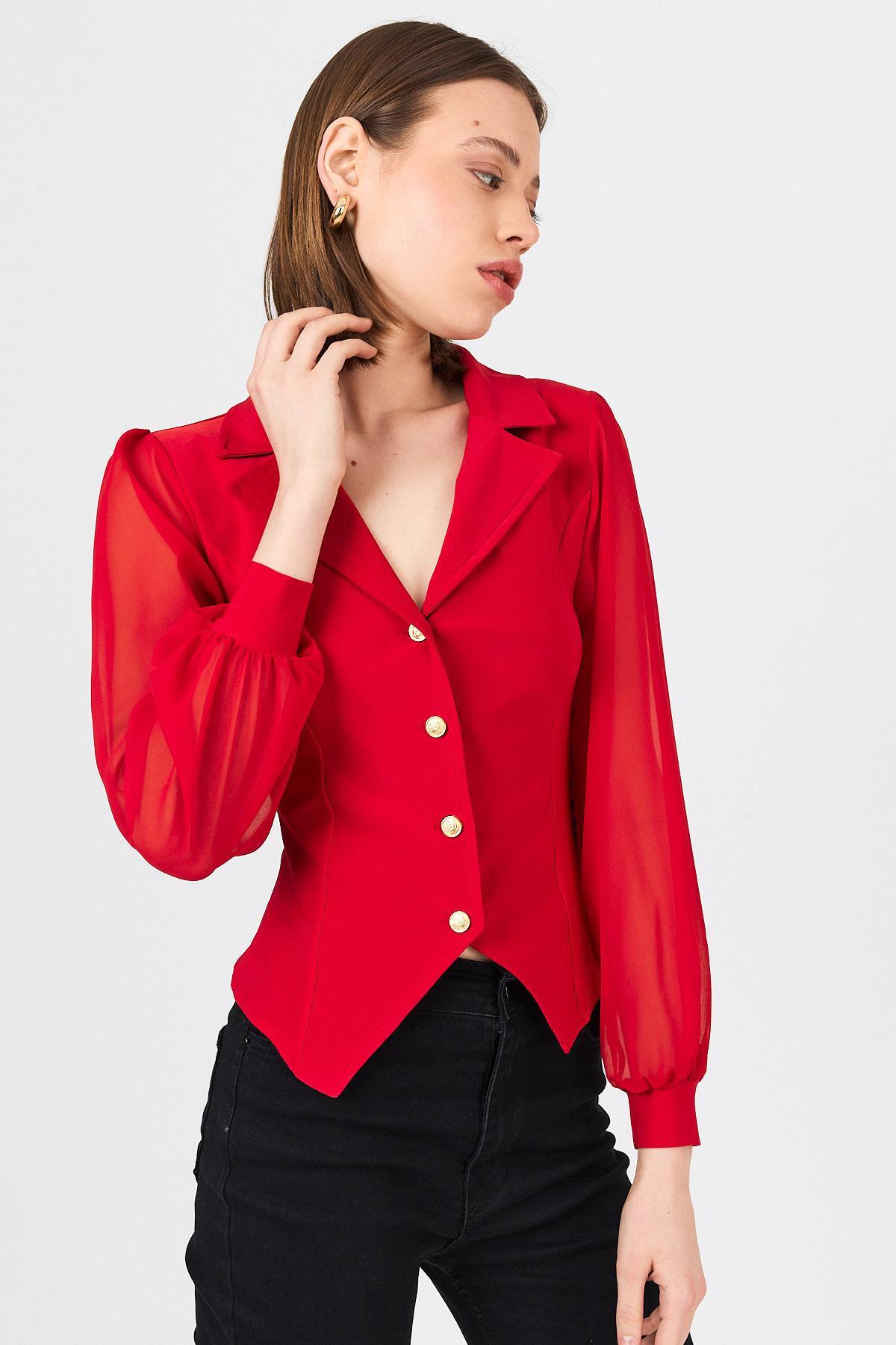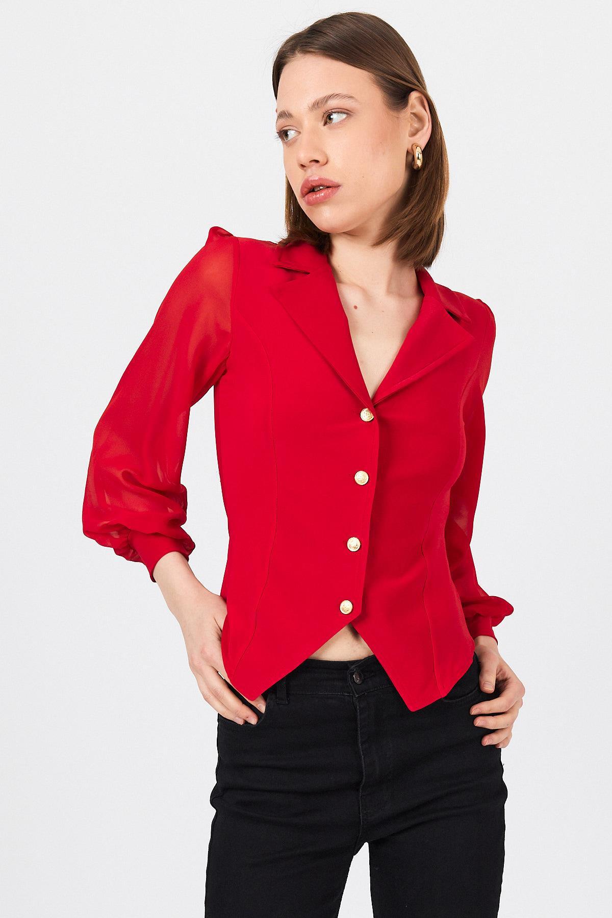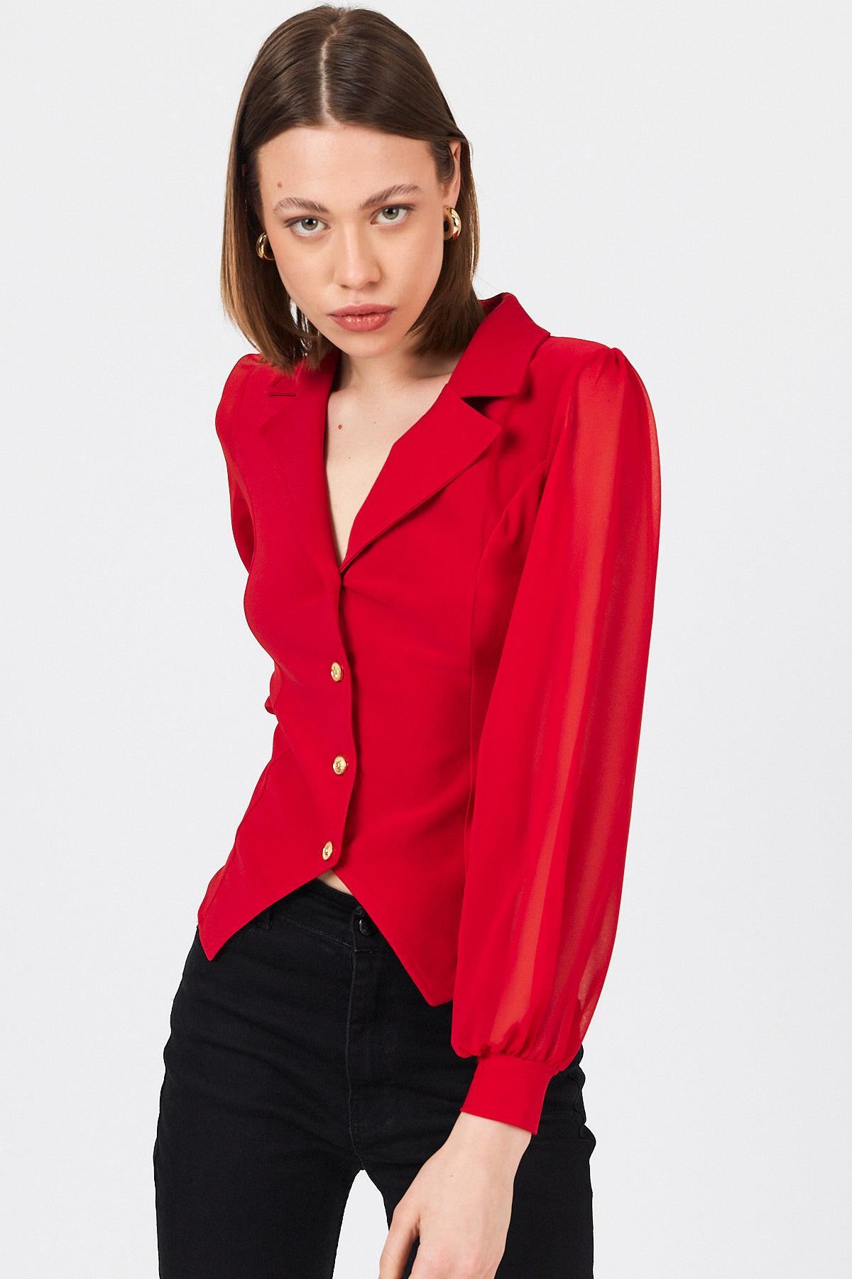 Kırmızı Kruvaze Yaka Düğmeli Pensli Gömlek 9476