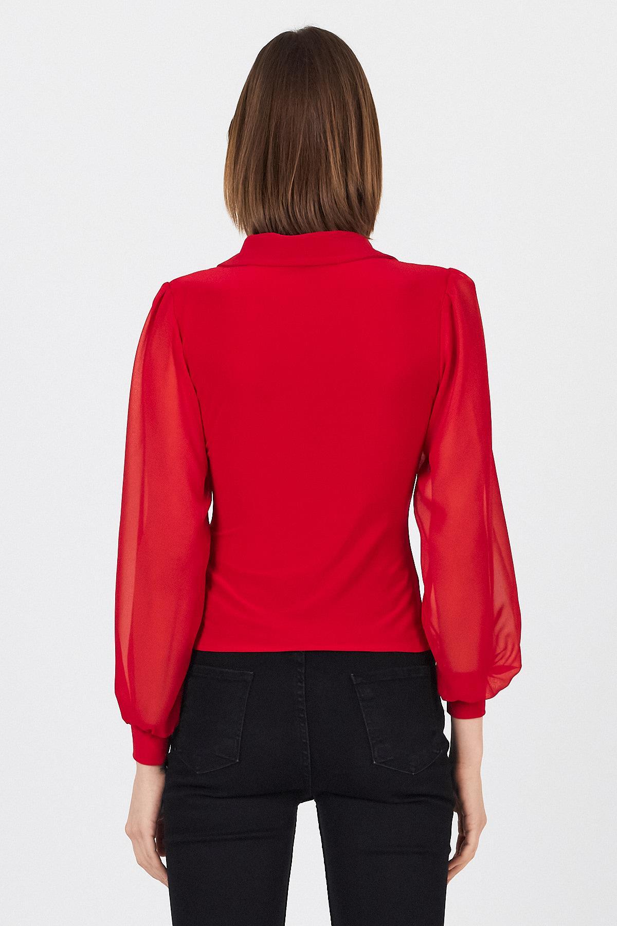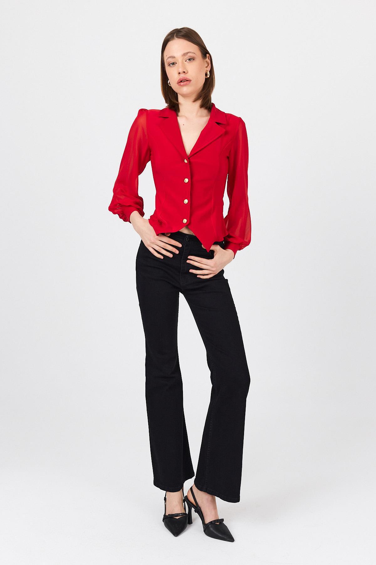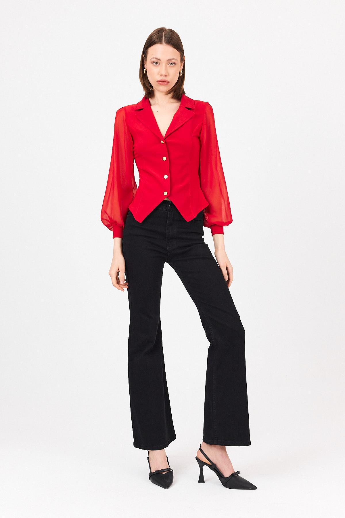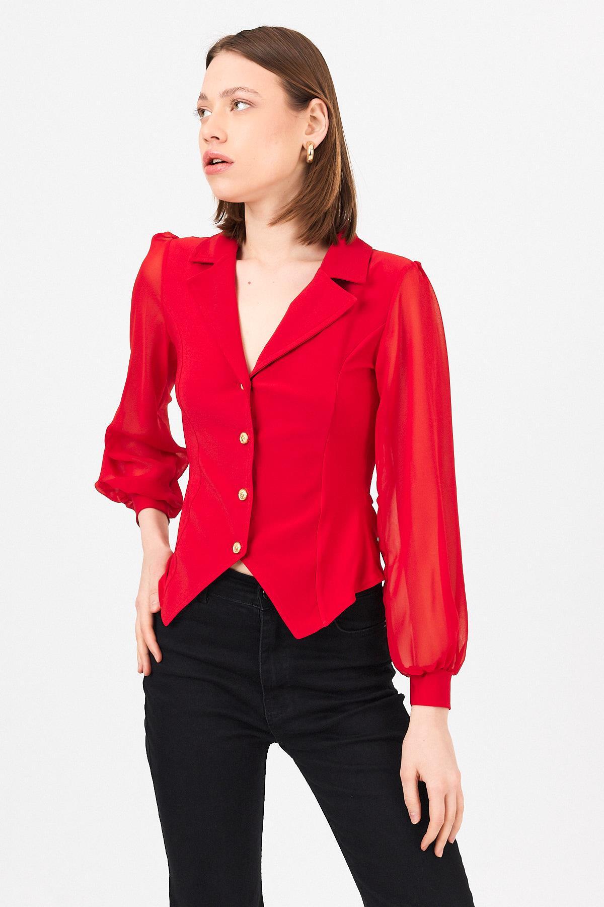 Kırmızı Kruvaze Yaka Düğmeli Pensli Gömlek 9476
