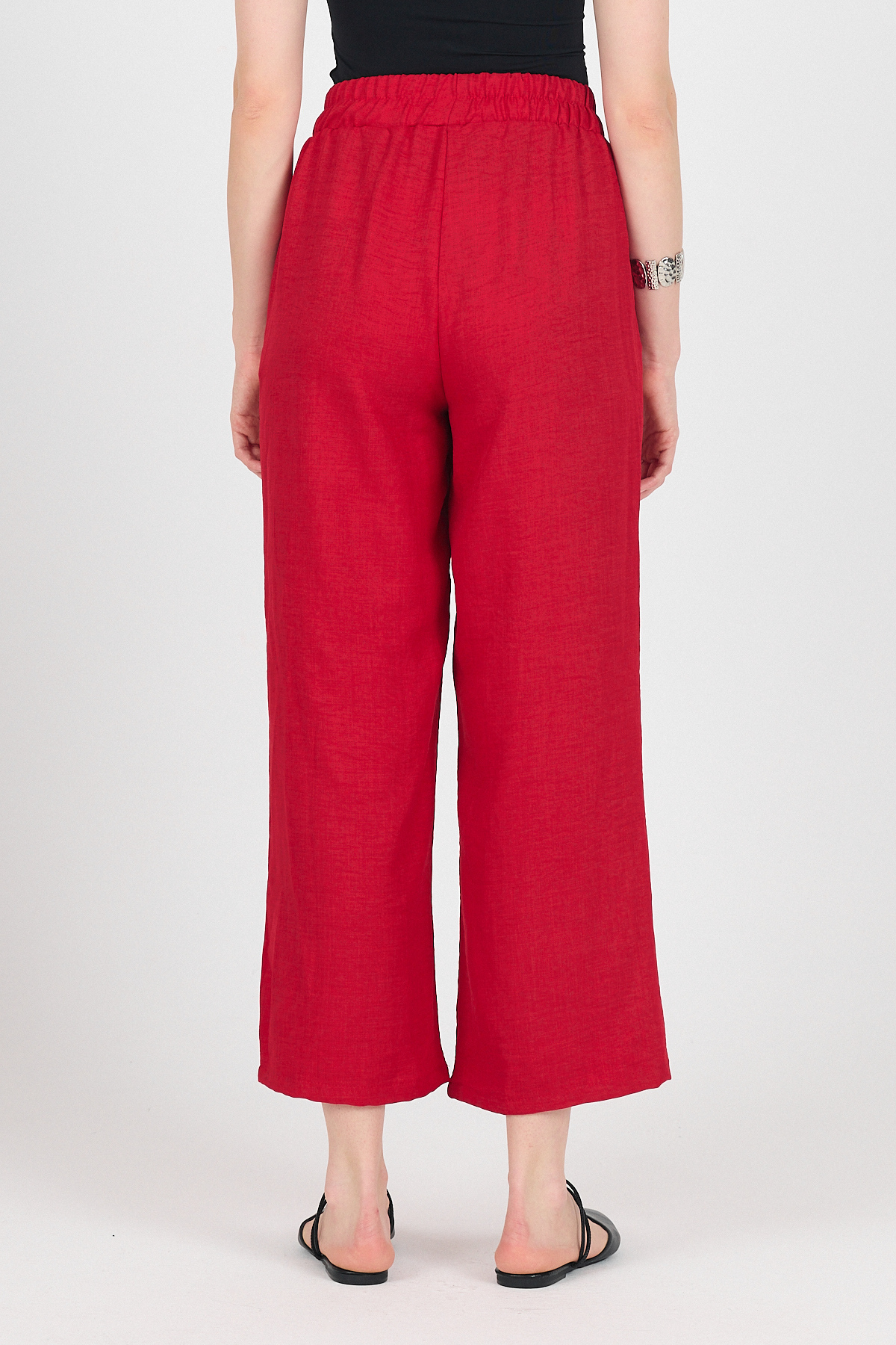 Kırmızı Pamuklu Beli Lastikli Bol Paça Pantolon 4657A